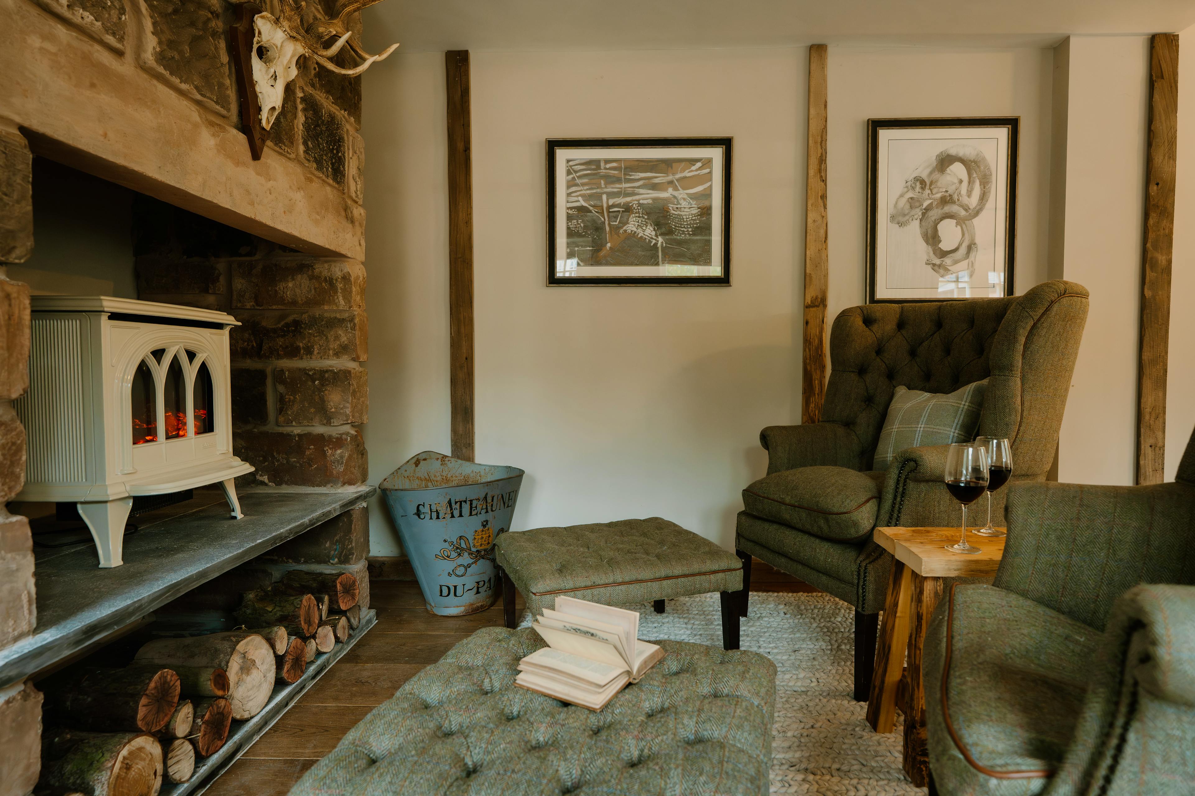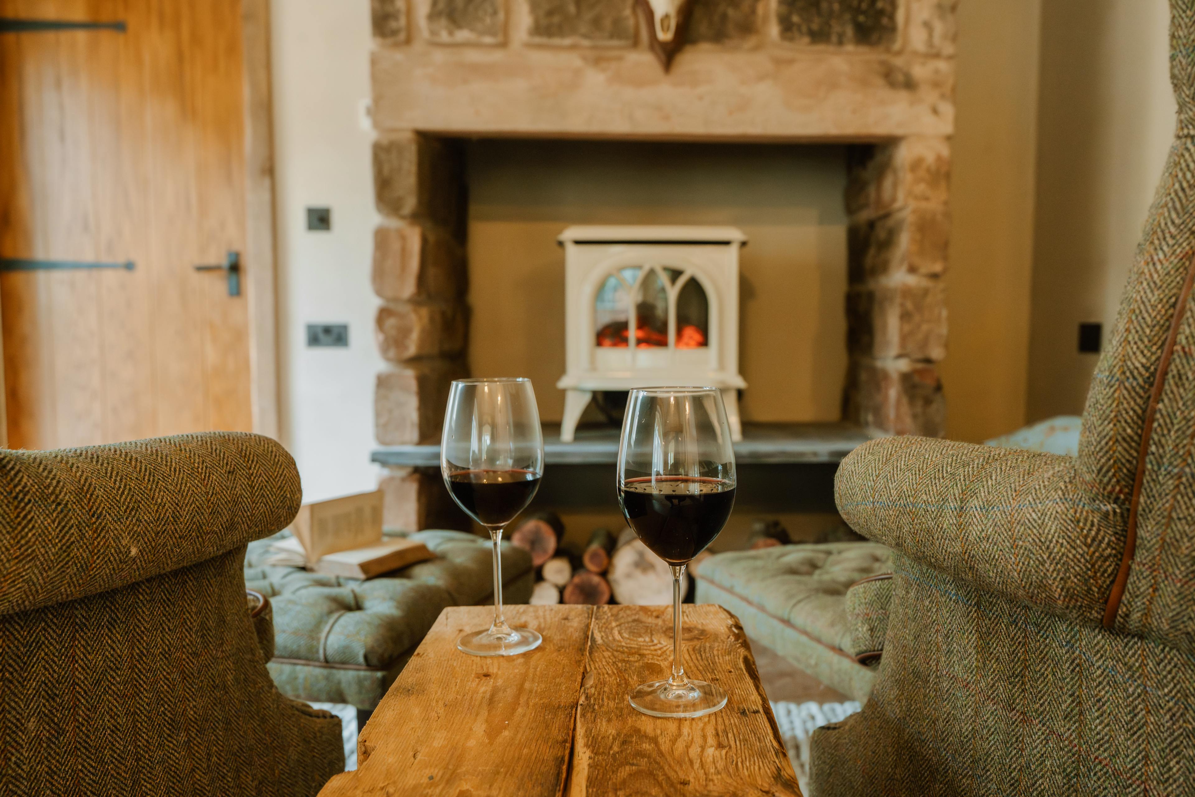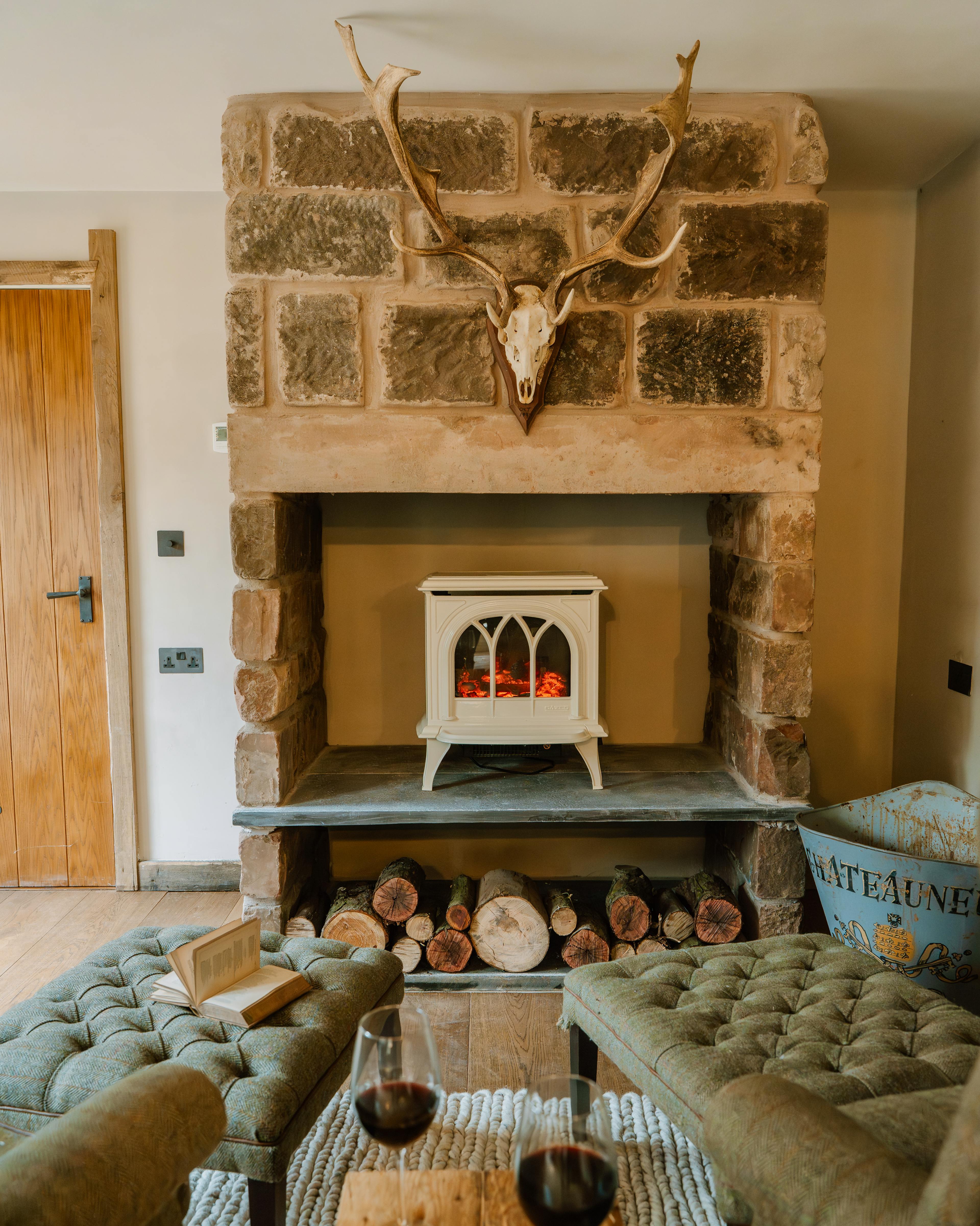 The open fire is for use with logs provided on arrival.
