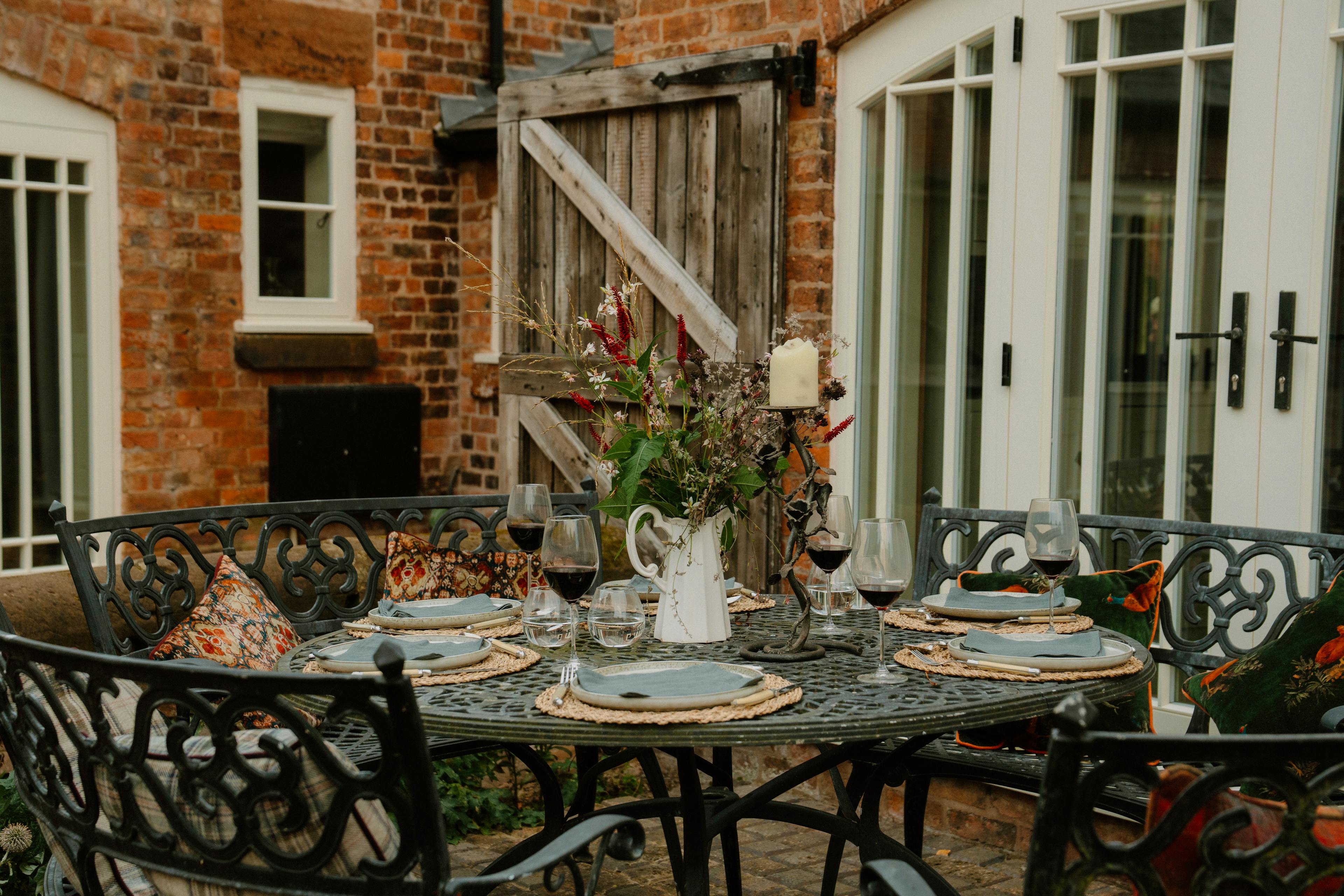 Wander through landscaped gardens that invite slow mornings with coffee and golden-hour drinks as the sun sets over the fields.
