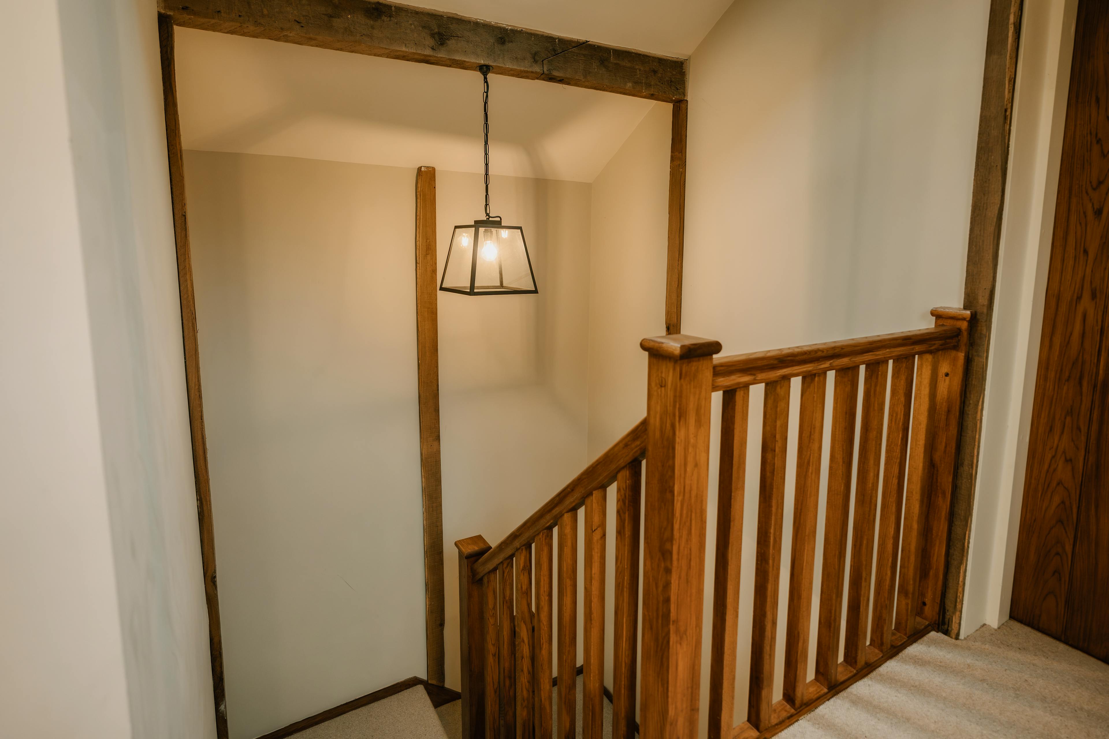 The property is over two storeys with stairs between bedrooms and living areas.