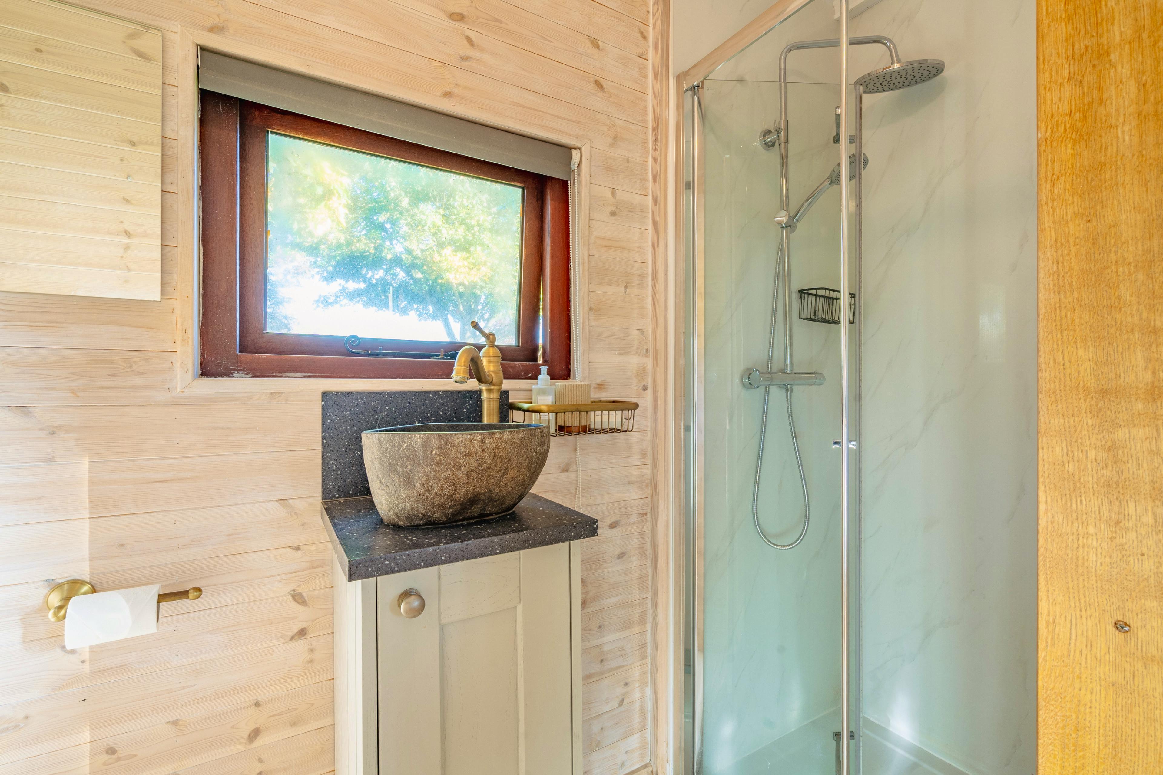 Escape to The Cosy Goose, a beautifully handcrafted shepherd’s hut tucked into the gentle folds of the Cotswold countryside. Designed for couples, this is a place where time softens at the edges, mornings drift in on birdsong and evenings unfold beneath big, star-speckled skies. With soothing river views, roaming animals and a deep sense of calm, it’s an effortlessly romantic spot to slow down and reconnect. Inside, the hut feels wonderfully spacious and carefully considered. The luxurious king size bed takes centre stage, inviting long lie-ins and deeply restful nights after days spent wandering the countryside. Underfloor heating keeps the space warm and welcoming year-round, while soft lighting and natural textures create a snug, cocooning feel. There’s a dining area for two, perfect for lazy breakfasts or lingering, candlelit suppers once the day has drawn to a close. The kitchenette is neatly tucked away and thoughtfully equipped for easy, relaxed meals, with a fridge freezer, microwave, kettle and toaster close at hand. The bathroom is sleek and contemporary, with a generous double shower, toilet and sink, offering a refreshing retreat after exploring nearby lanes, footpaths and riverside walks. Outside, the large elevated decking invites you to pause and linger. Settle into the chairs with a morning coffee as the countryside stirs, or pour a glass in the evening and watch the light fade as stars begin to appear overhead. The private garden area enhances the sense of seclusion, while still keeping you connected to the surrounding landscape. The Cosy Goose sits in a delightfully rural setting full of character. Friendly ponies, curious chickens and the resident cat often wander past, adding a gentle rhythm of farm life to your stay. To make things extra special, you can arrange a bottle of Prosecco or champagne to be waiting on arrival, perfect for celebrating a special occasion or simply the joy of being away together. When it’s time to explore, you’re perfectly placed for discovering some of the Cotswolds’ most loved towns. Malmesbury, Tetbury and Cirencester are all close by, offering historic streets, independent shops, cosy cafés and welcoming pubs. With scenic walks, riverside rambles and classic countryside views on your doorstep, this is an ideal base for unhurried days out and peaceful evenings back at the hut.