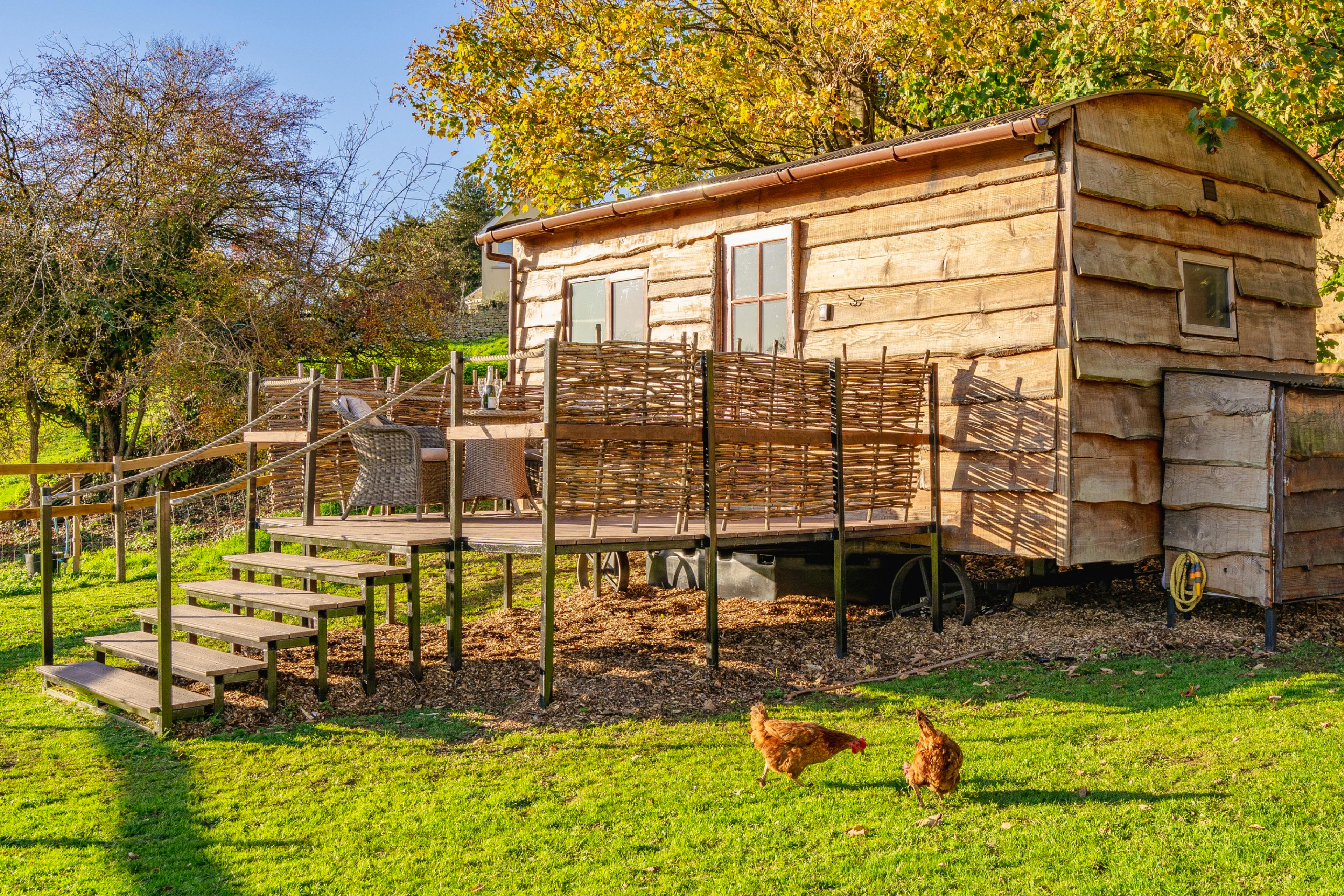 A beautifully handcrafted shepherd’s hut set in peaceful Cotswold countryside, designed as a romantic retreat for two.