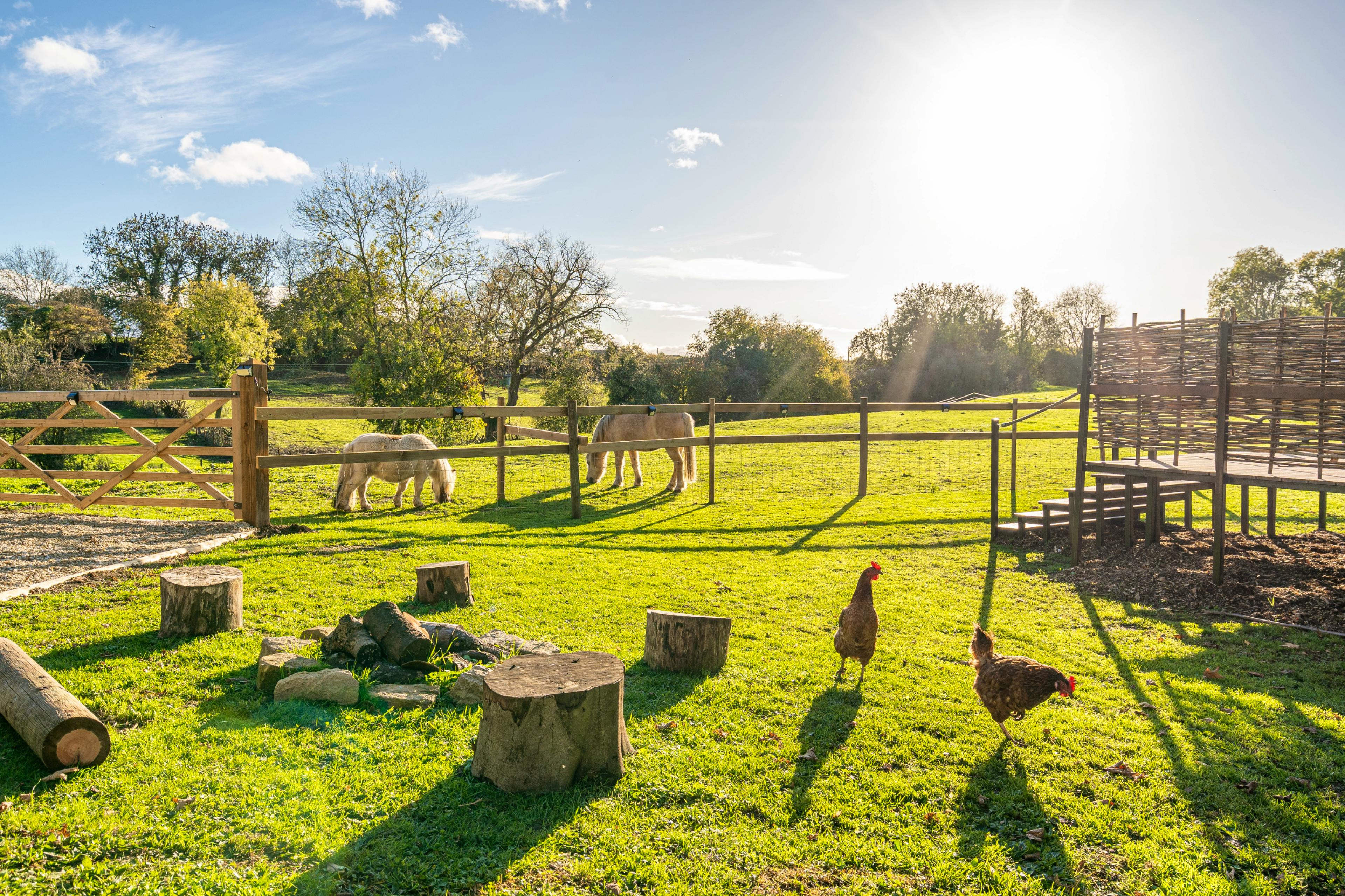 Friendly on-site animals including ponies, chickens and a resident cat, adding charm and character to your stay.