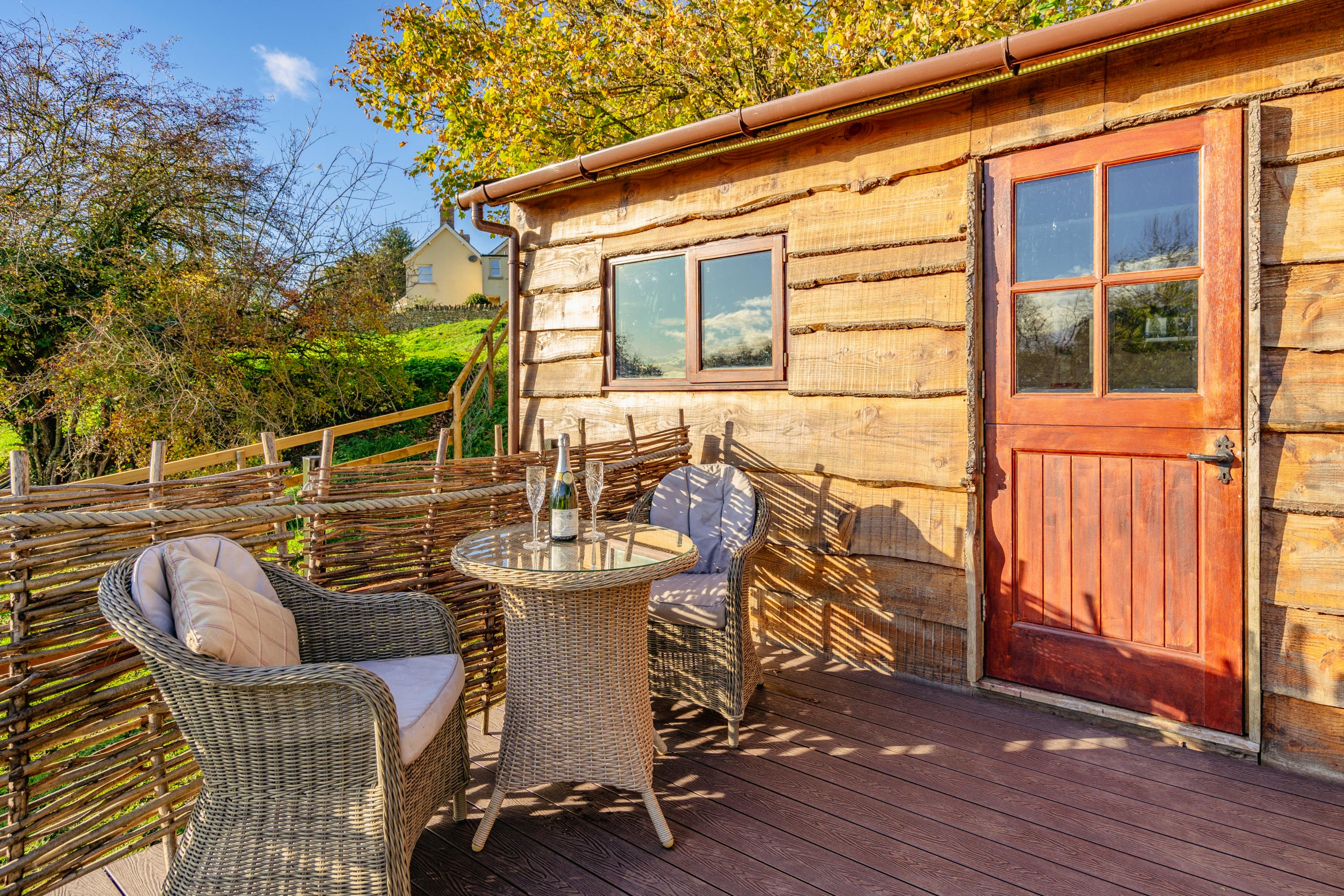 Private elevated decking with seating, ideal for slow mornings with coffee and relaxed evenings under the stars.