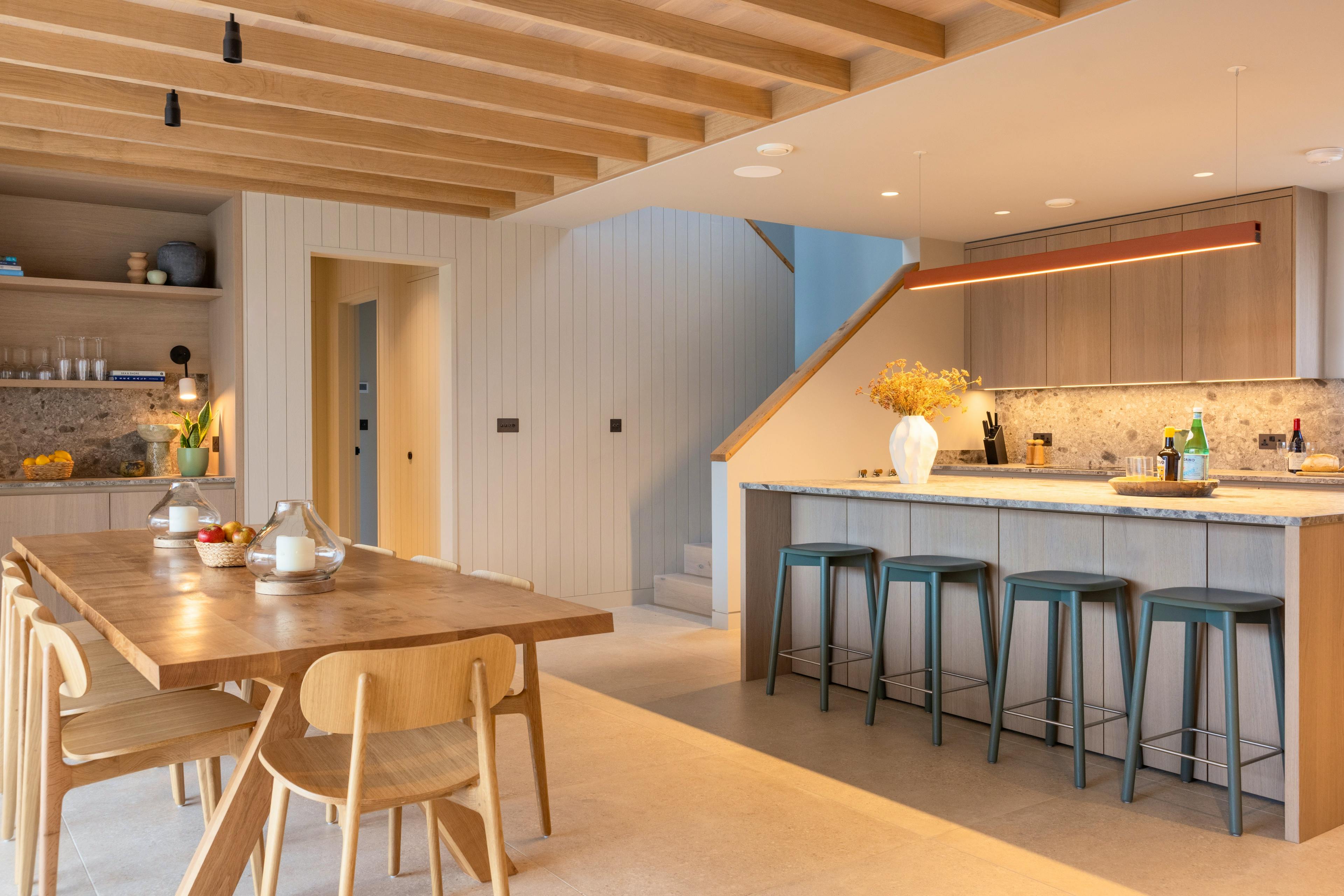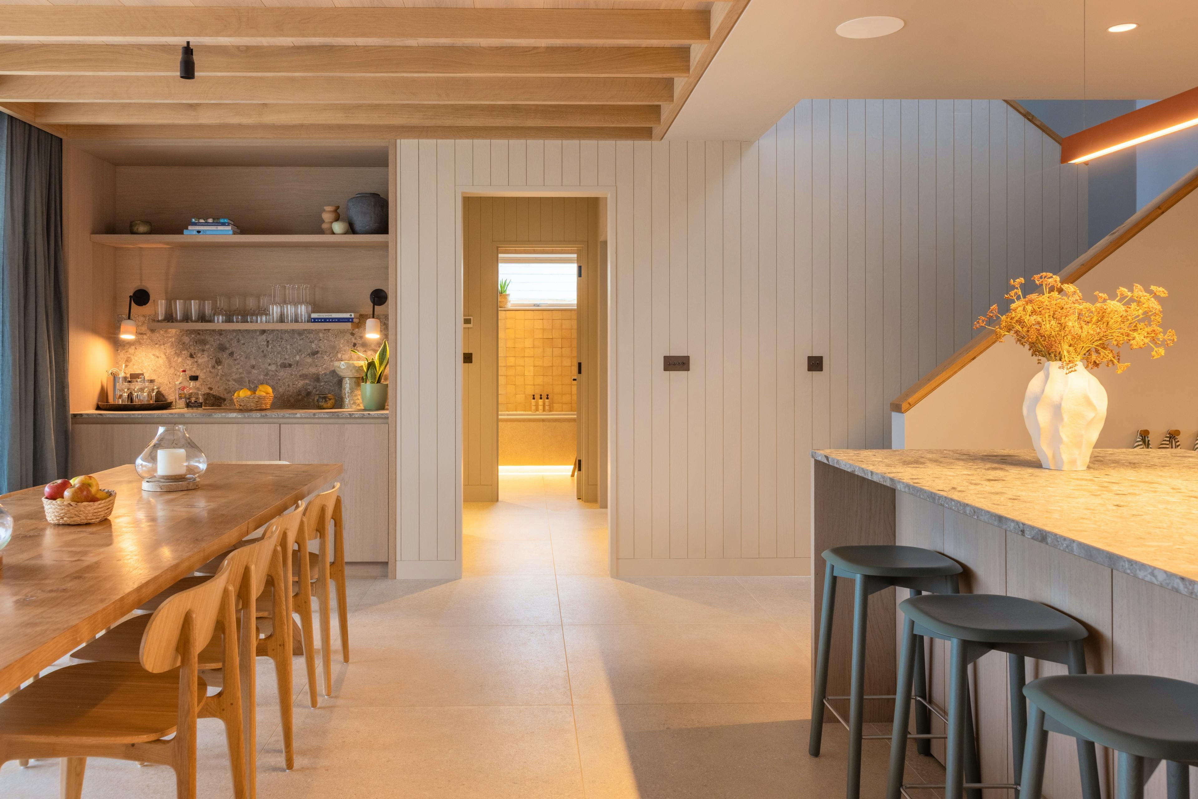 Cook, feast and gather in the stunning open-plan kitchen and dining area where laughter, local produce and long conversations feel right at home.