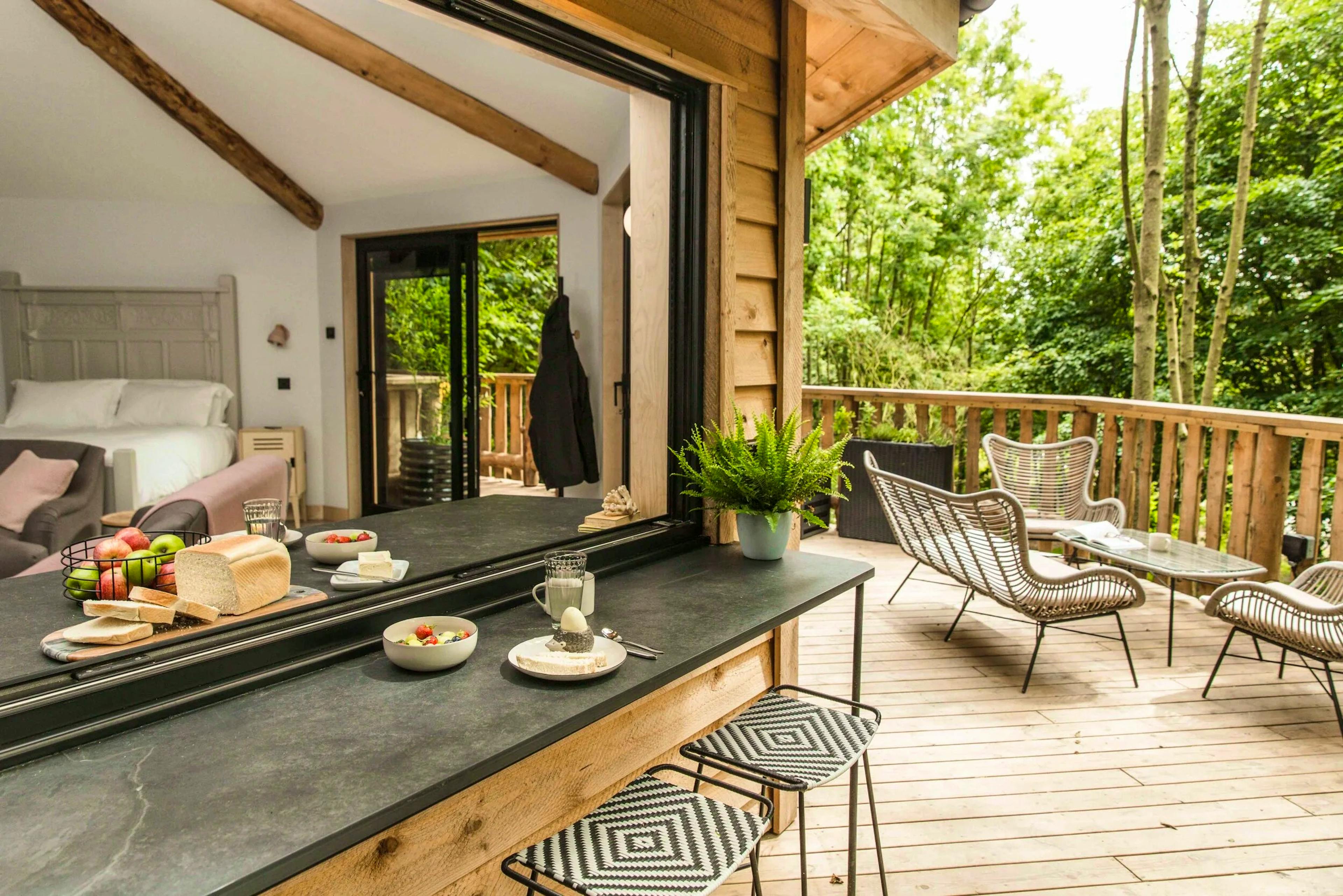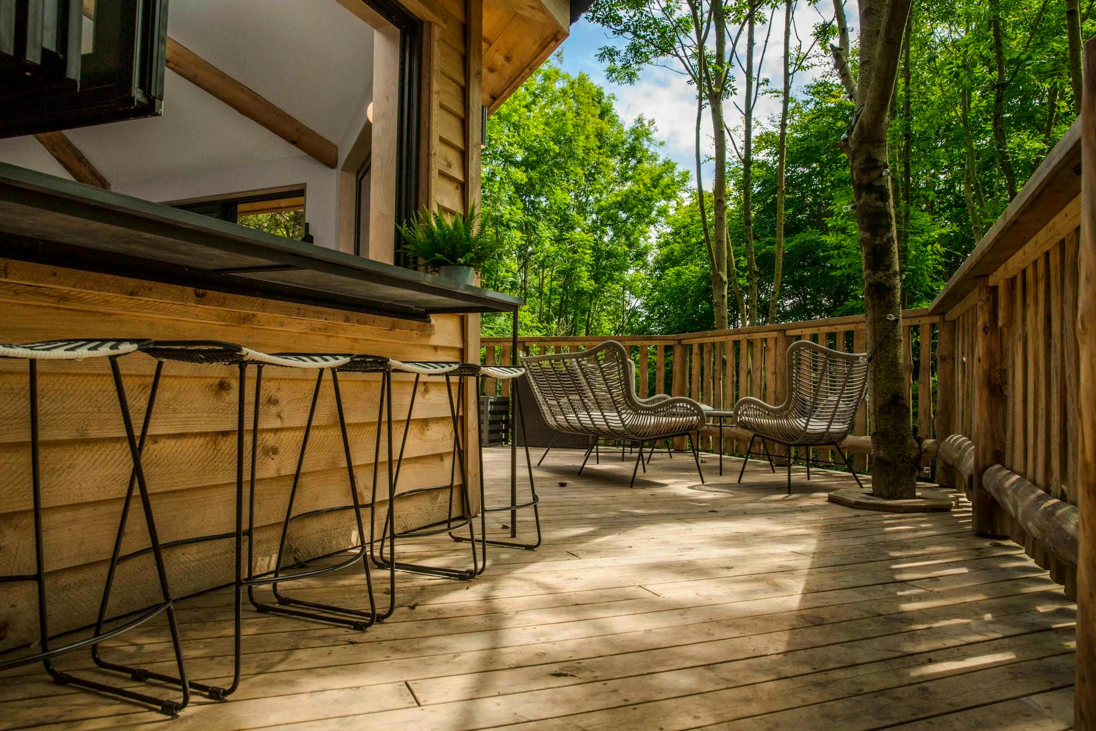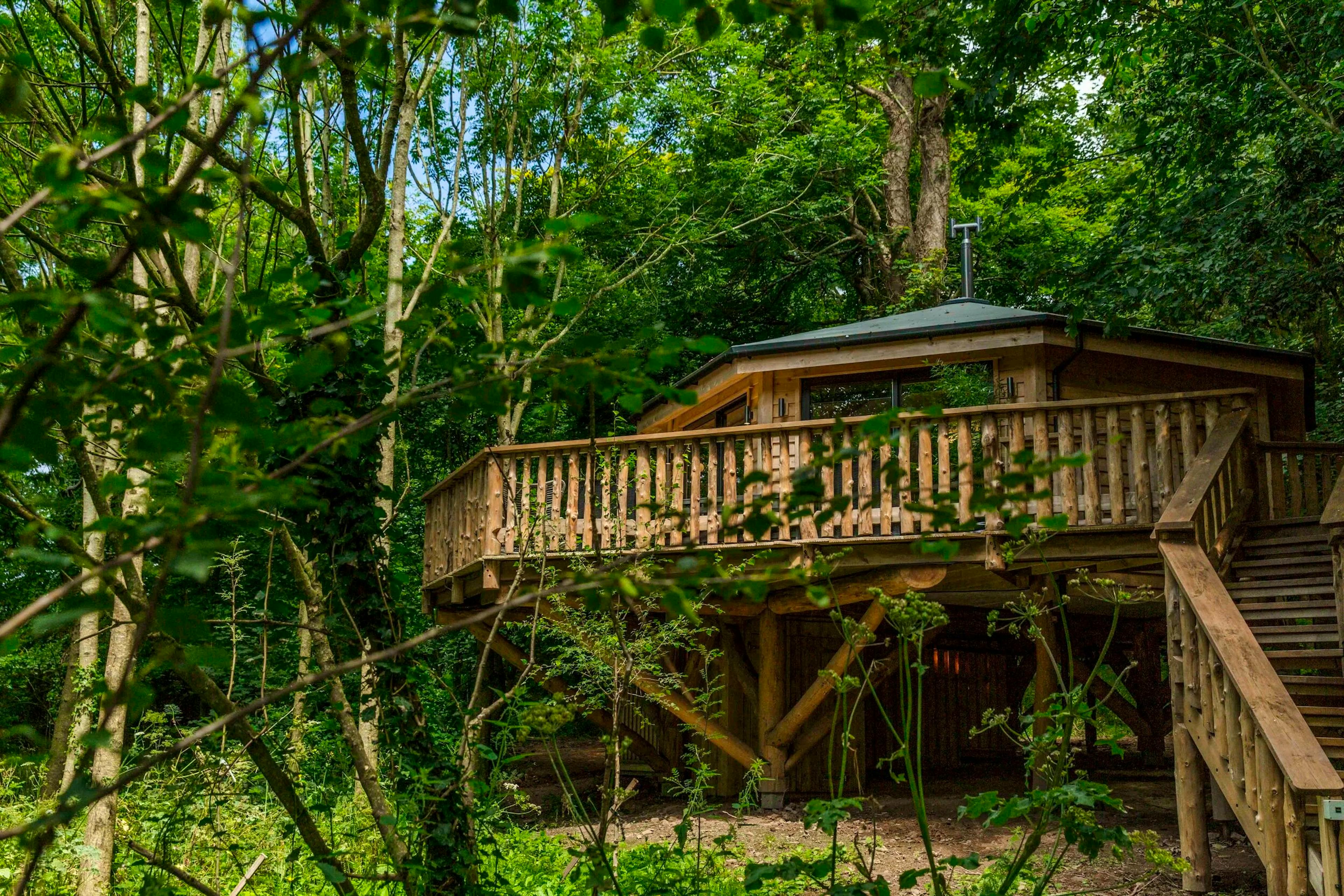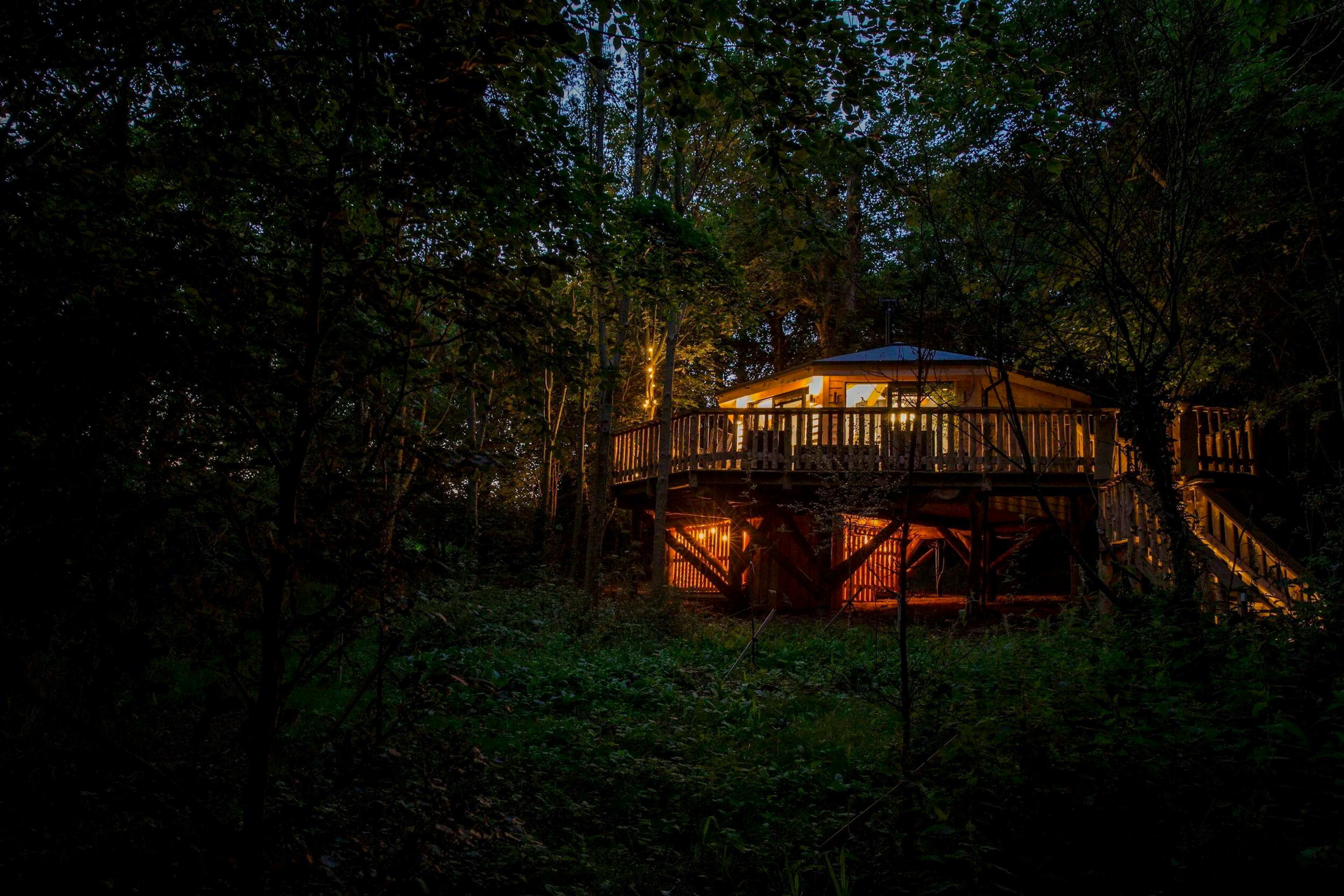 Lofty woodland treehouse hideaway near the North Devon coast offering groups of four a peaceful woodland retreat.