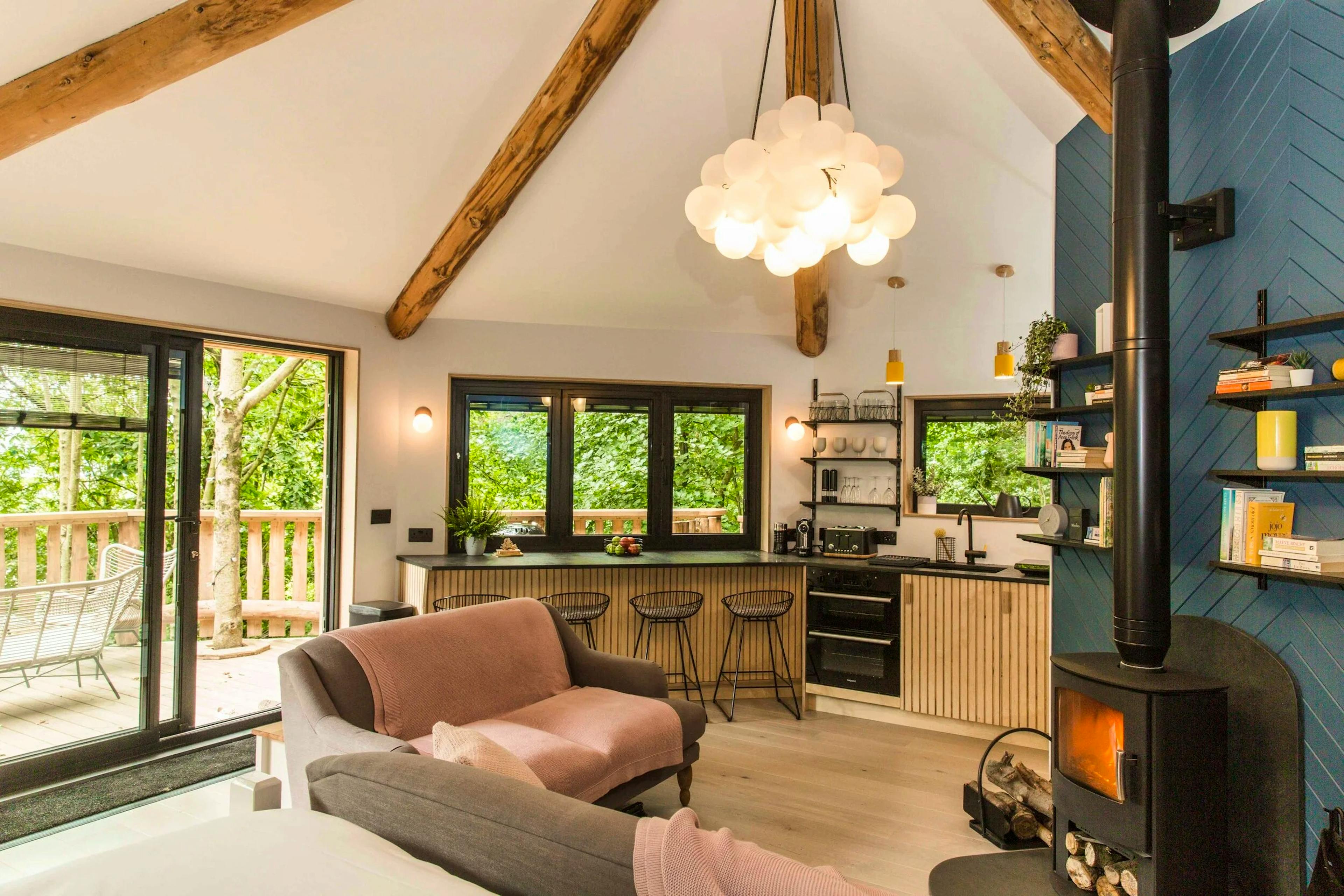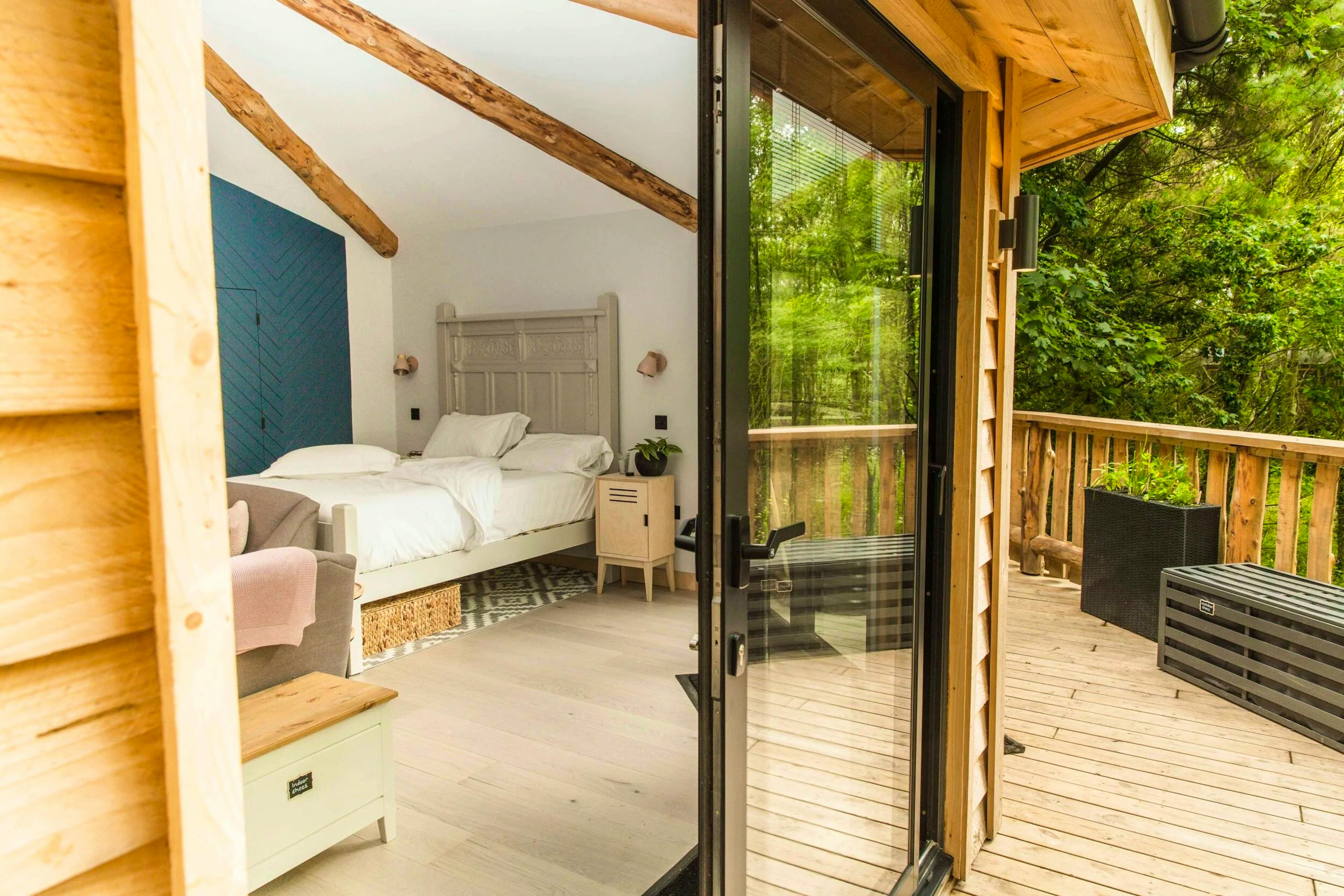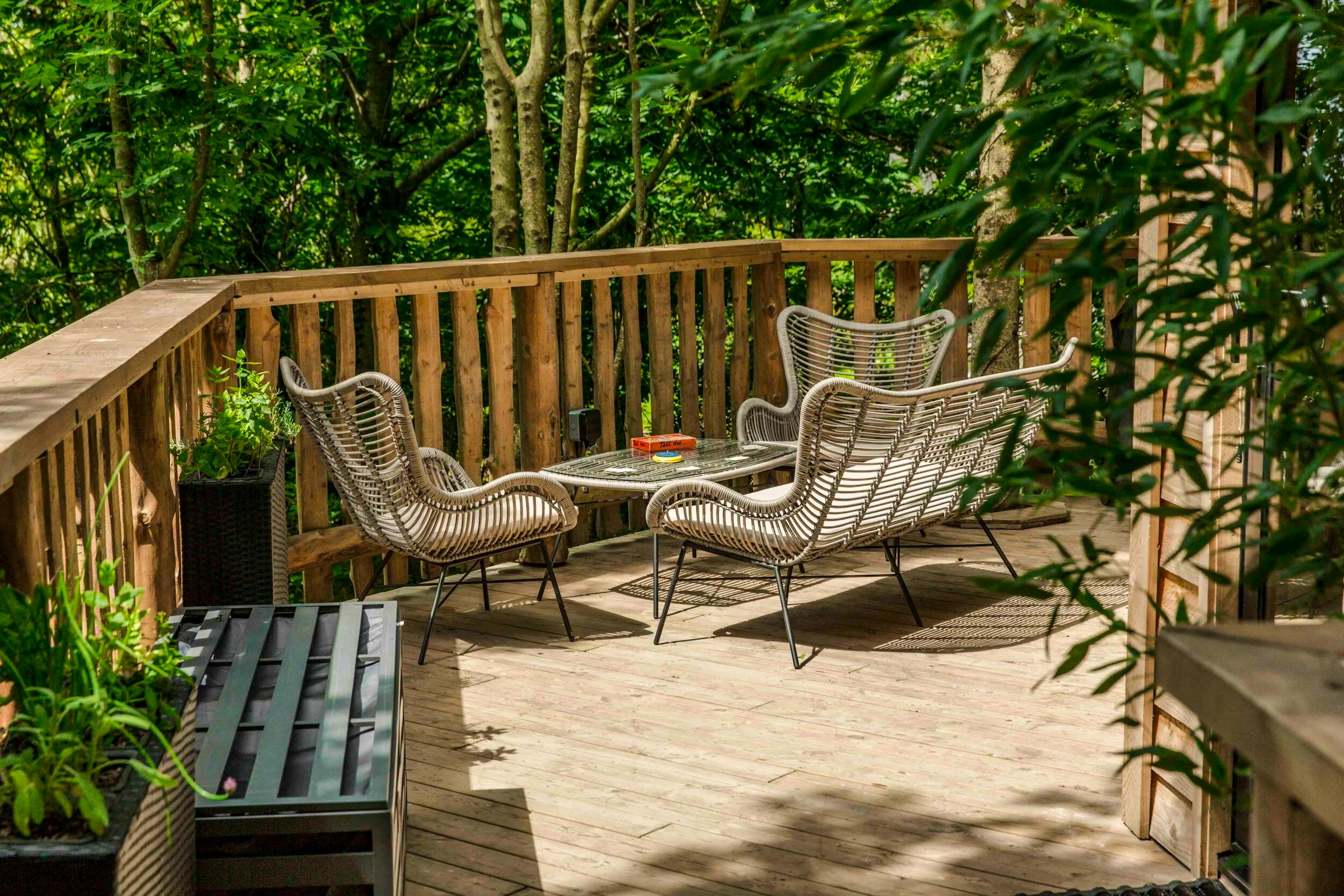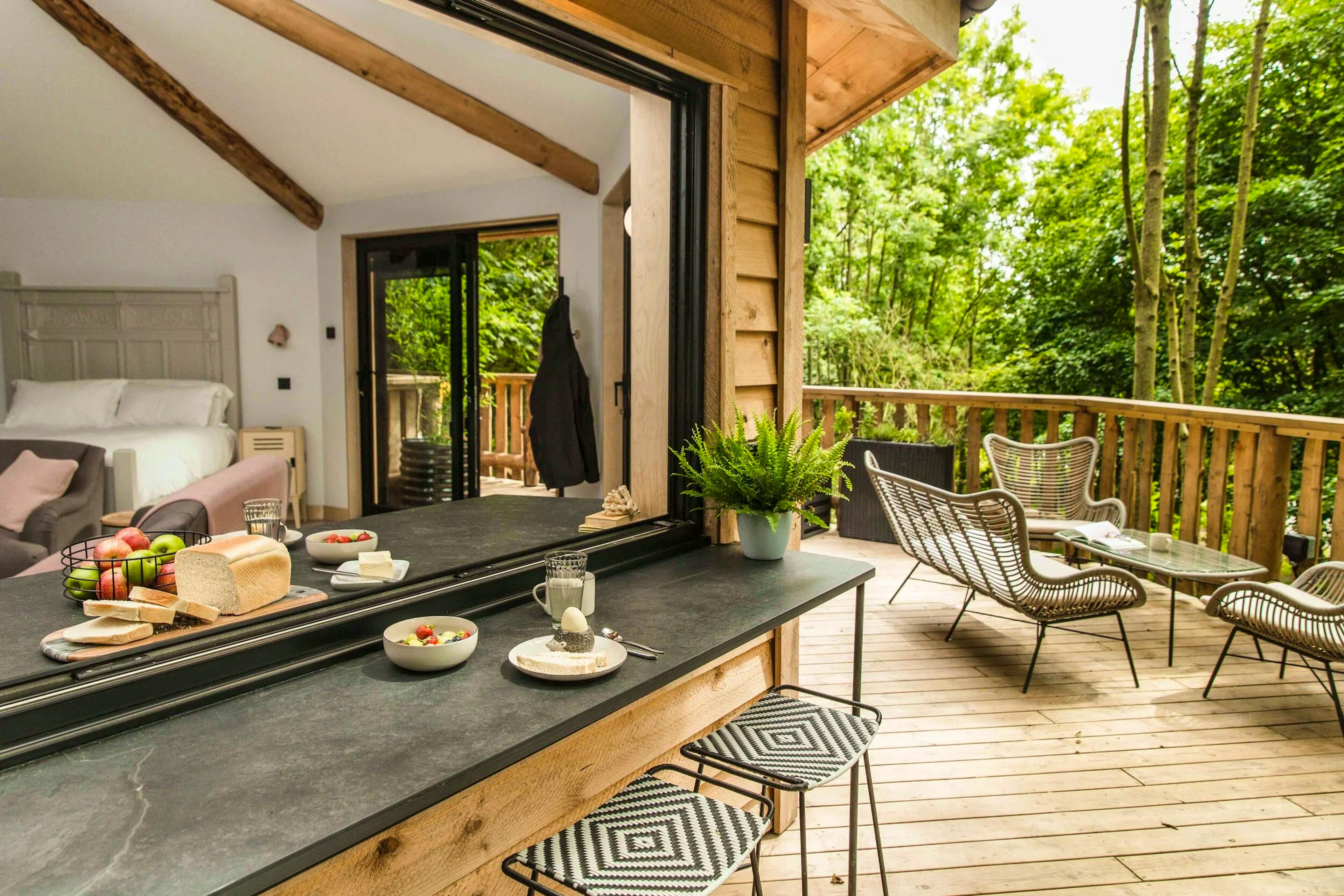 Lofty woodland treehouse hideaway near the North Devon coast offering groups of four a peaceful woodland retreat.