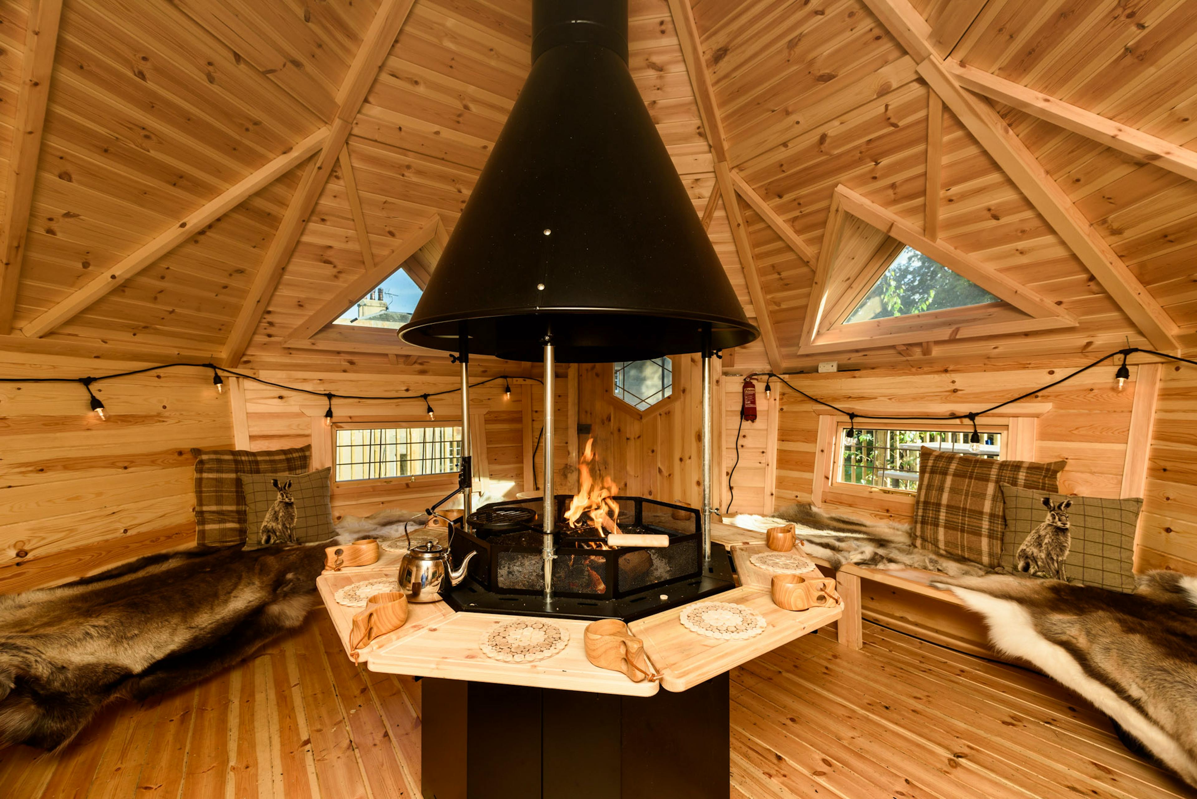 End the day in the enchanting BBQ House, toasting marshmallows around the indoor fire pit before slipping into the bubbling hot tub beneath a starlit sky.