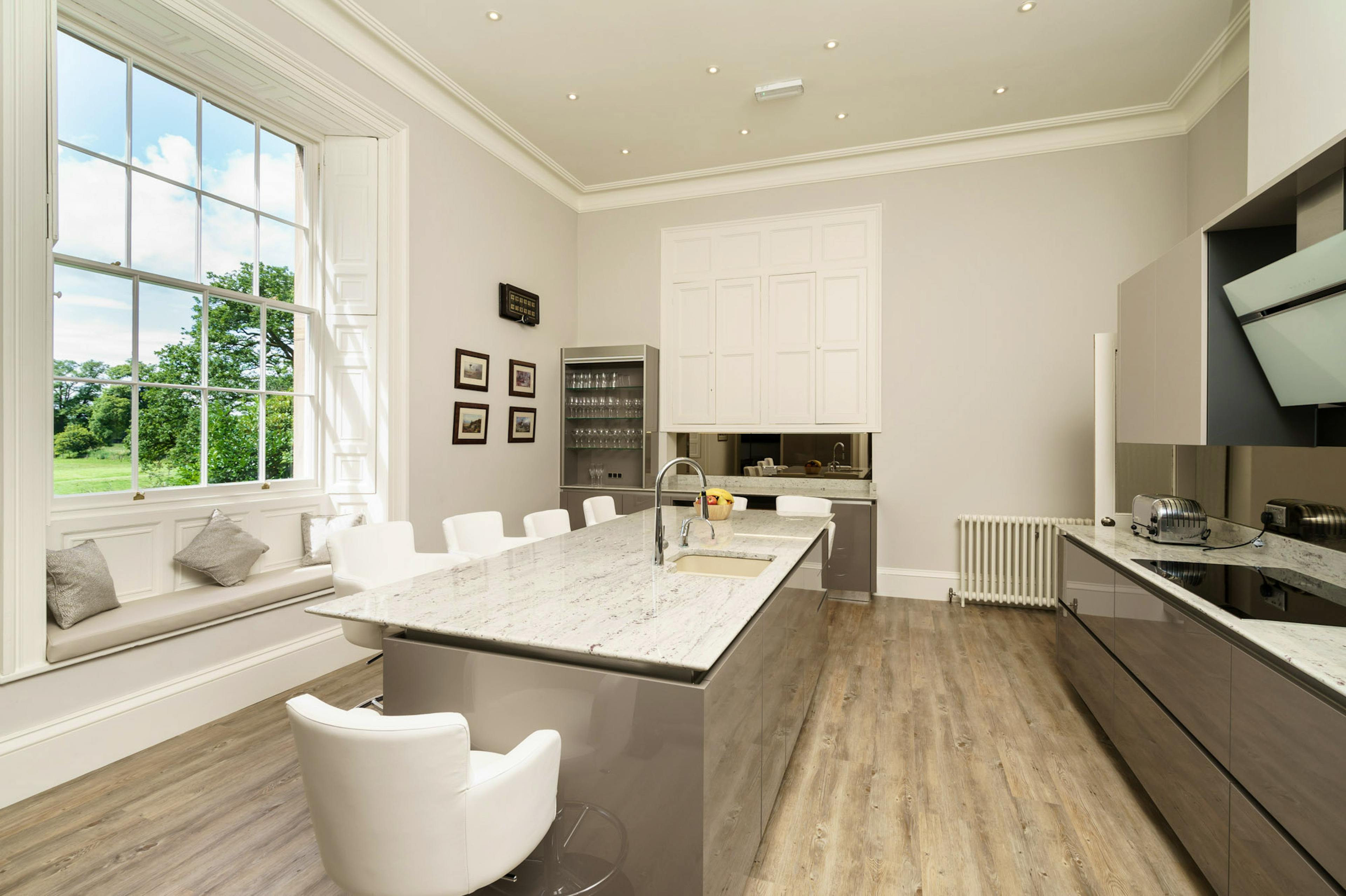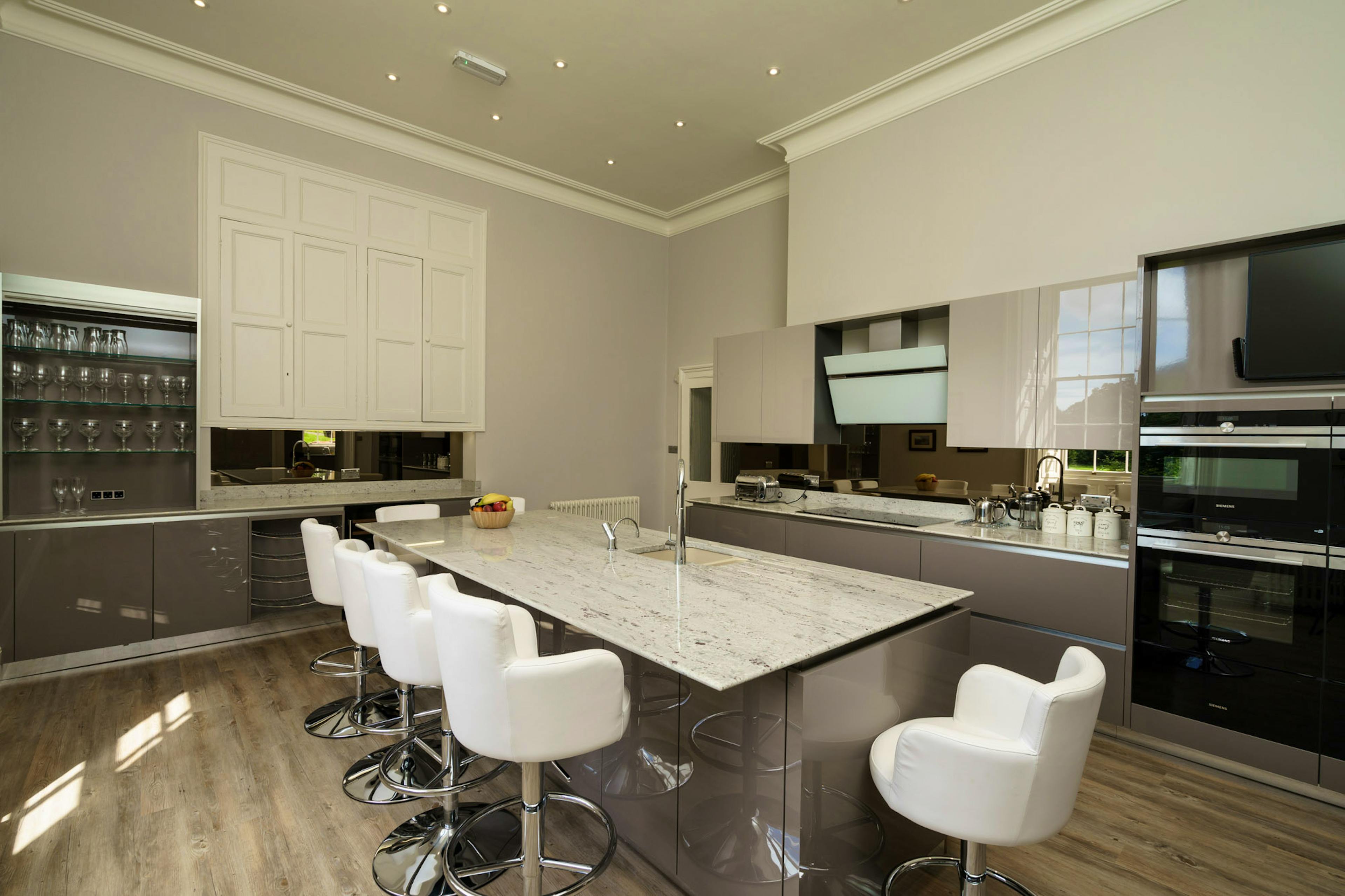 Cook and celebrate in the magnificent kitchen and dining hall, where 24 guests can feast together beneath a glittering chandelier and share unforgettable moments.