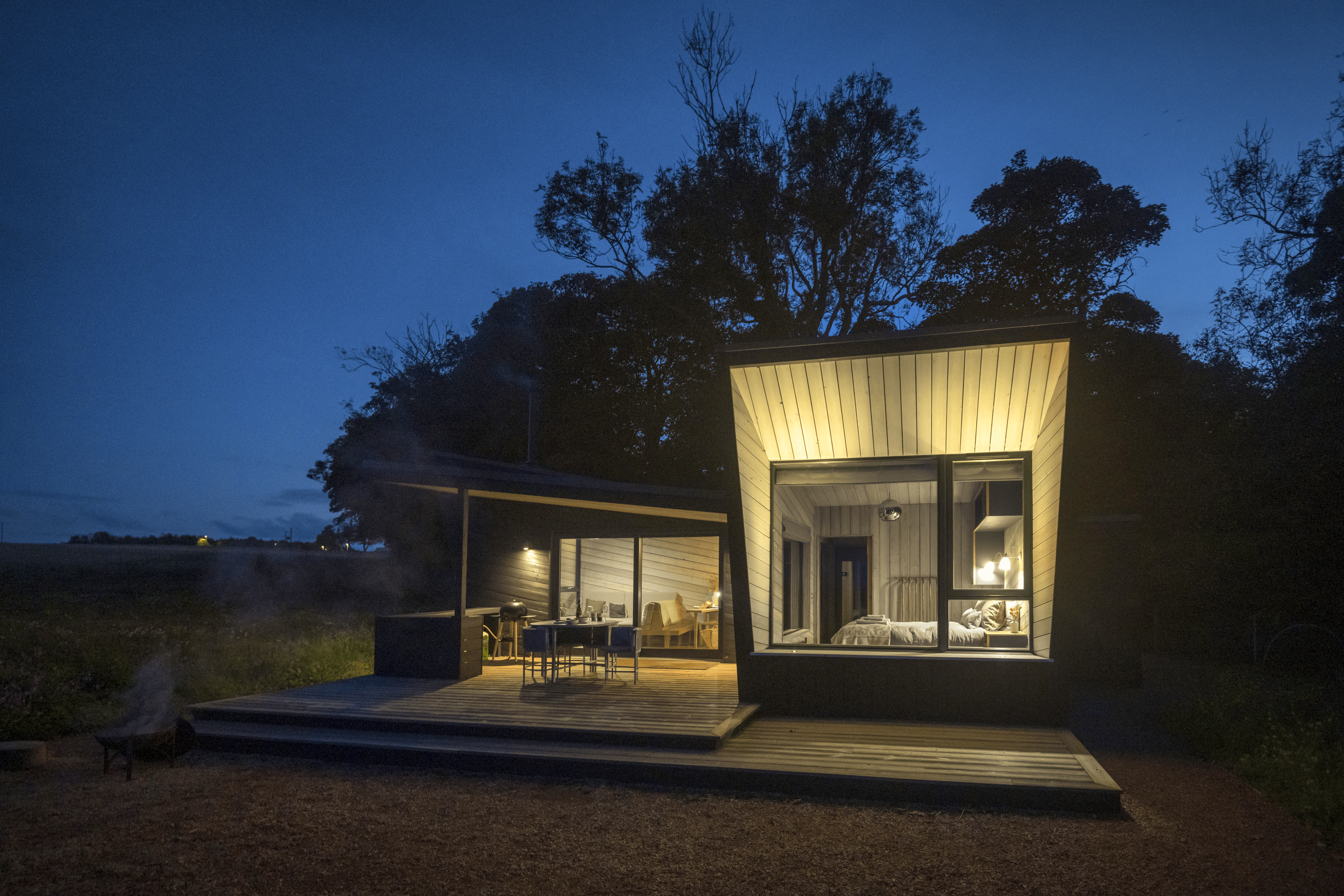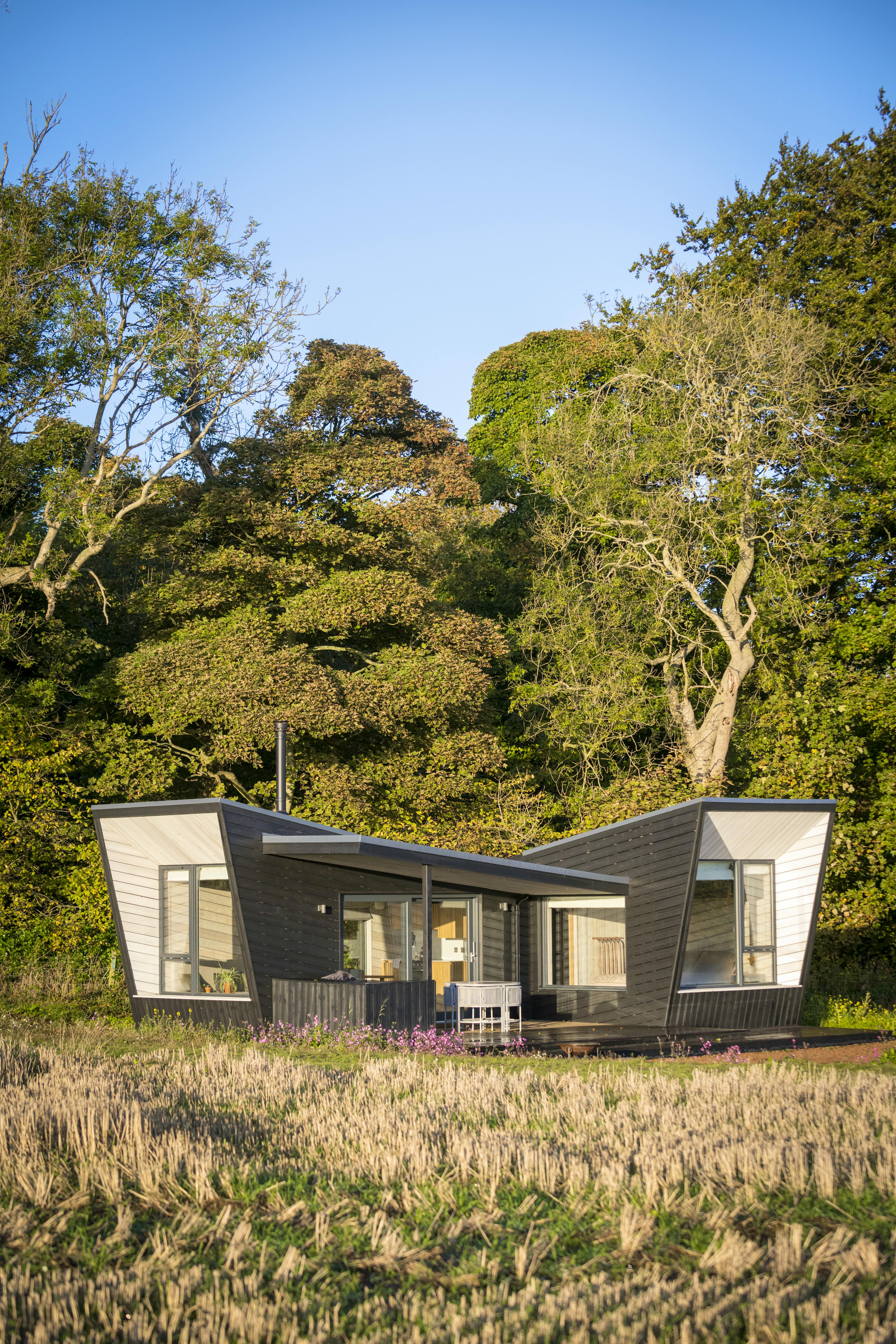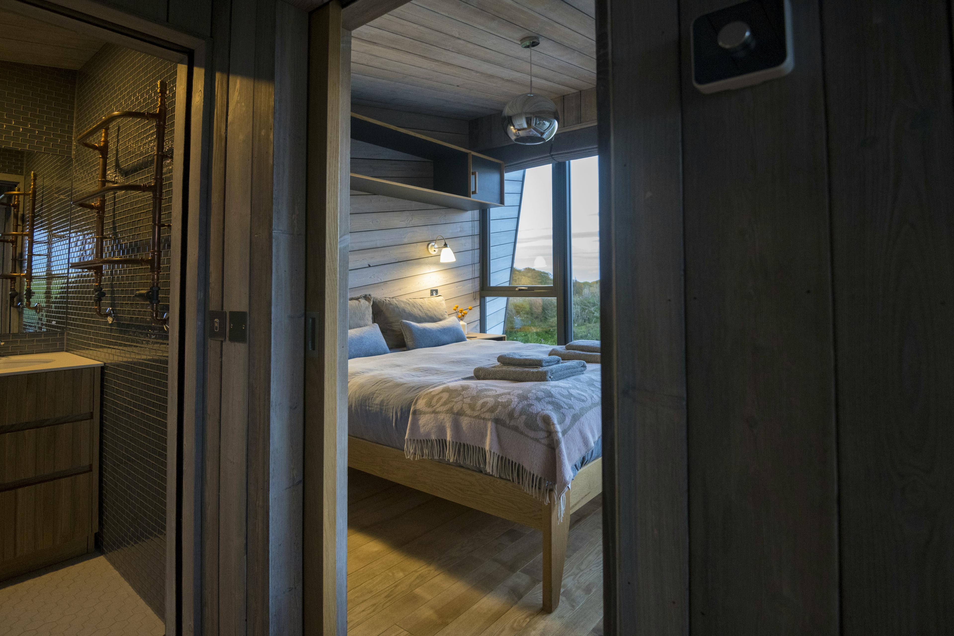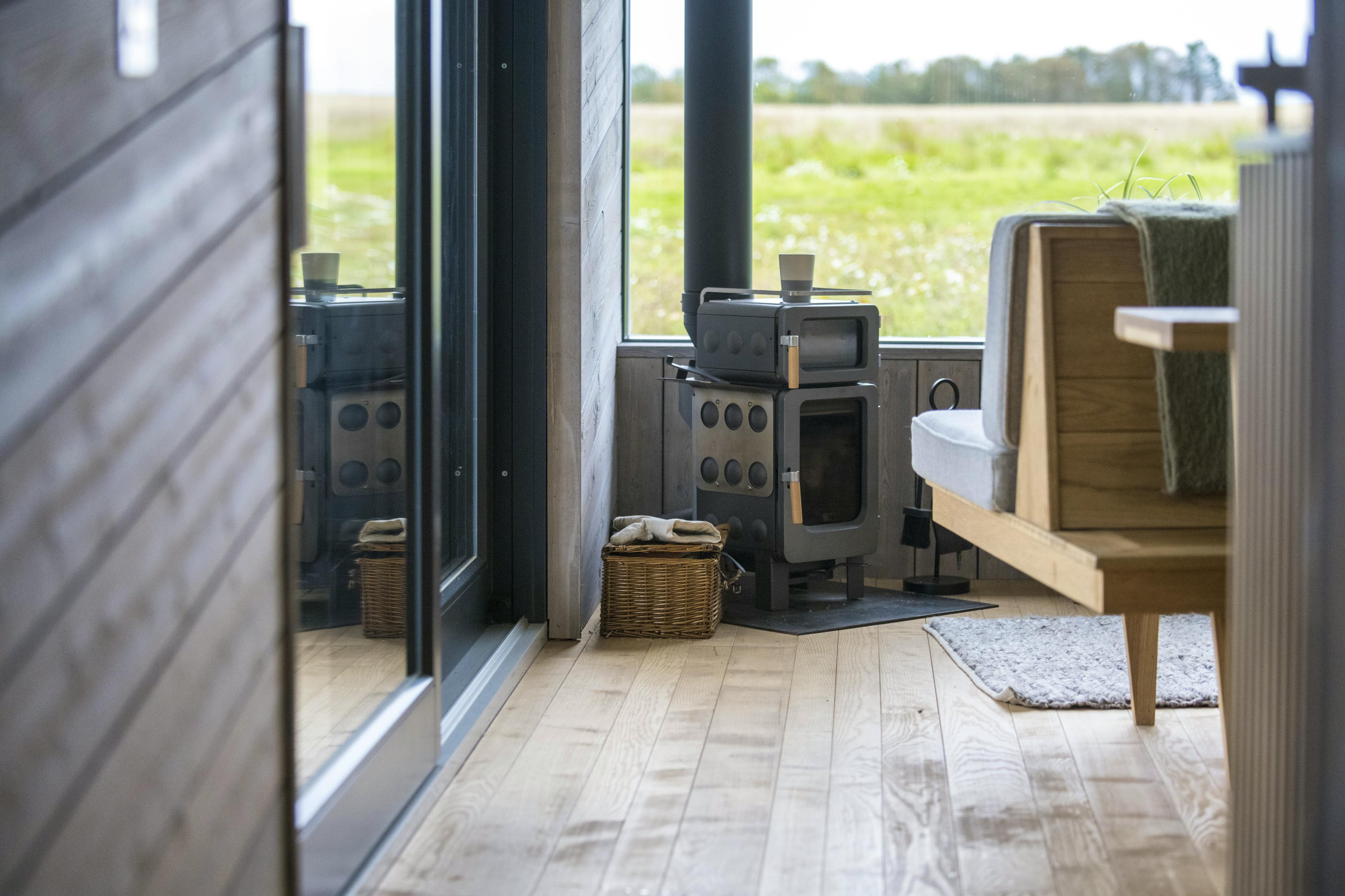 Striking off-grid cabin for two with far-reaching views towards the Fife coastline, expertly designed with you and the planet in mind.