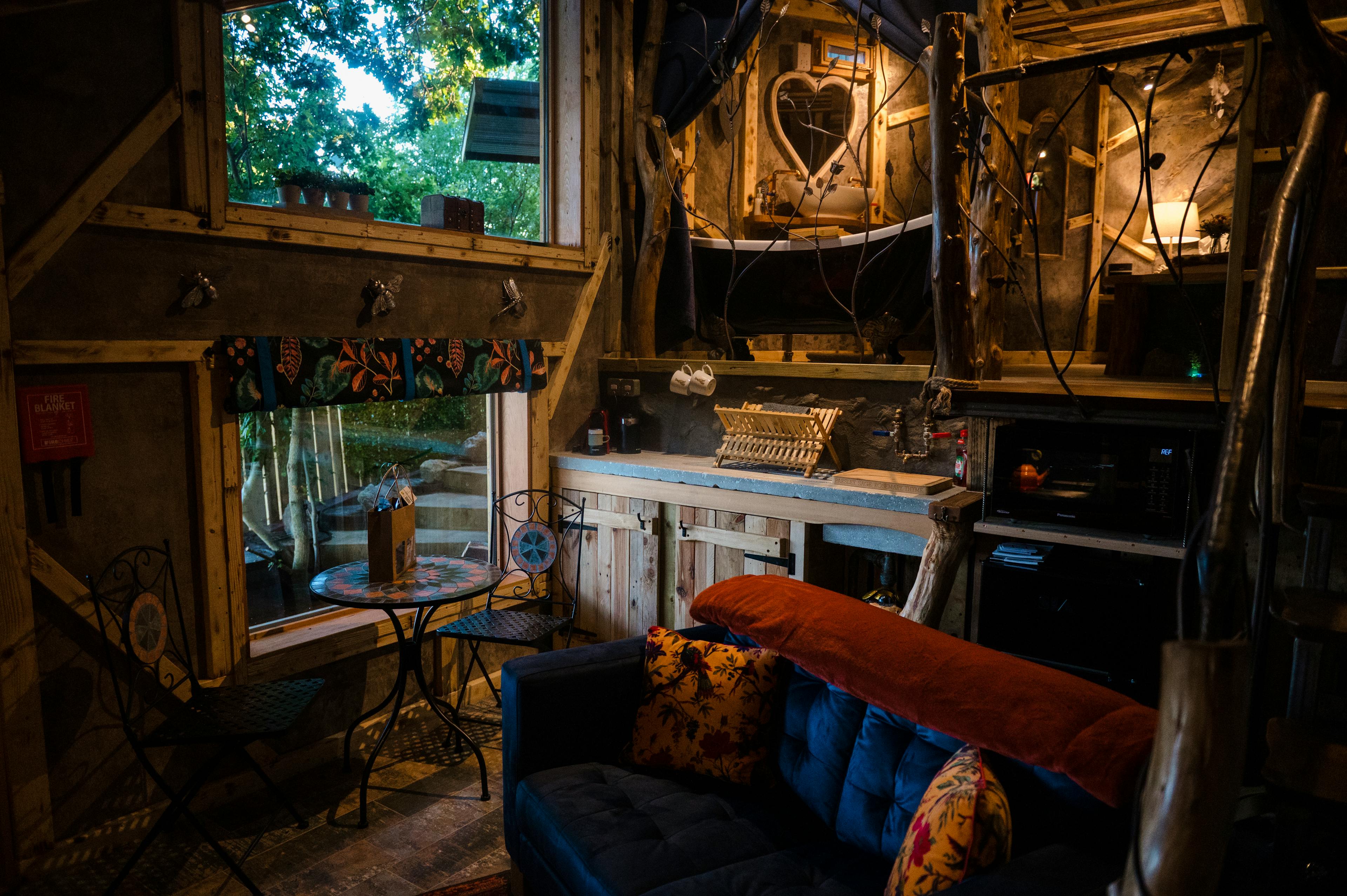 This enchanting treehouse in rural Kent sets the perfect scene for a cosy, romantic stay with a difference, complete with hot tub, roll top bath and log burner.