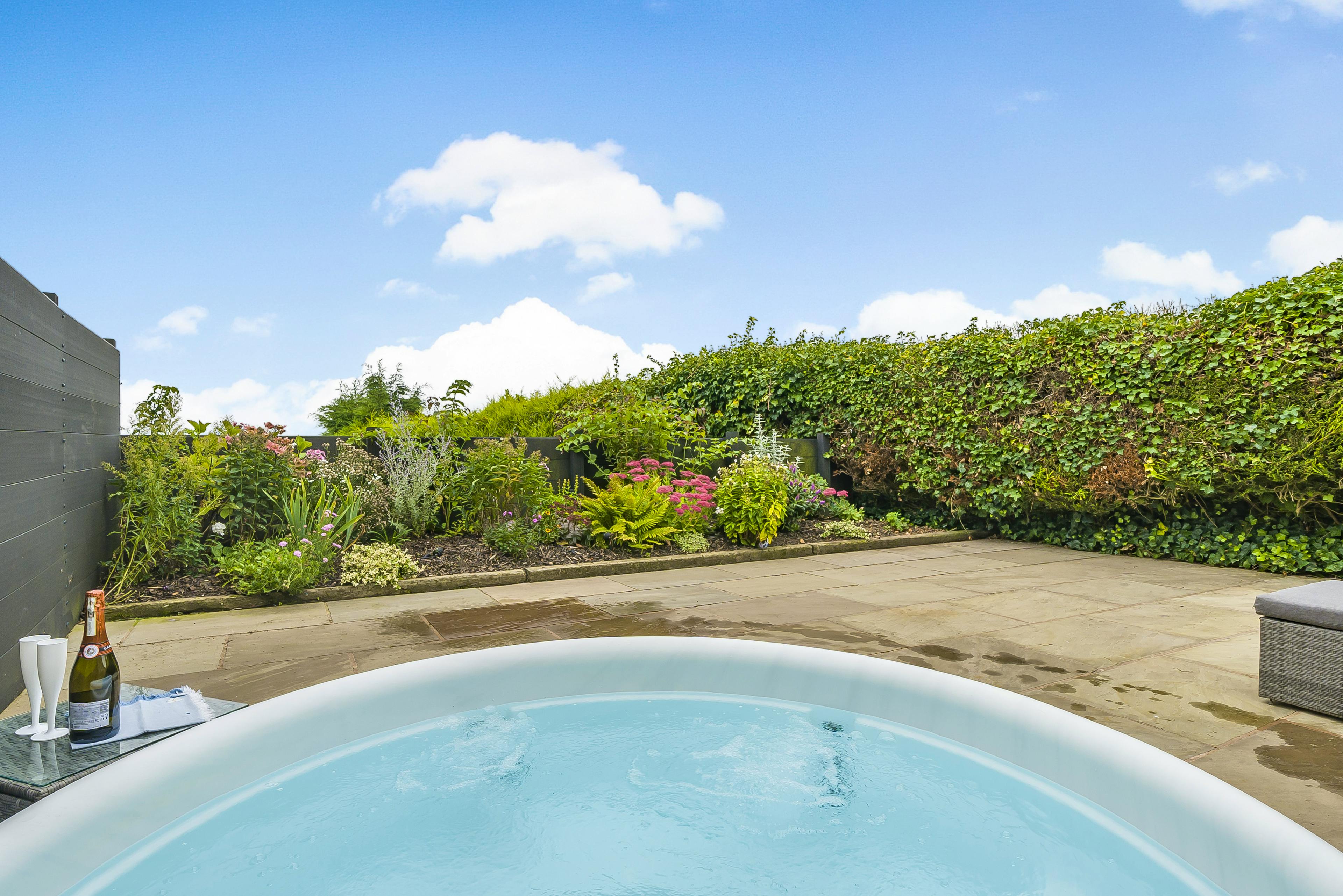 Step through bi-fold doors to your own serene patio, complete with a private hot tub for relaxing under the stars.