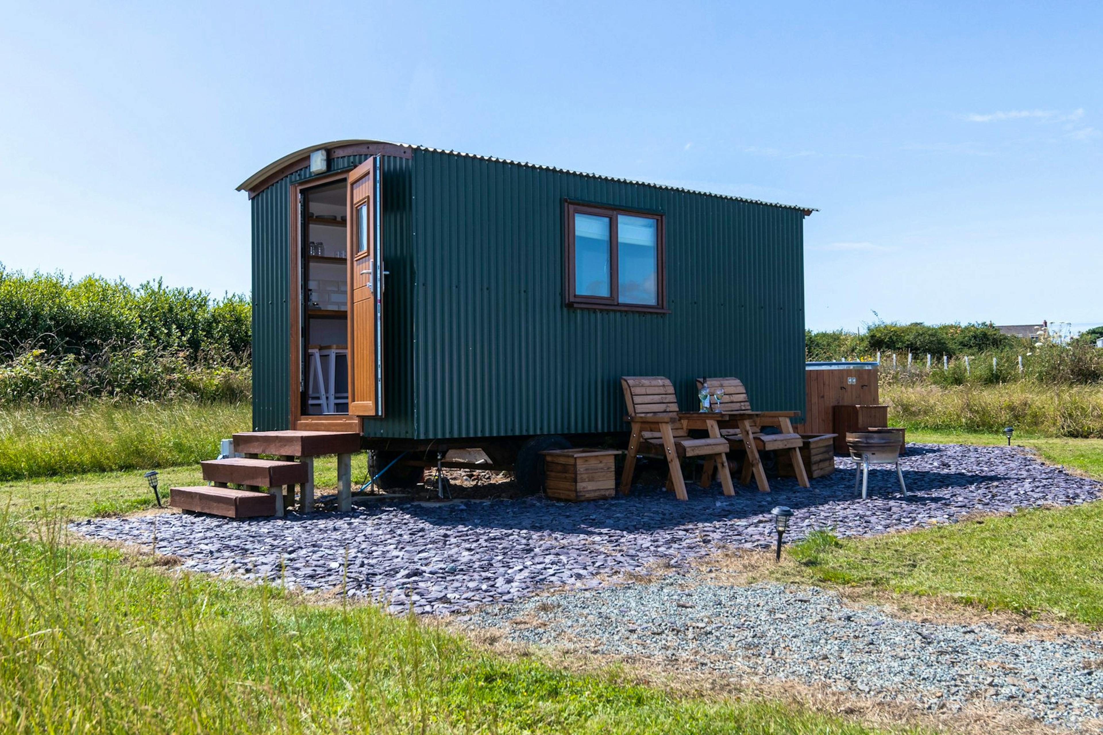 Pretty shepherd's huts with private hot tubs boasting views of the stunning Pembrokeshire countryside