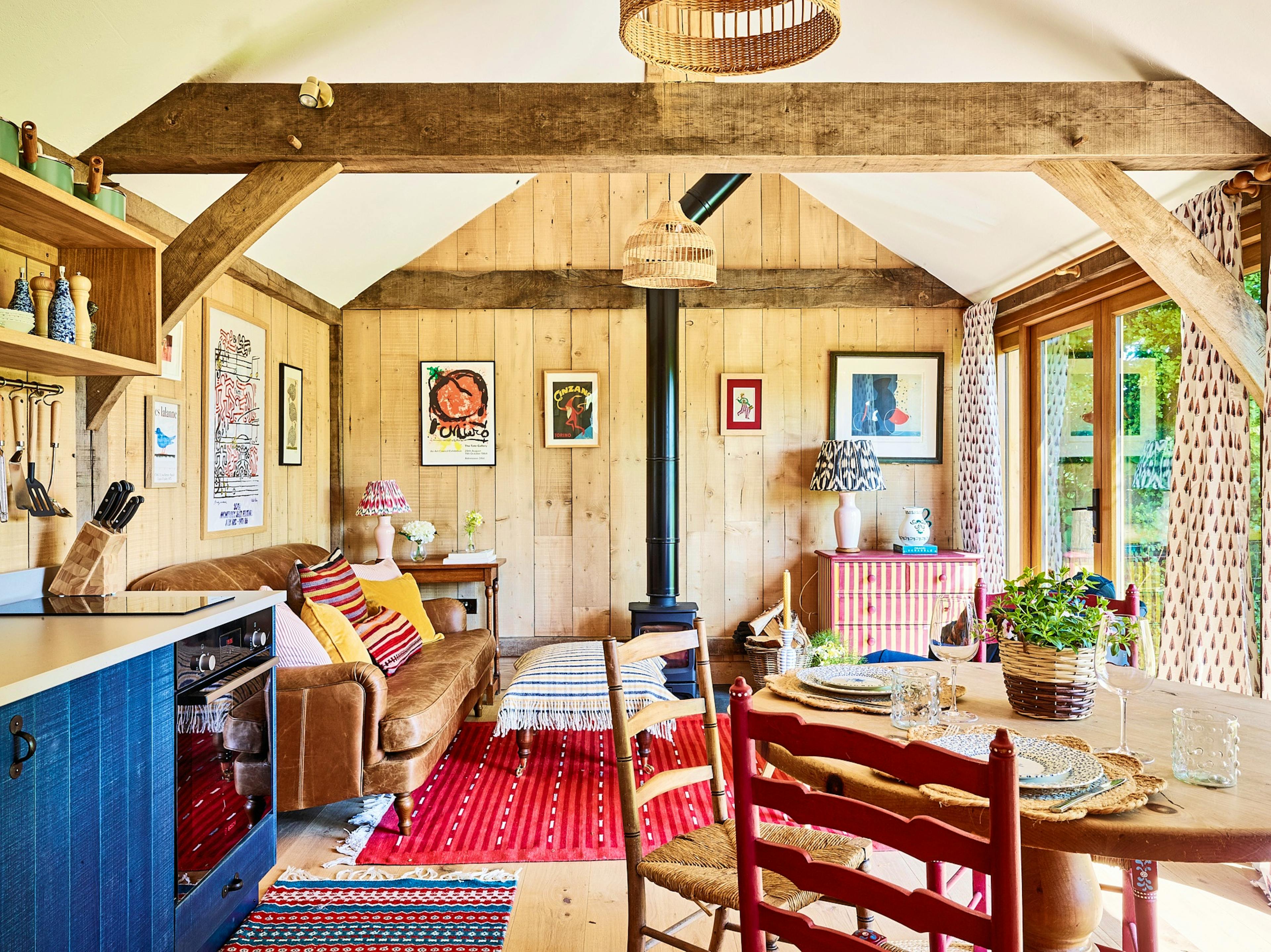 A lovingly restored former lambing shed, now a private woodland cabin tucked among cider orchards in rural Somerset.