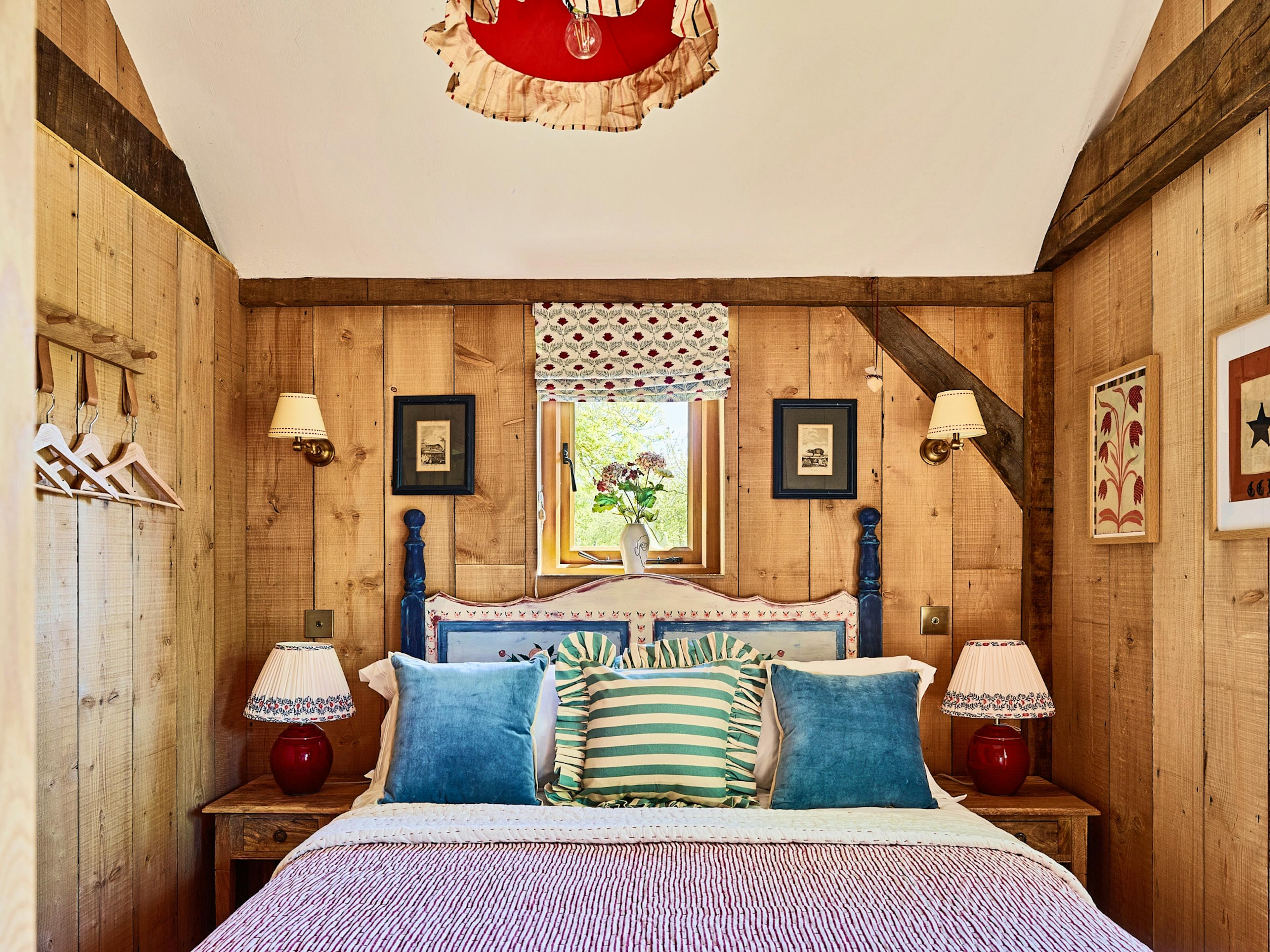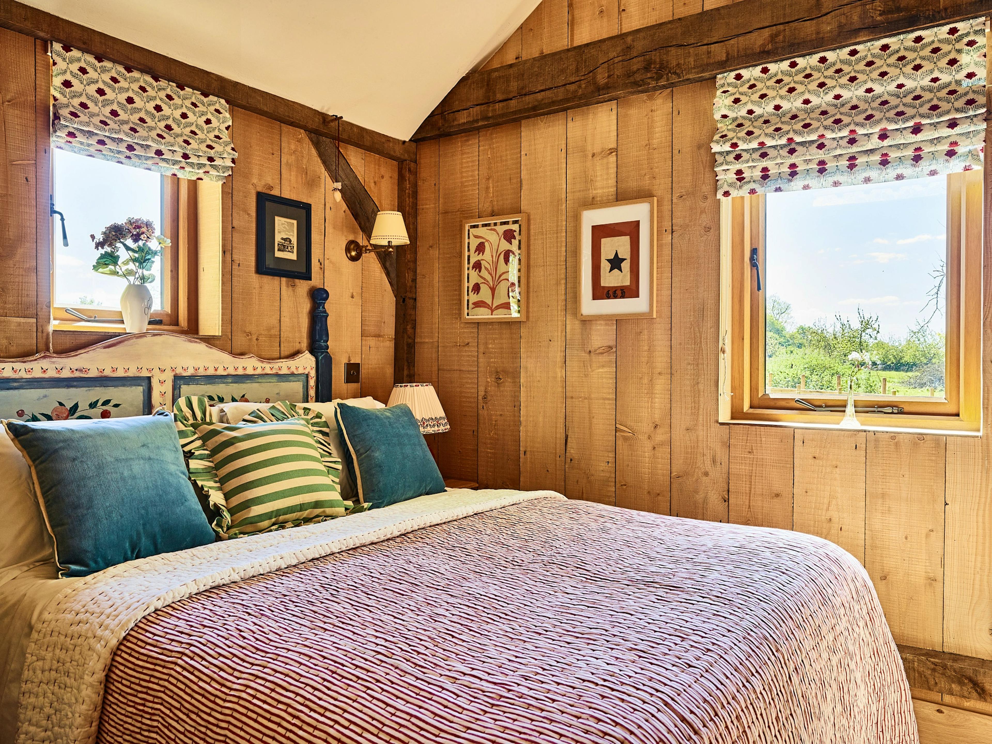 Cosy bedroom with king size bed, hand-painted headboard, luxury cotton bedding and blackout blinds for truly restful nights.
