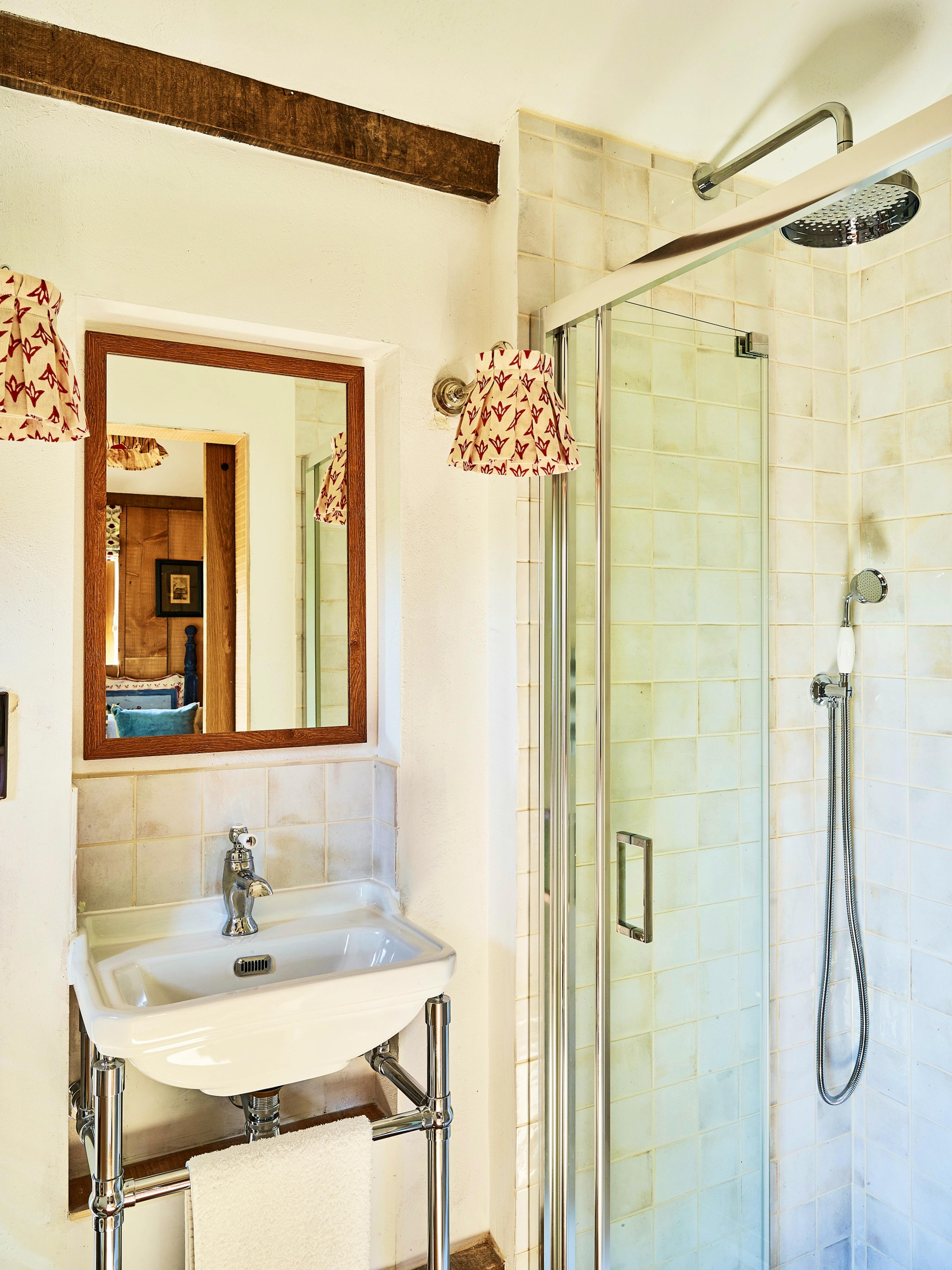 En-suite bathroom with walk-in rain shower and indulgent Made, by Mary Temperly products.