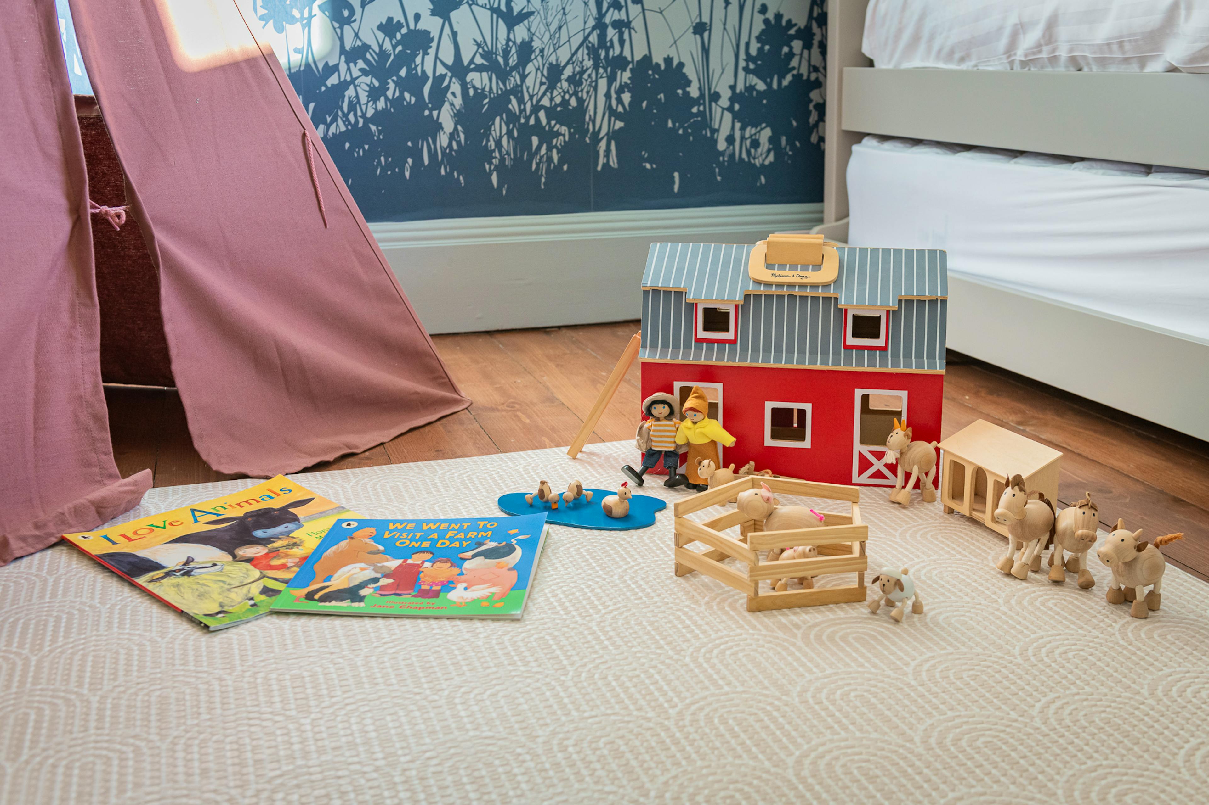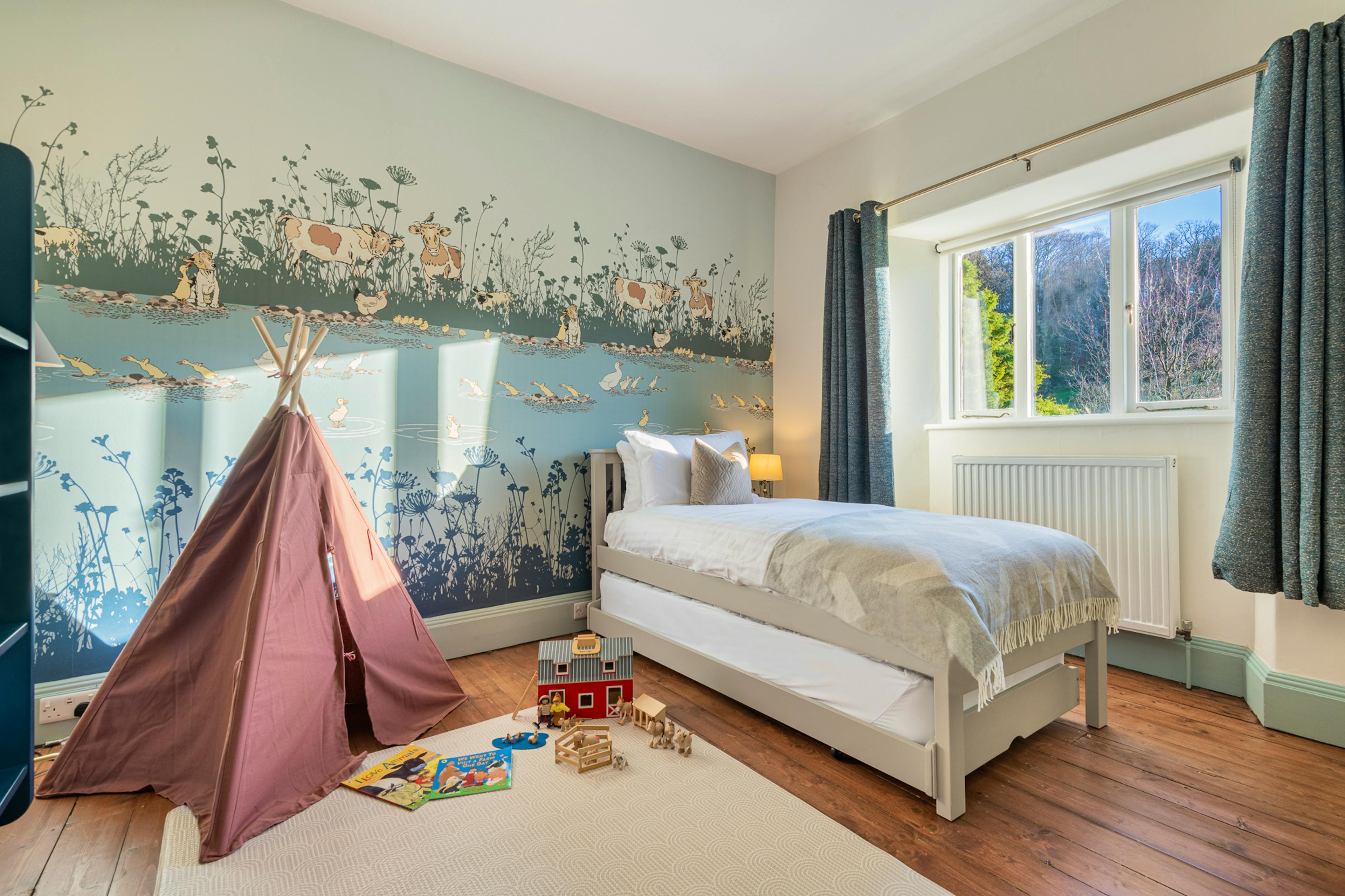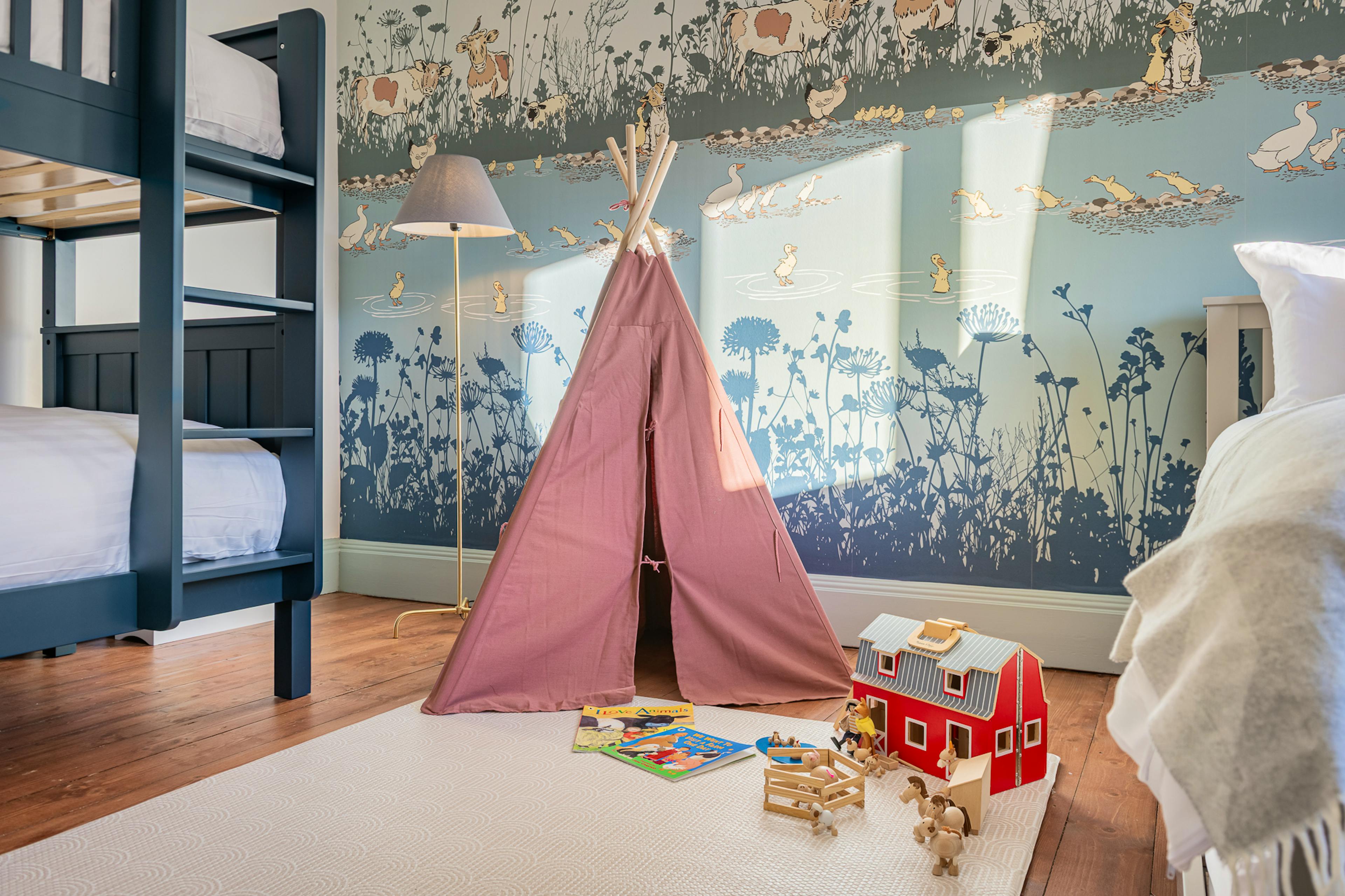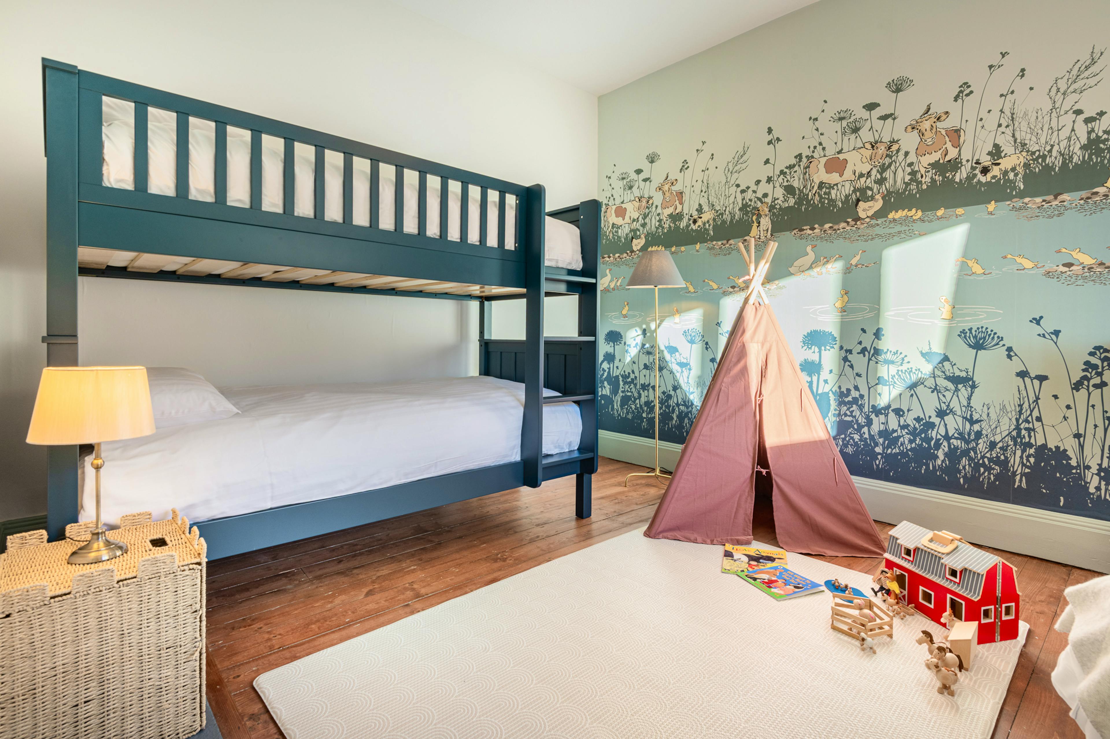 A dreamy children’s bedroom with bunks, trundle and playful details that create unforgettable holiday sleepover vibes.