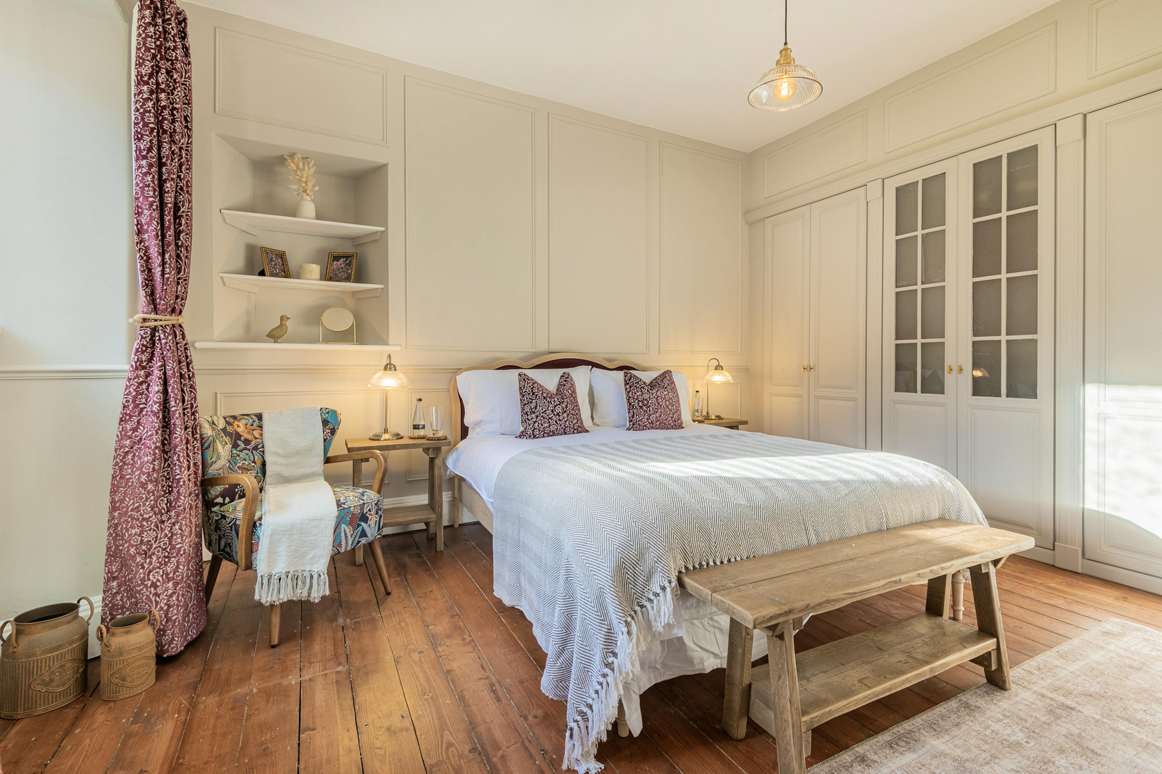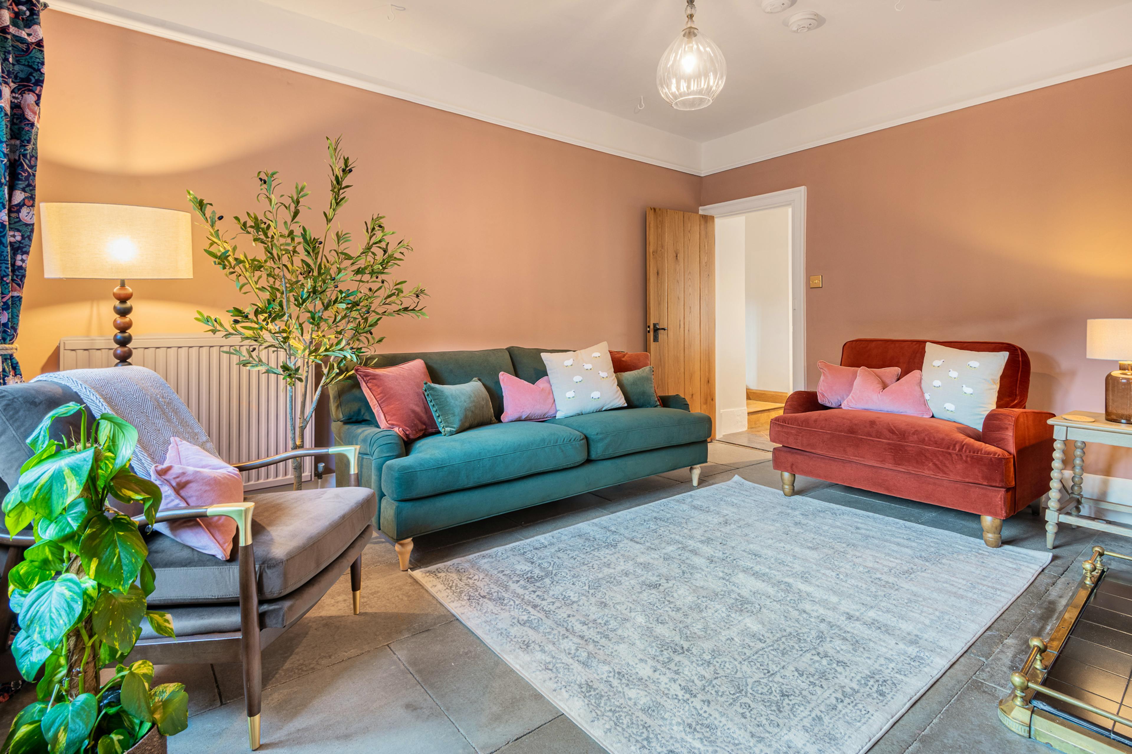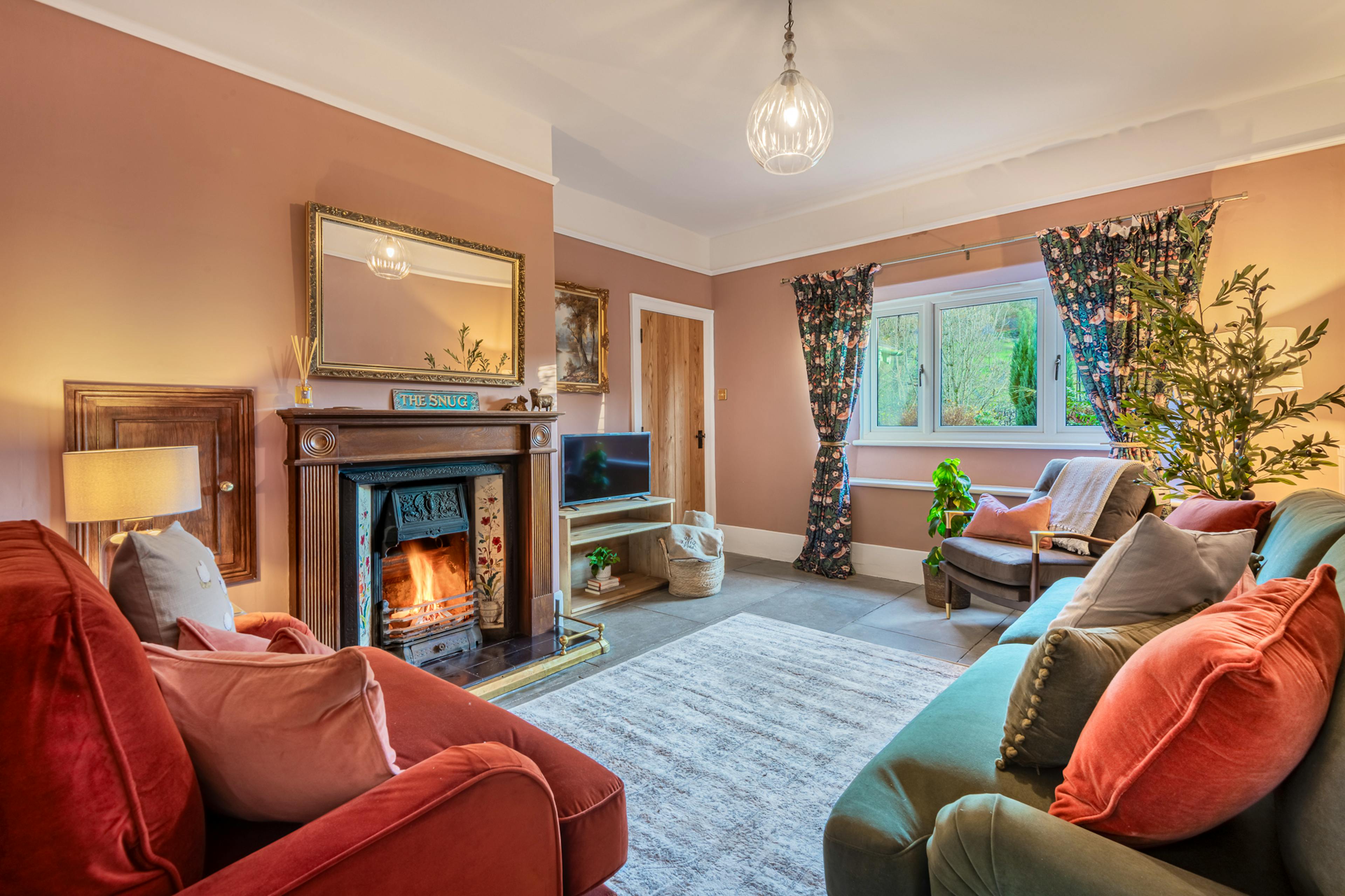 Warm, design-led interiors with open fires, wood-burning stove, natural textures and countryside views from almost every window.
