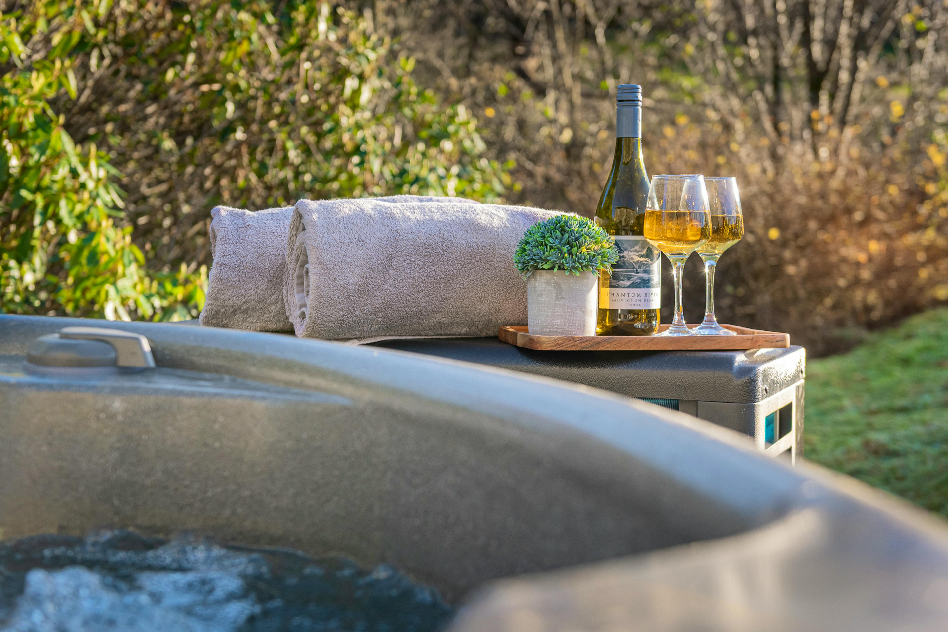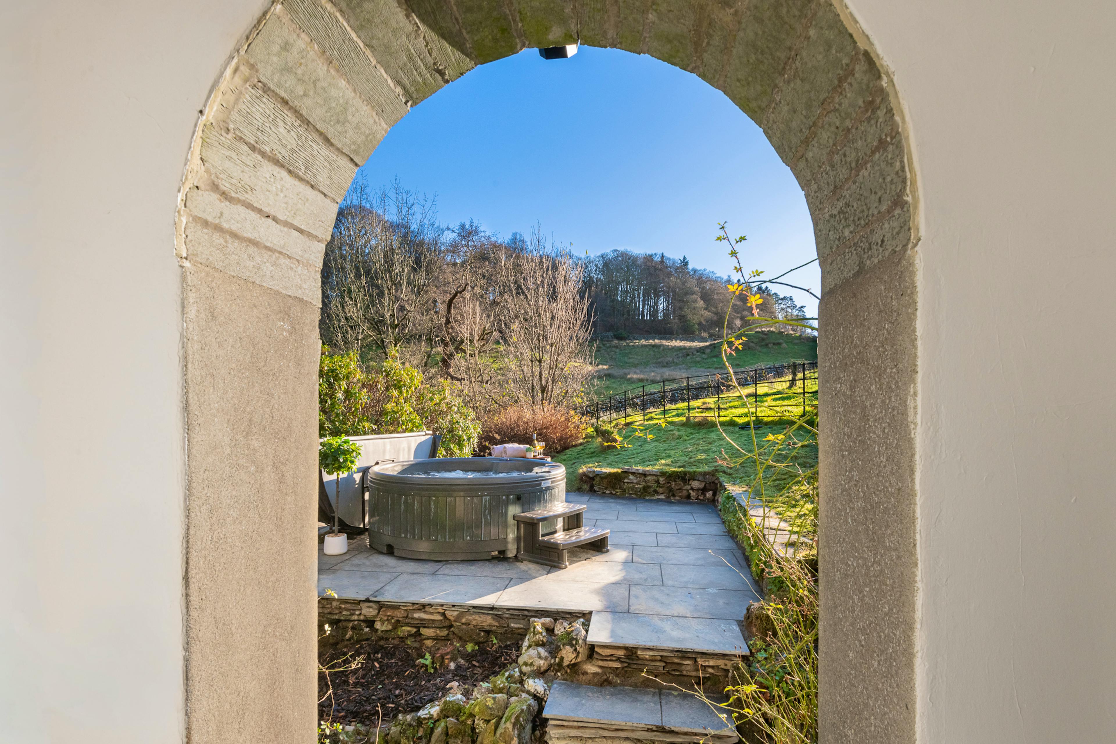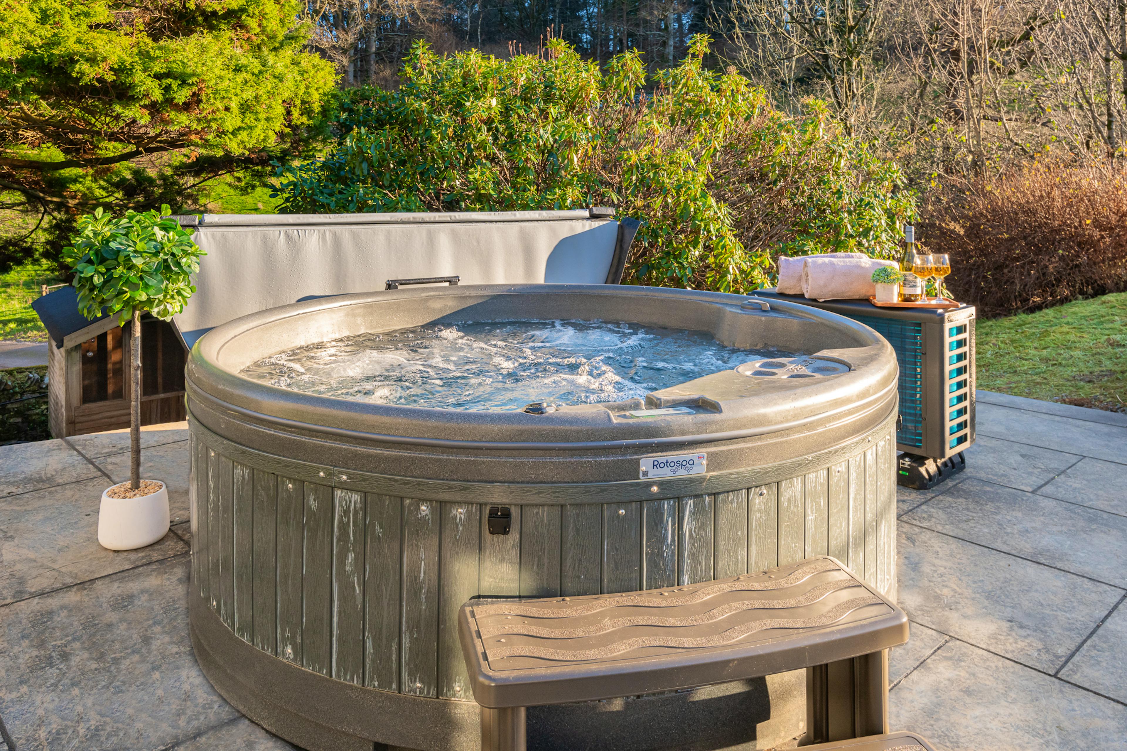 Six-person outdoor hot tub for starry evenings after days spent exploring fells, rivers and woodland trails.