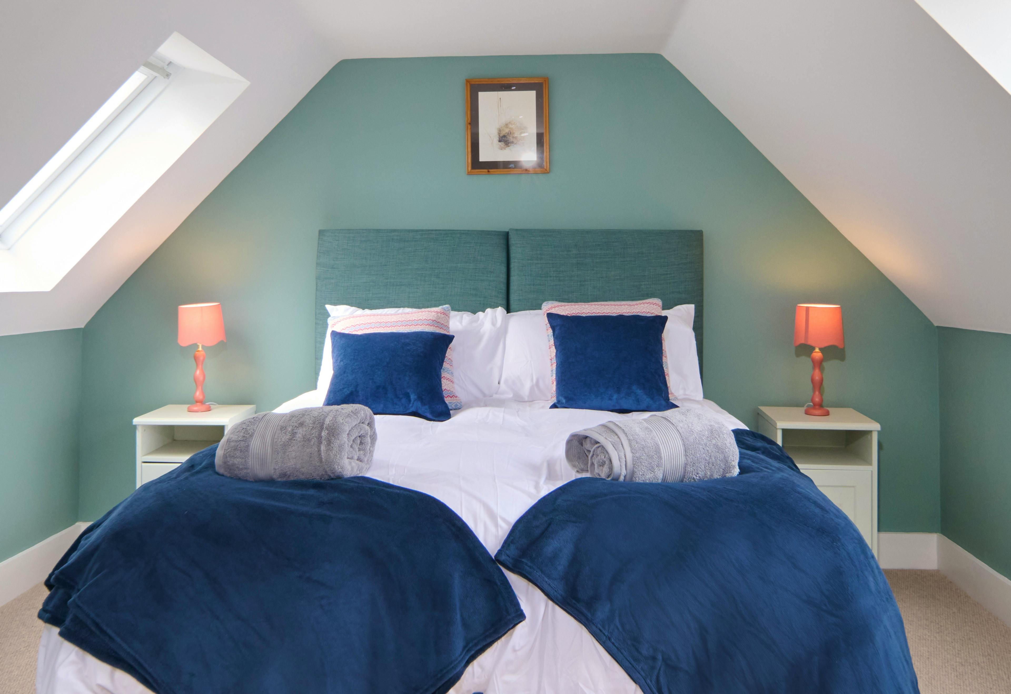 A charming loft bedroom with a super comfy bed that can be arranged as a double or twin to suit your stay.