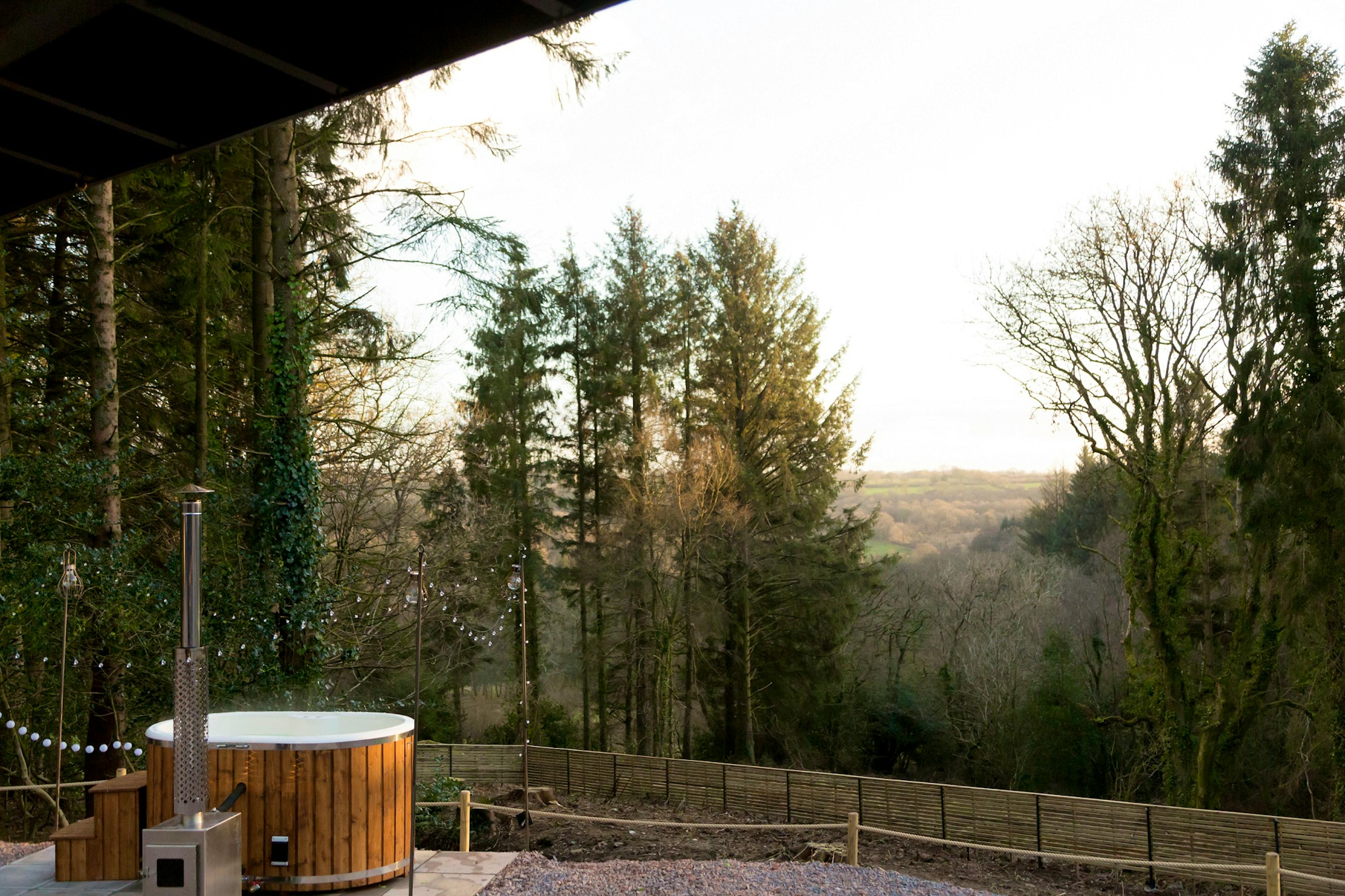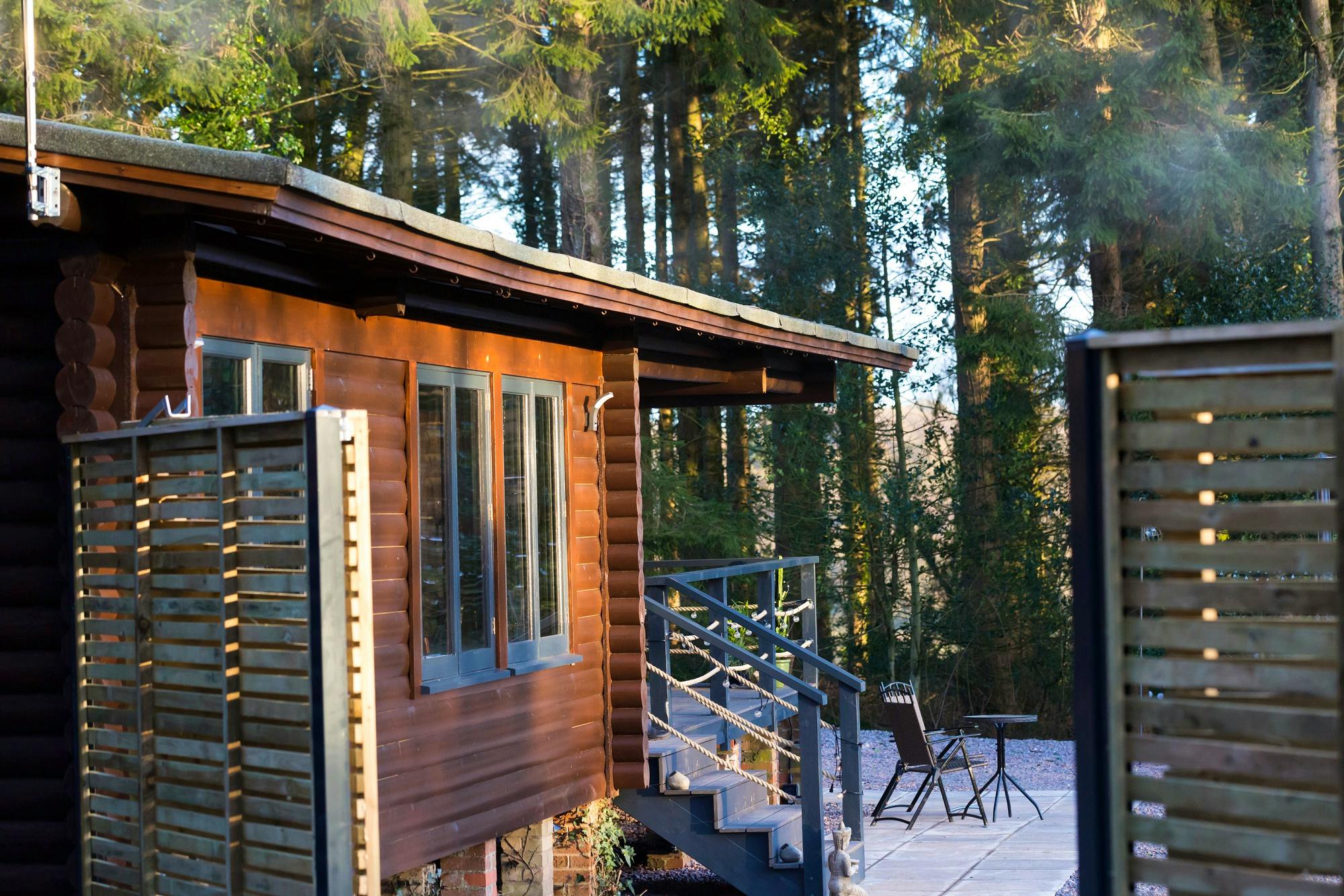 Luxurious log cabin for two in the Blackdown Hills, complete with hot tub and cosy log burner - perfect for romantic, rural escapes.