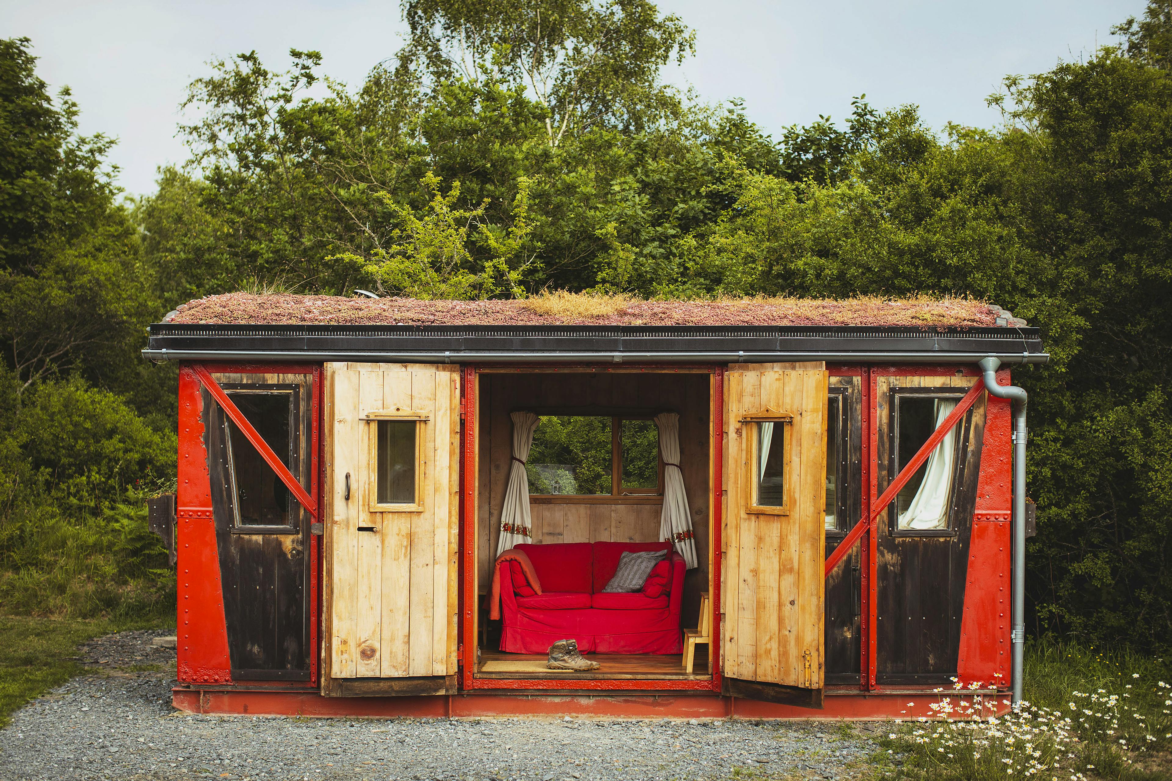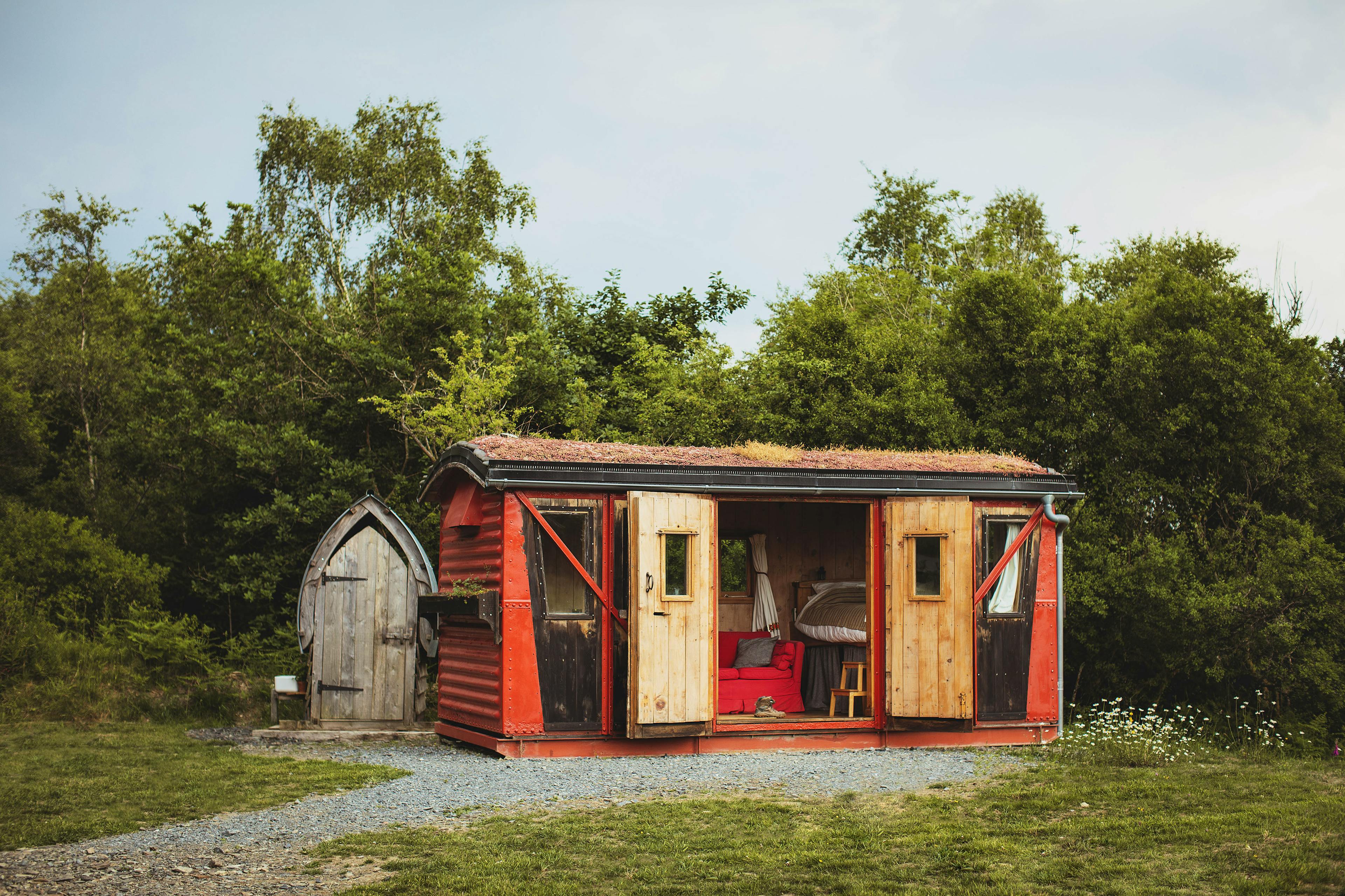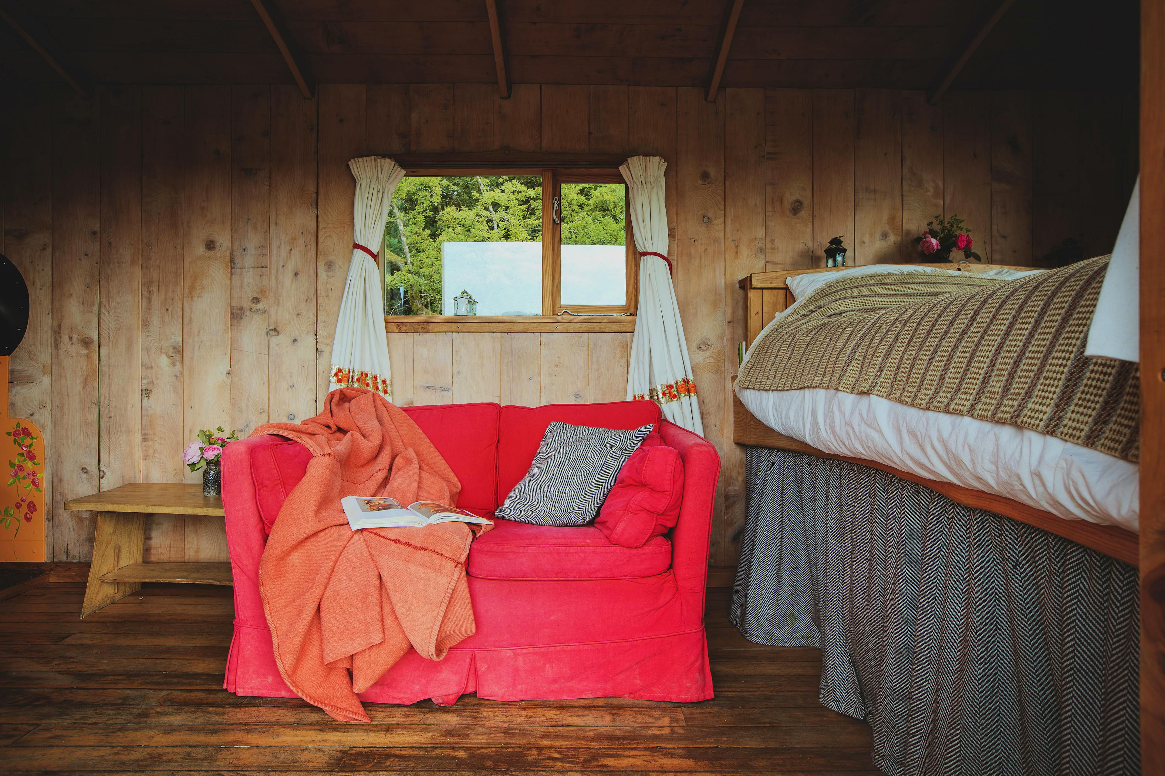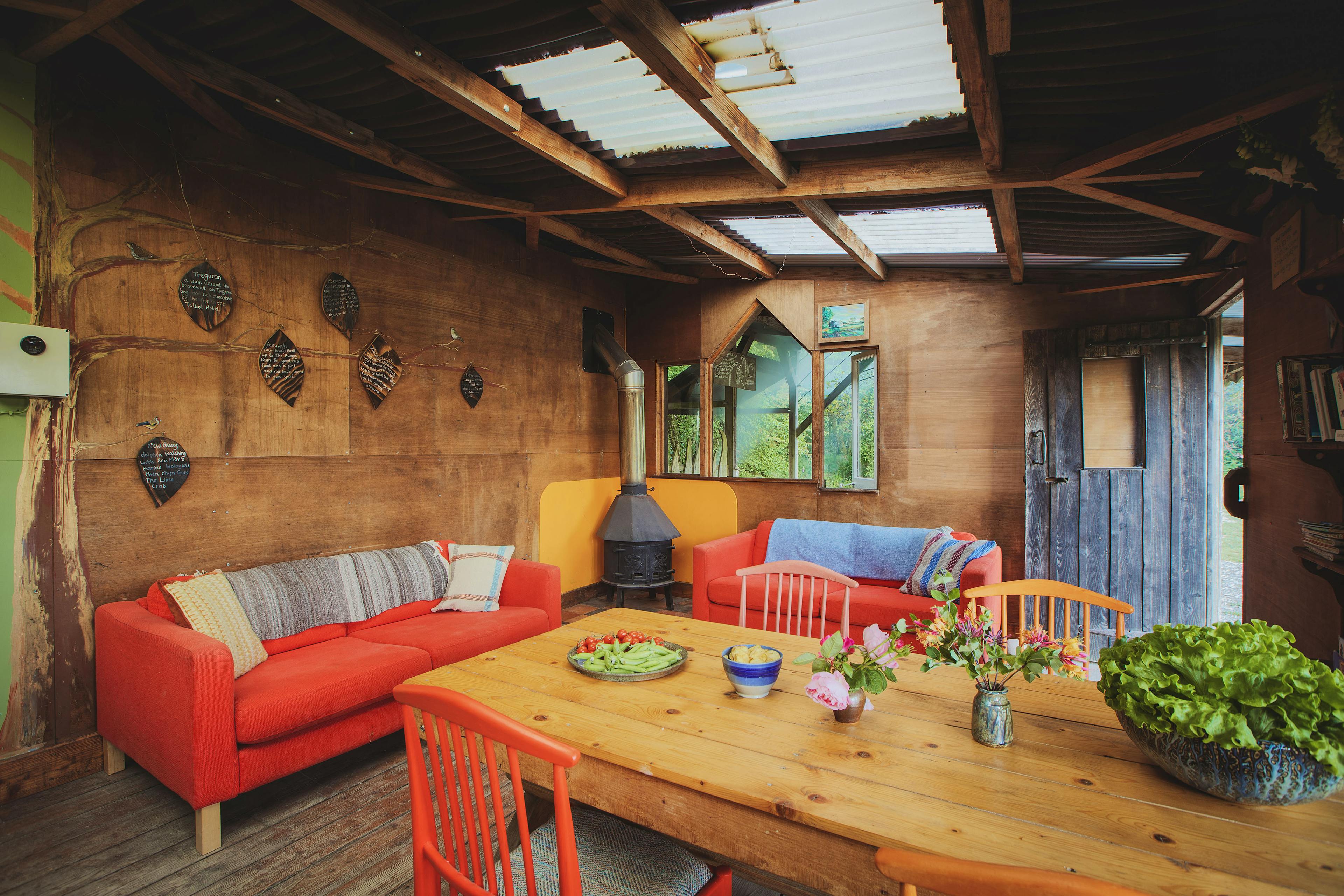 Snug tiny-home on a Welsh farm hand-built from local materials, with a private sauna, wild-swimming pool and a four-acre field to explore.