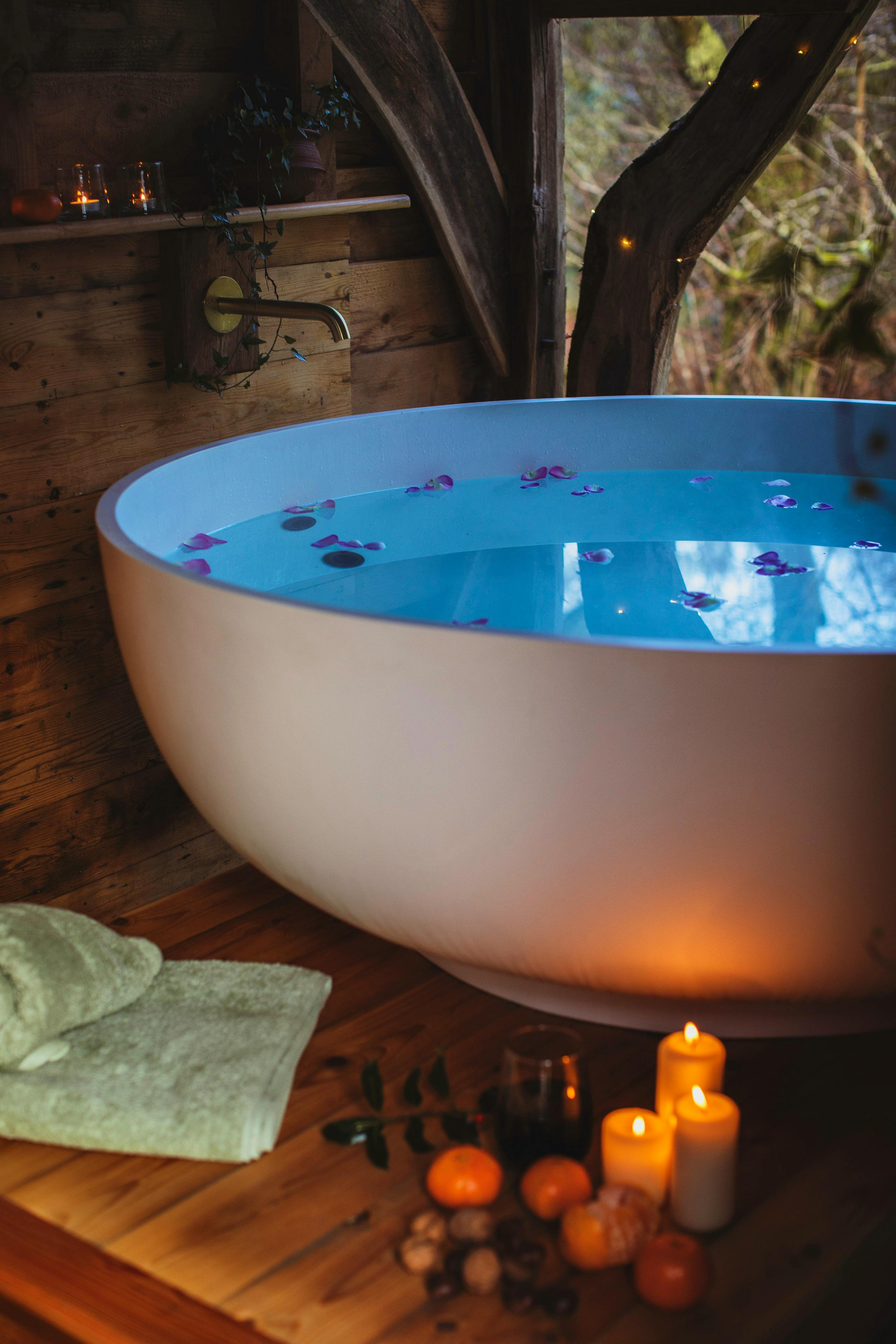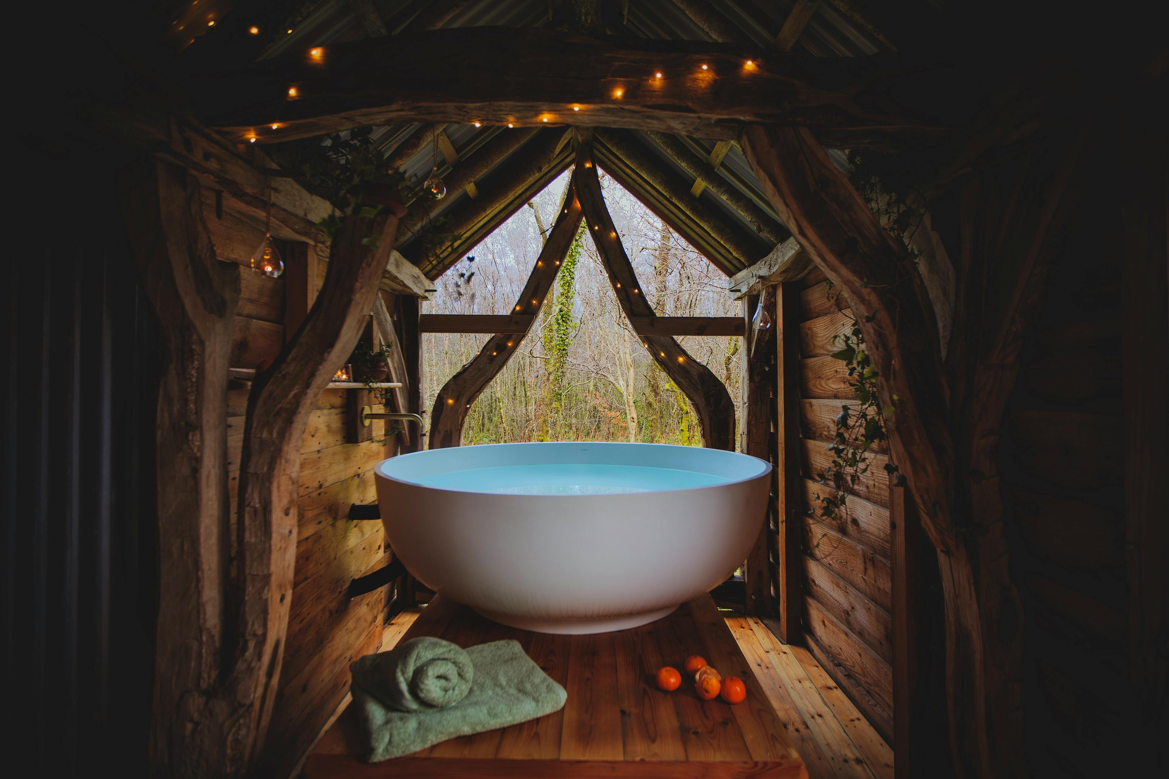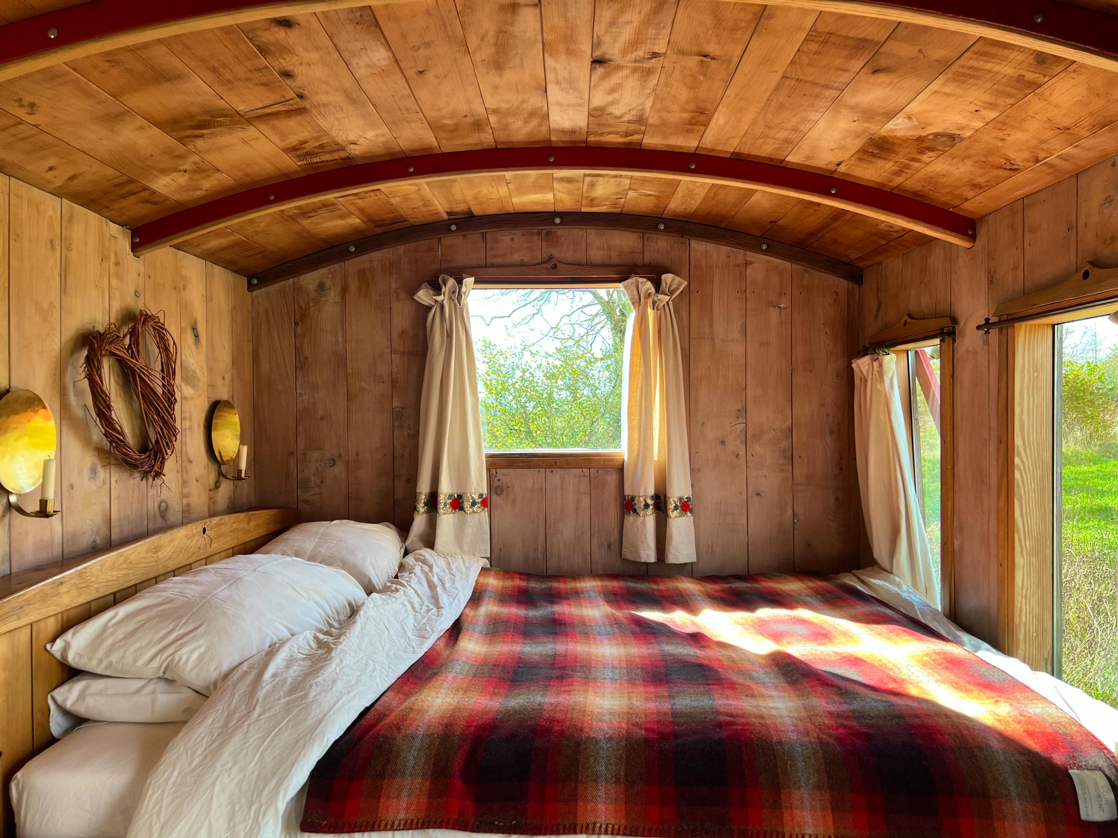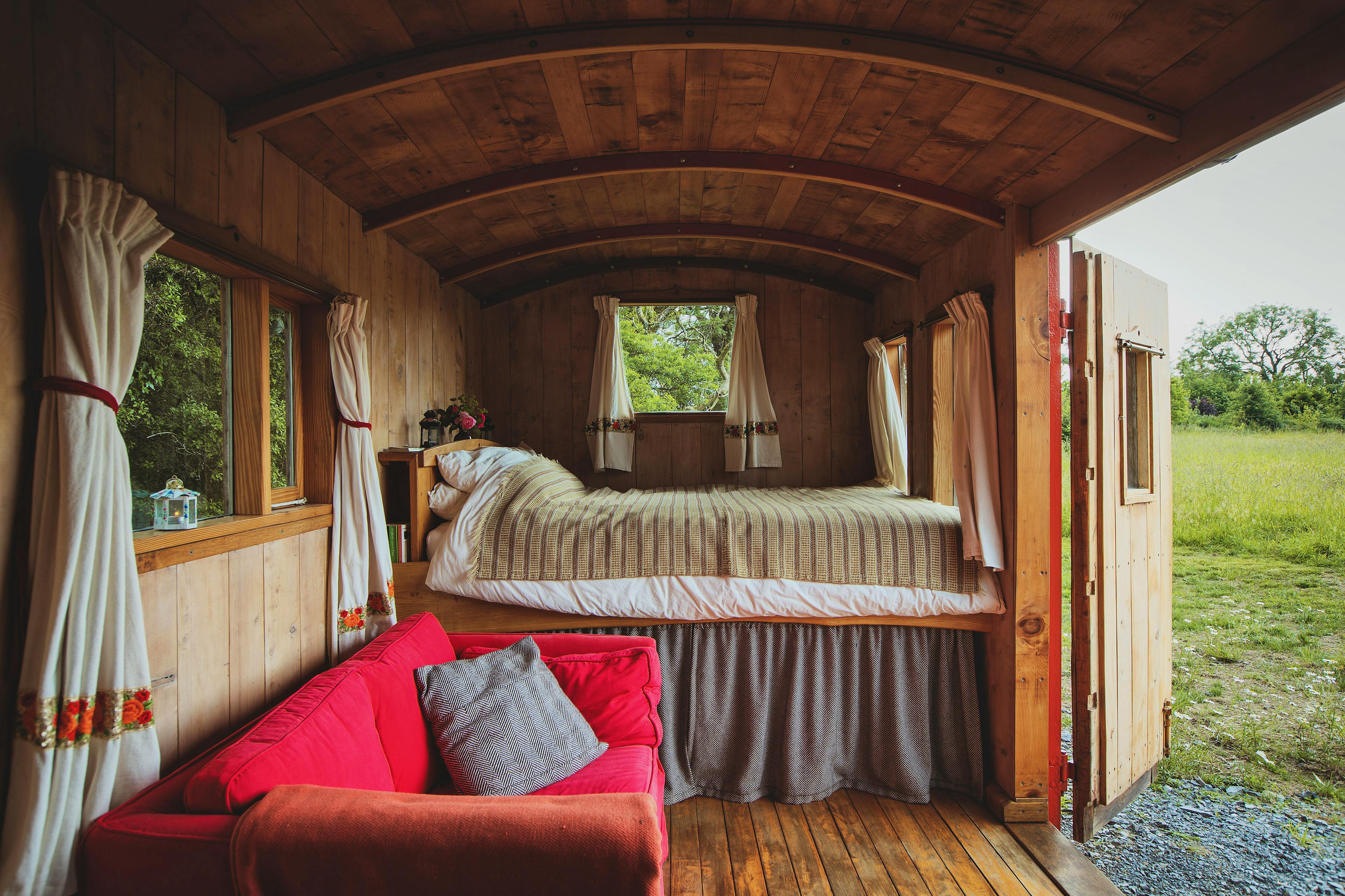 Snug tiny-home on a Welsh farm hand-built from local materials, with a private sauna, wild-swimming pool and a four-acre field to explore.