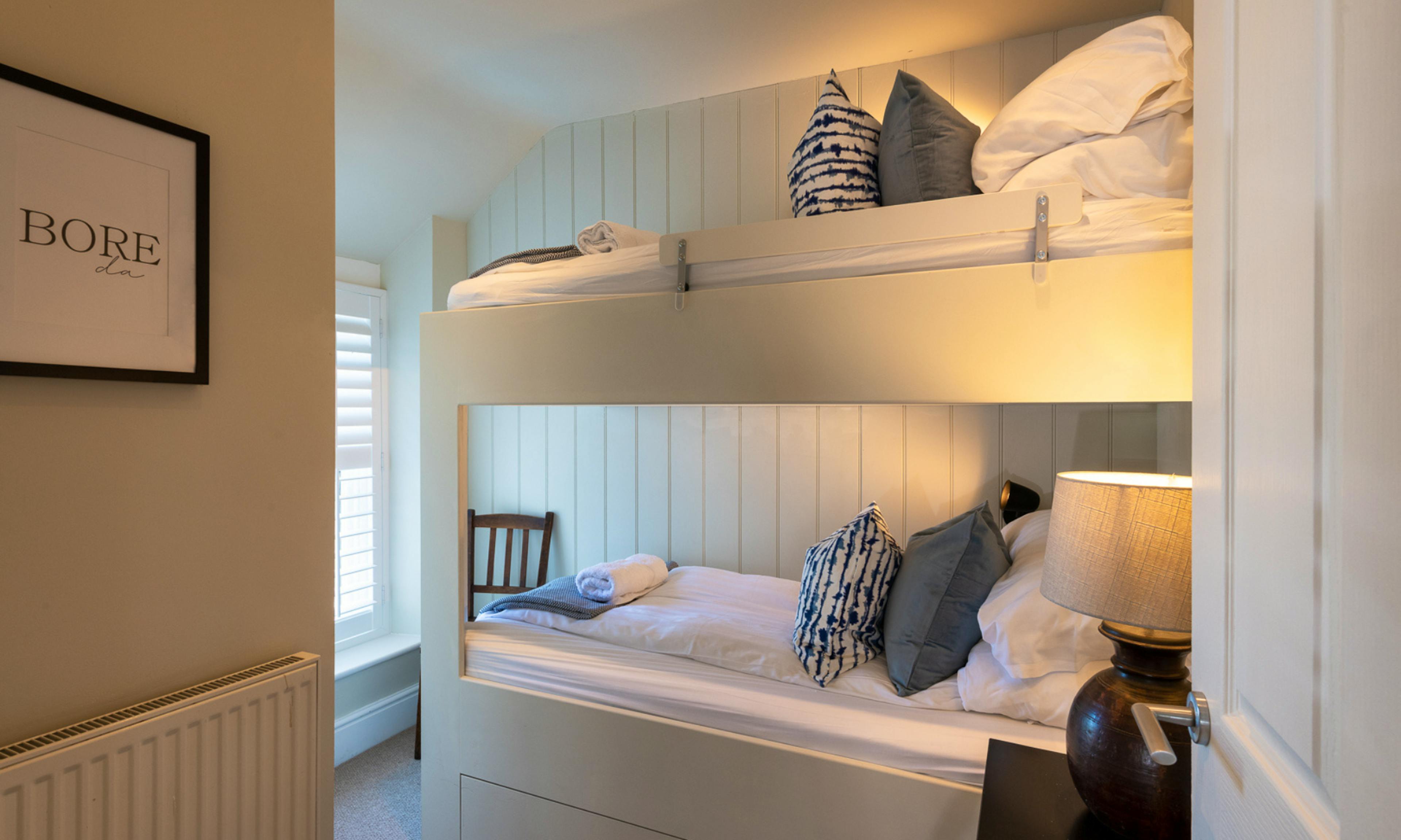 There are four thoughtfully designed bedrooms: two super-kings (one with sea views), a flexible twin room and a fun bunk room, making it ideal for families or groups.