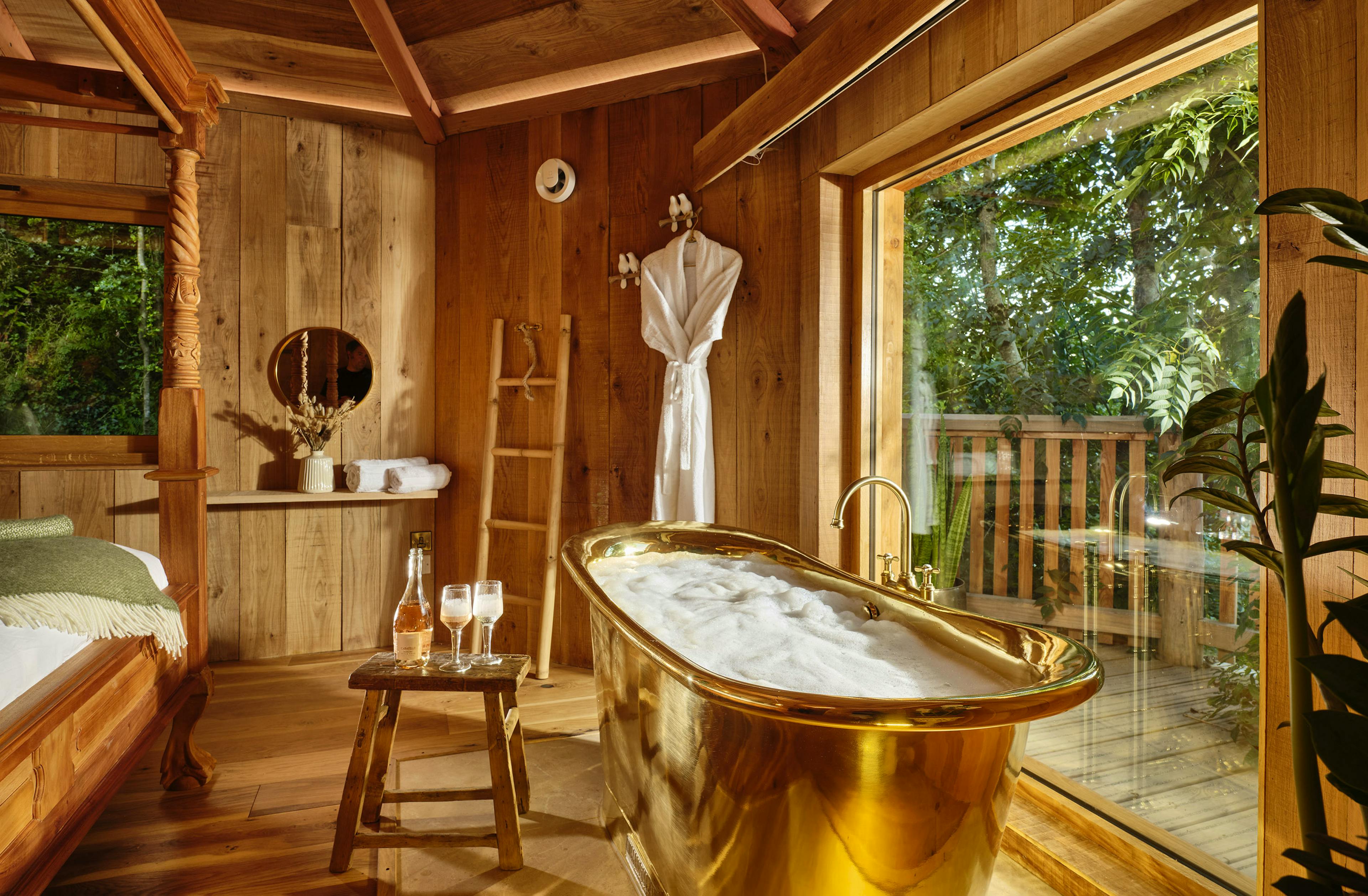 Escape to The Nest, a luxury, couples and family-friendly treehouse in a beautiful setting in North Devon, complete with alfresco baths and a woodfired hot tub.