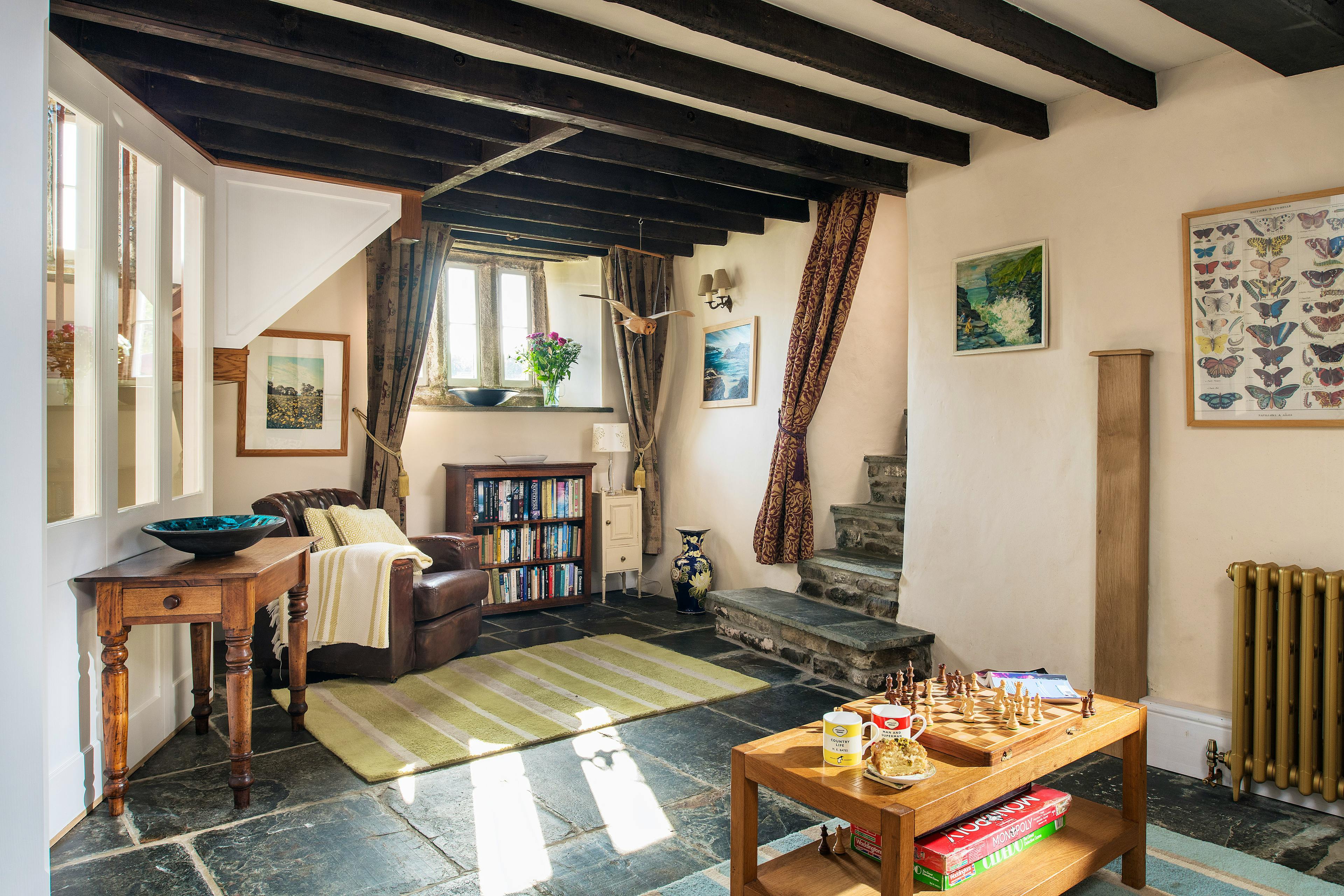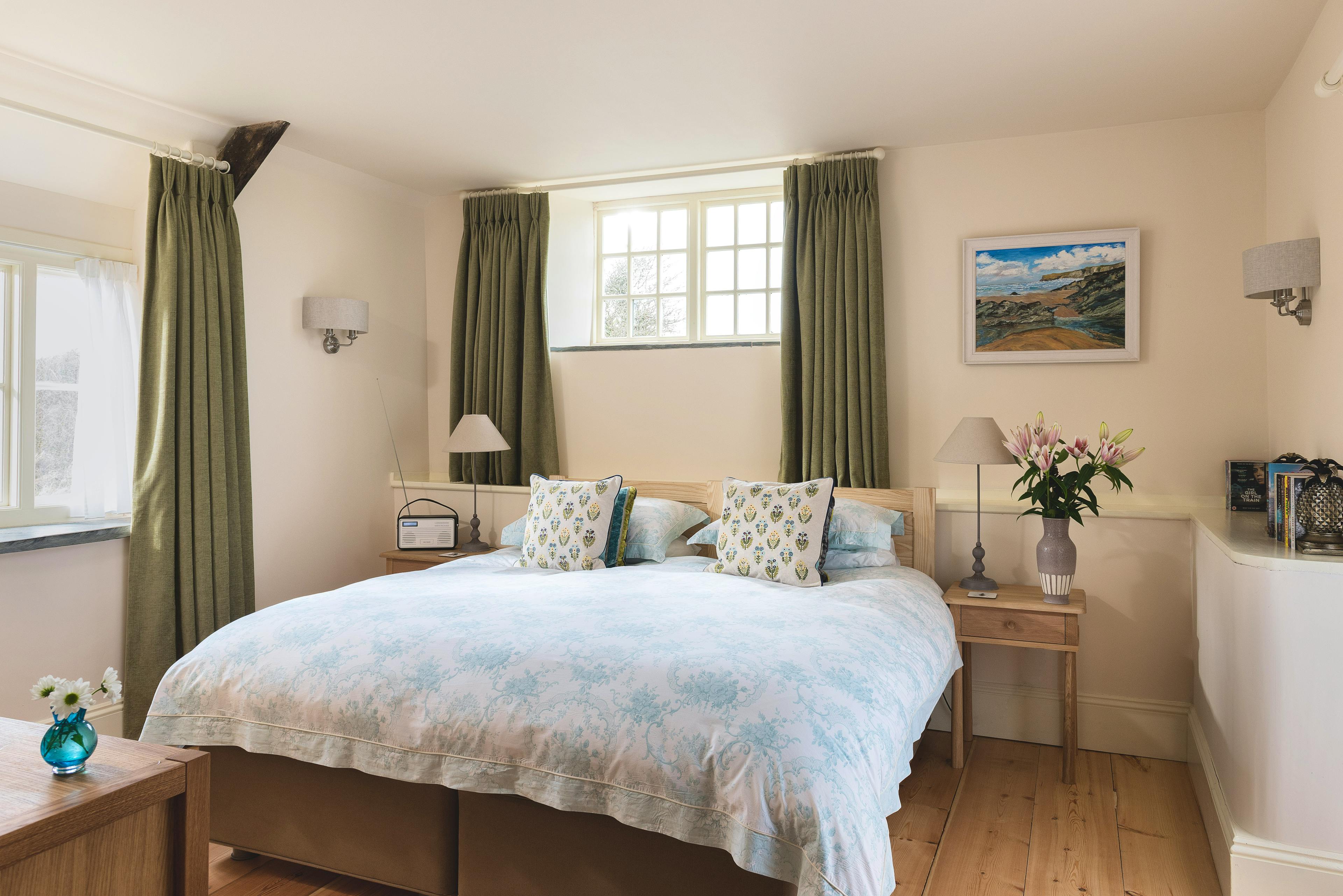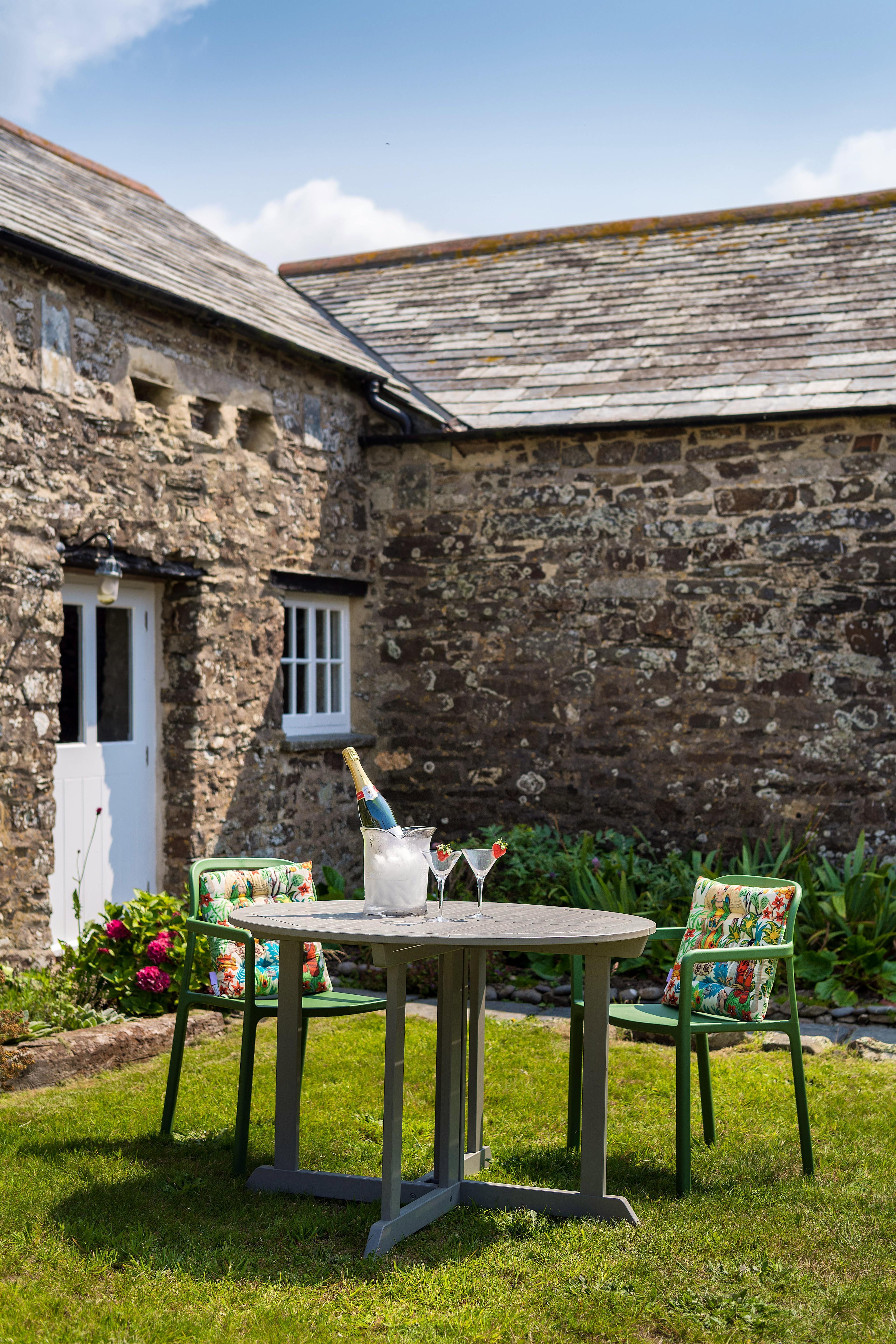 Couples can enjoy an idyllic retreat for two at the North Wing at Trevigue Farmhouse. You and your loved one have the entire north wing of this beautiful old home. It's full of character and has its own private east-facing courtyard which catches the early morning sunshine. Tucked away up a single track, close to the village and the wildly beautiful Strangles Beach, this romantic bolthole for two is set in a fantastic location on the North Cornwall Coast. Hunker down with a book, enjoy romantic dinners for two, or get out and explore this marvellous part of the UK, before retiring back to your comfy bed for a great night’s sleep. The North Wing at this historic farmhouse has a lovely combined sitting and dining room. This delightful space has whitewashed walls, exposed beams, and a bold granite fireplace with a large wood burner. Sink into the big, comfy sofa, or get cosy in front of the fire with a glass of wine and chat into the night. There’s also a quaint dining table for two in this space, which is a nice spot where you can enjoy tasty meals together. You may also wish to socialise in the second sitting room, which is also the reading room. This space is home to some lovely books and games, and has yet more of that all-important rustic, rural charm. The property has a wonderfully stylish kitchen that’s home to all the amenities you’ll need. There’s a Neff inbuilt cooker, Neff hob and Neff cooker hood. You also have a large stainless steel fridge with water dispenser to sample the Trevigue spring water ice cold, an inbuilt dishwasher and washer dryer, Panasonic stainless steel microwave, Dualit toaster, Drip coffee machine, and a Nespresso pod machine with compostable pods to start you off. Upstairs sits the beautiful bedroom, with nice views of the countryside through the French double doors, which open up onto the garden. Here there’s a little seating area where you can enjoy your morning coffee whilst taking in your surroundings. The bedroom also has a Vi-Spring zip and link bed that can be a 6ft double or two three foot beds for added flexibility. This is a comfortable bed, and thanks to the Panasonic wall-mounted TV and DVD player, it’s a nice spot for a late night movie, or morning lie-in in front of the telly. The bedroom’s en suite bathroom has a big Burlington sink a fish glass mirror, a spacious walk-in shower, and luxury toiletries for you to use. There’s also soft Christy bath sheet towels and a WC. Stepping outside, guests have access to an enclosed 16th Century ancient cobbled courtyard, with a pretty lawn. This is exclusively yours for the duration of your stay and has garden furniture, reclining chairs, and a BBQ for you to use. There’s also an old goose house where you can store your bikes, wetsuits and surf boards. Being located in this amazing part of Cornwall, you have lots to see and do in the area. The popular surfing town of Bude isn’t far away and is worth a visit, with its lovely beach and great waves. There are also some fab pubs and brilliant spots to eat too! The delightful village of Crackington Haven is also right on your doorstep. This village sits in an Area of Outstanding Natural Beauty, so you really are surrounded by breathtaking scenery everywhere you look. Enjoy rugged clifftop walks, pretty sandy beaches, and lovely coastal pubs before retiring back to your comfy, cosy cottage retreat.