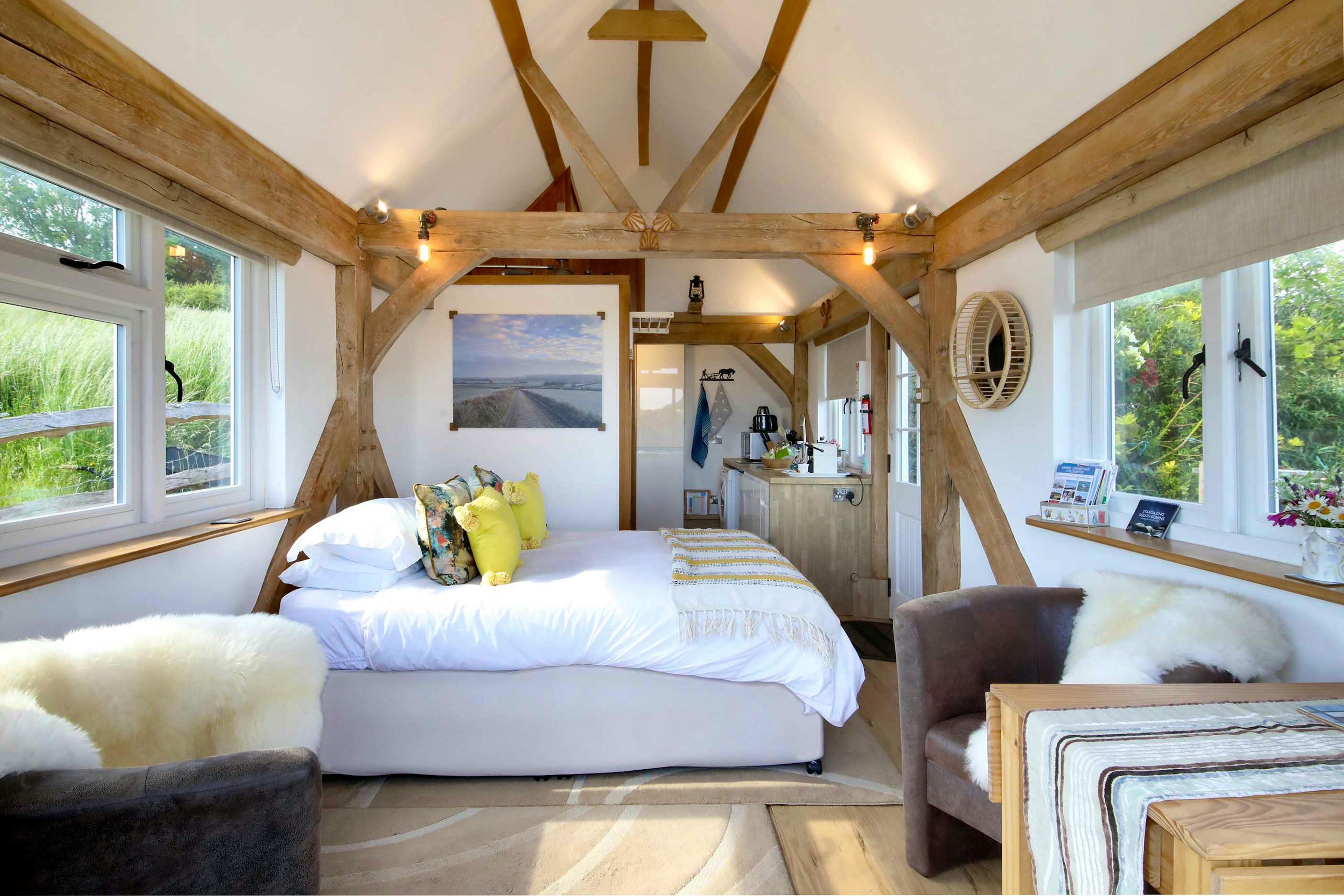 Cosy retreat for two offering incredible views of the River Arun Valley and the South Downs National Park.