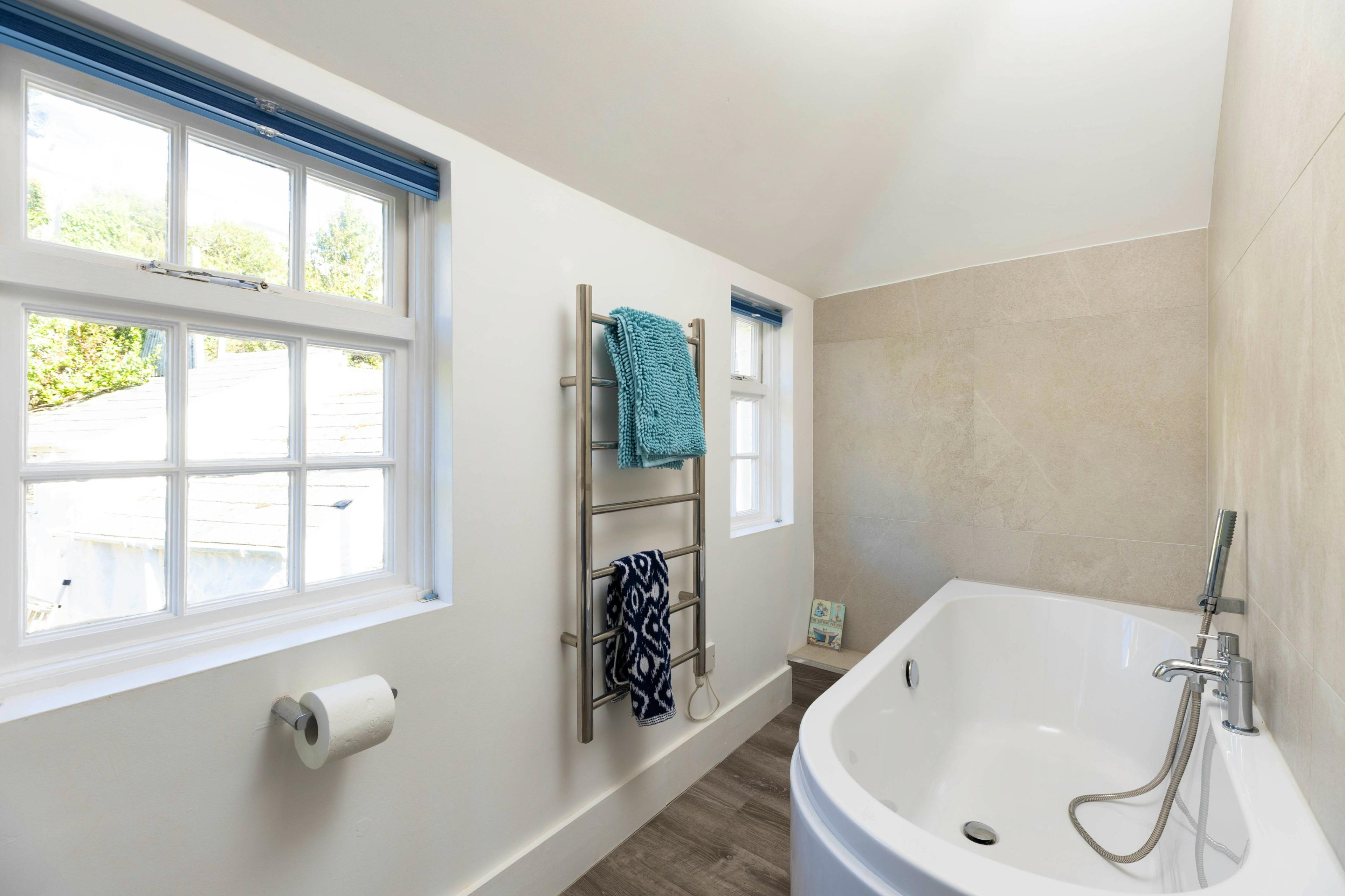 Sink into a deep, dreamy bathtub after a day exploring the coast, then drift off in one of the airy bedrooms with sea views and crisp linens.