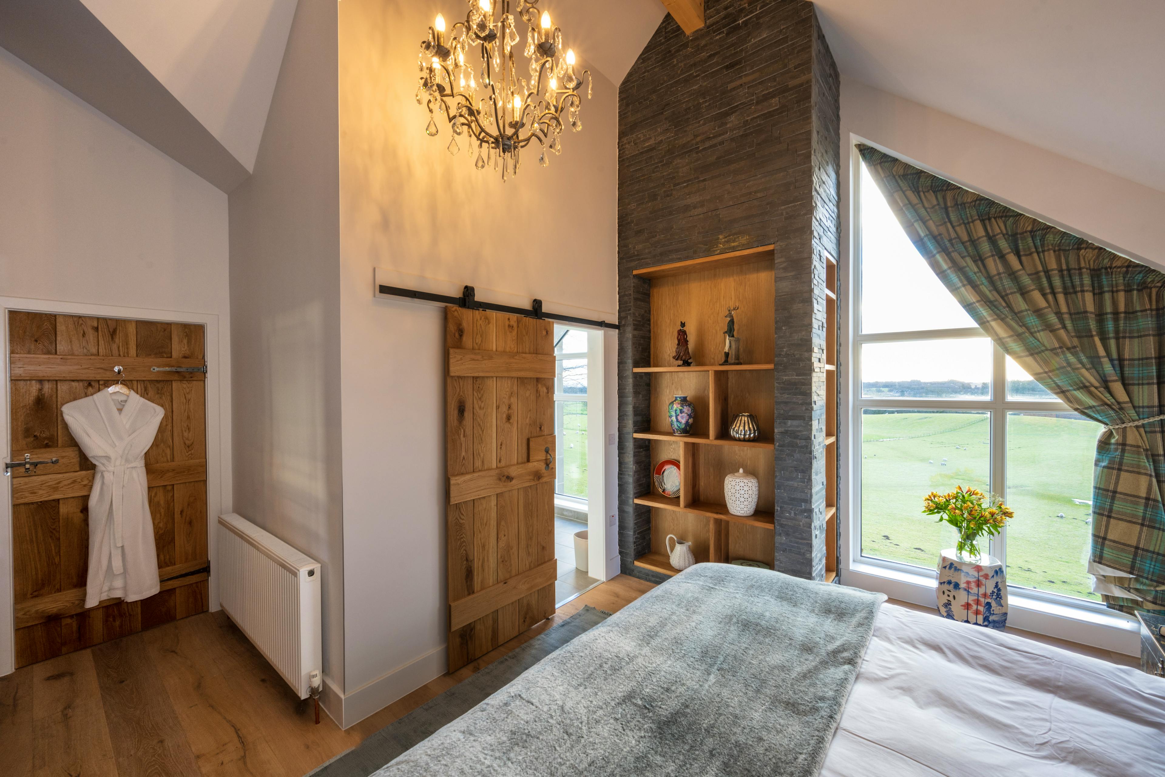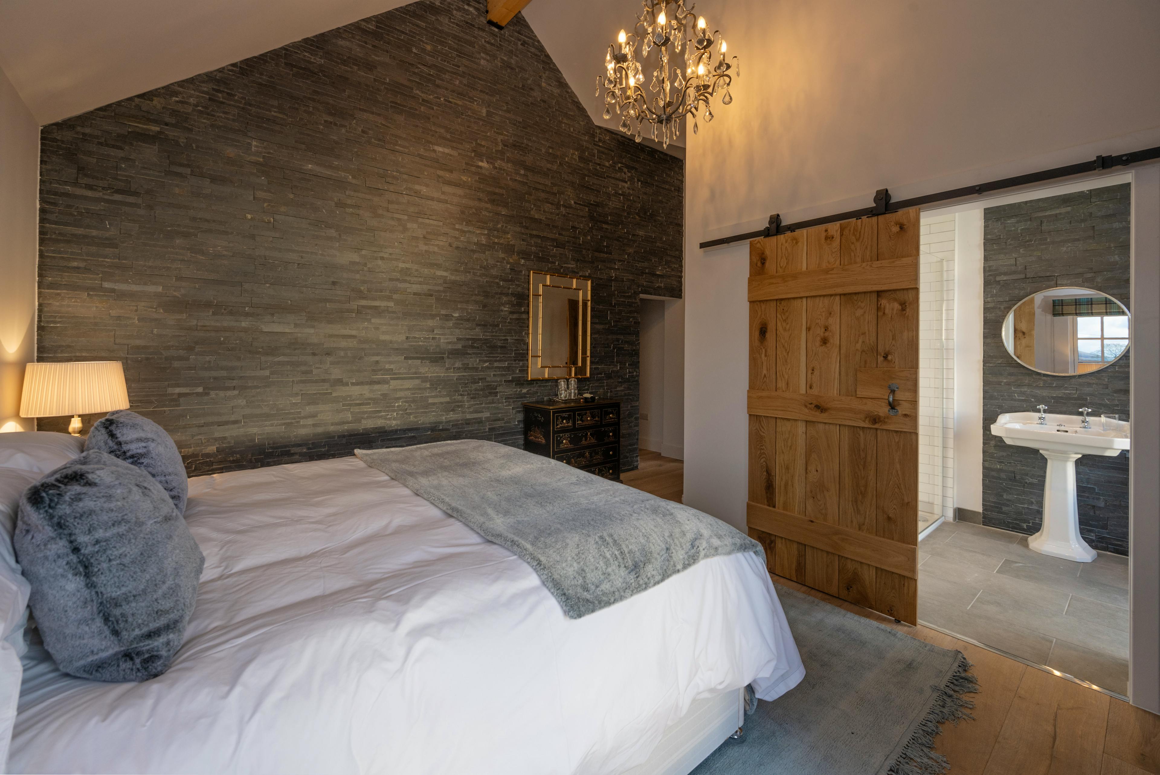 Nestled in the tranquil Perthshire countryside, The Old Farmhouse blends timeless charm with modern elegance, featuring stone walls, timber barn doors and sleek glass banisters.