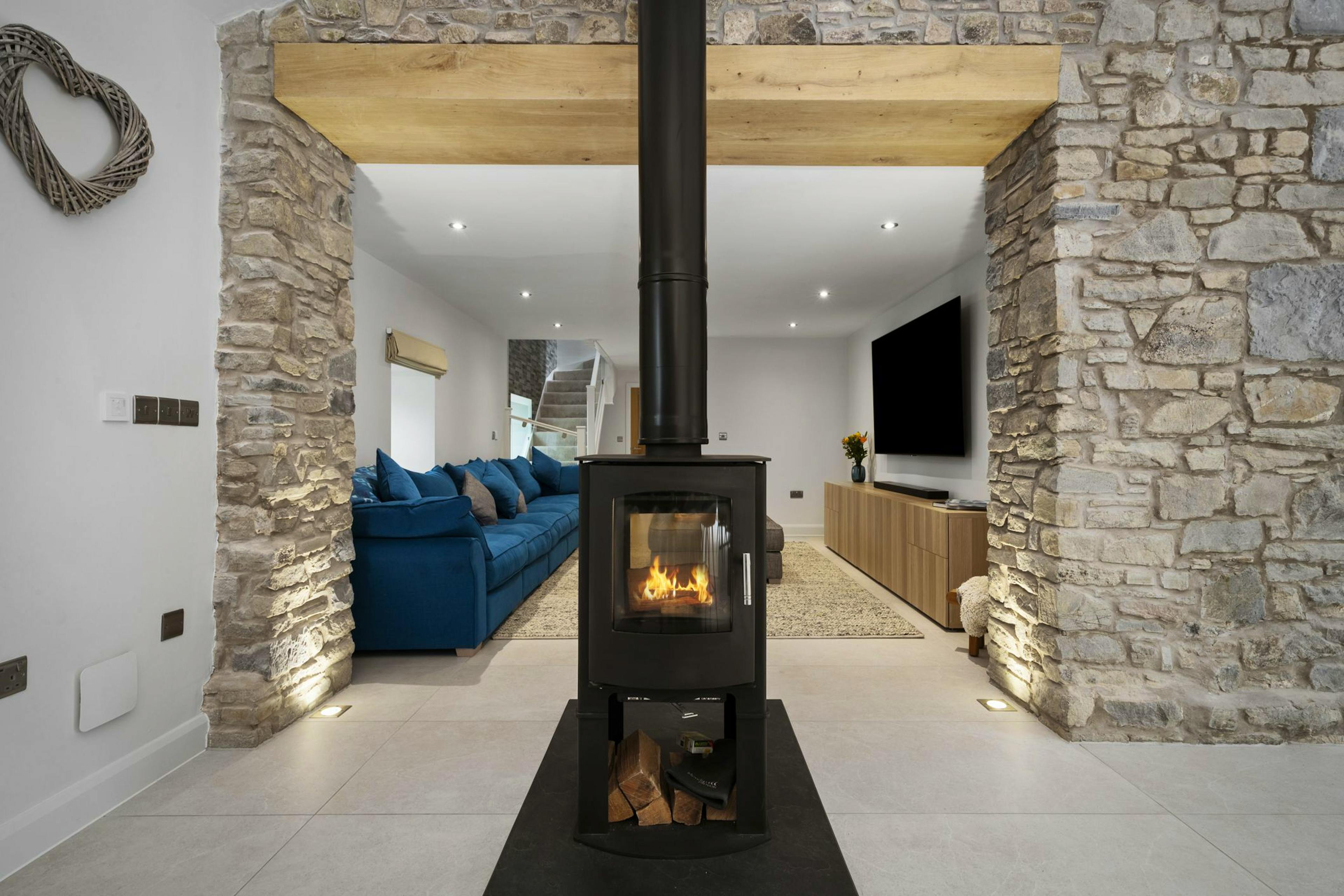 Exposed stonework and timber beams create a cosy atmosphere, enhanced by underfloor heating that keeps your toes warm throughout the property.