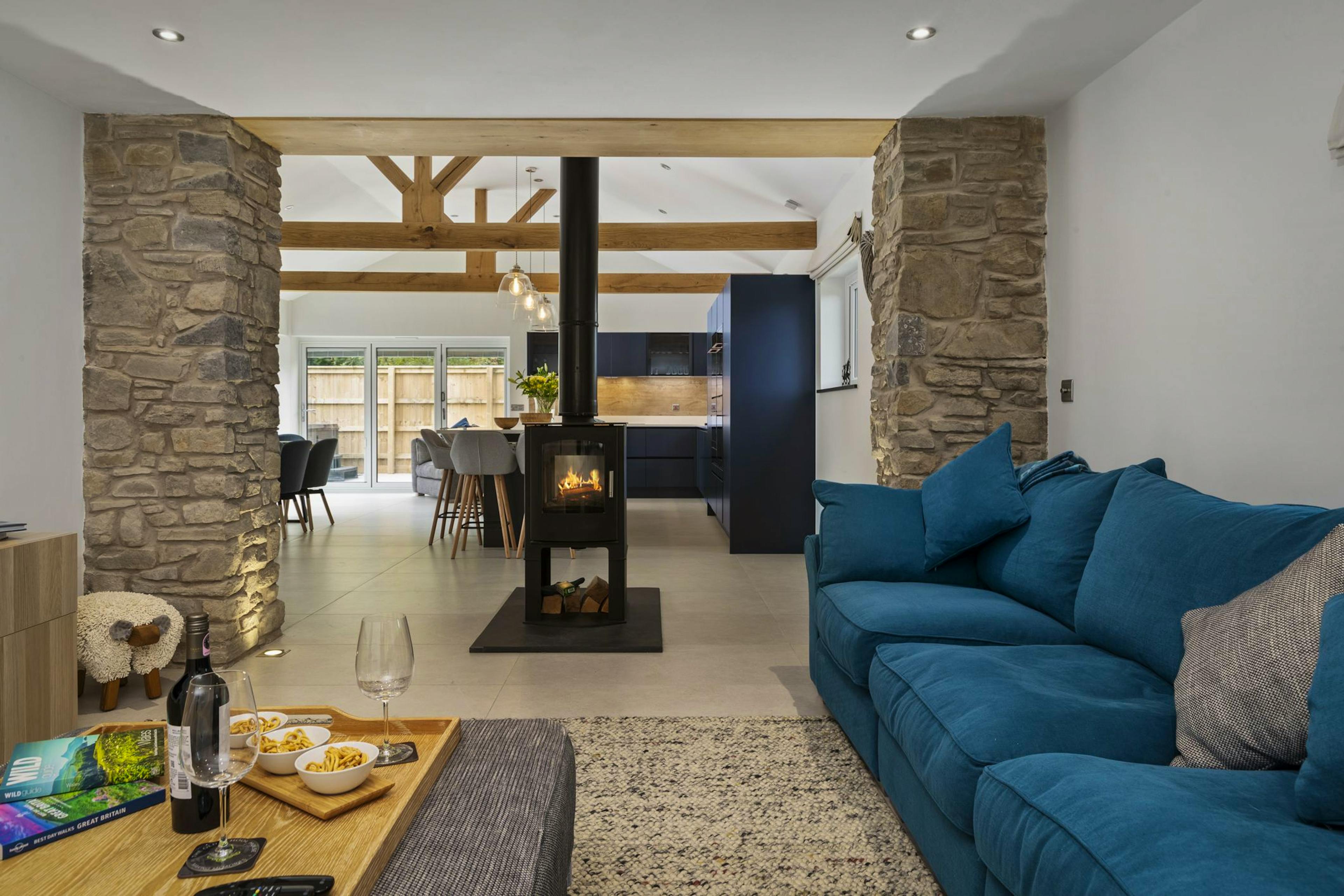 Step into this stunning, luxuriously converted 200-year-old stone barn where rustic charm meets modern comfort and settle in for a relaxing break with loved ones. This amazing home sits in the beautiful Carmarthenshire countryside, offering a wonderful base from which to explore some of South Wale’s most picturesque scenery. Beautiful exposed stone and timber beams create a warm, inviting atmosphere and underfloor heating throughout keeps toes toasty and warm. The open-plan kitchen, complete with a spacious island, is a dream for entertaining. Whip up a delicious feast using the modern appliances whilst your loved ones gather round the island and open a bottle of bubbly. Opposite the contemporary kitchen sits the big dining table that makes grand social dinners a joy. The dining area then leads through the bi-folding doors to the private patio where a hot tub sits, setting the scene for relaxed, memorable evenings. For quiet moments, unwind in the oversize armchair by the patio, or head through to the charming lounge with its wood-burning fireplace, 83-inch Smart TV and plush seating. This is a great spot for a movie night or box set marathon after a day out wandering the Carmarthenshire countryside. When the weather’s warm, step outside and enjoy the wraparound terrace, small lawn and seating for alfresco dining. This is a lovely spot to take a morning coffee when the weather’s warm or enjoy an evening tipple as your loved ones hop into the hot tub. As night falls, there are four beautiful bedrooms, one of which sits on the ground floor for those with mobility issues. All of the bedrooms are supremely comfortable and there is one super-king room, two king size rooms and one twin for added flexibility. The two king rooms have ensuite bathrooms for added privacy, whilst the shared family bathroom is a luxurious affair with a wonderful free-standing bathtub. Nestled just off the A48 in picturesque Carmarthenshire, The Old School House is a perfect base for exploring West Wales. Enjoy the rural charm while being just a mile from the village of Llanddarog, featuring a shop, Post Office and two inviting pubs, The Butchers Arms and The White Hart. Don't miss the award-winning restaurant Y Polyn, also nearby. The stunning National Botanic Gardens of Wales, complete with a Bird of Prey Centre, is a mile-and-a-half walk away. From breathtaking beaches to ancient castles, every corner of West Wales is easily accessible from this delightful retreat.