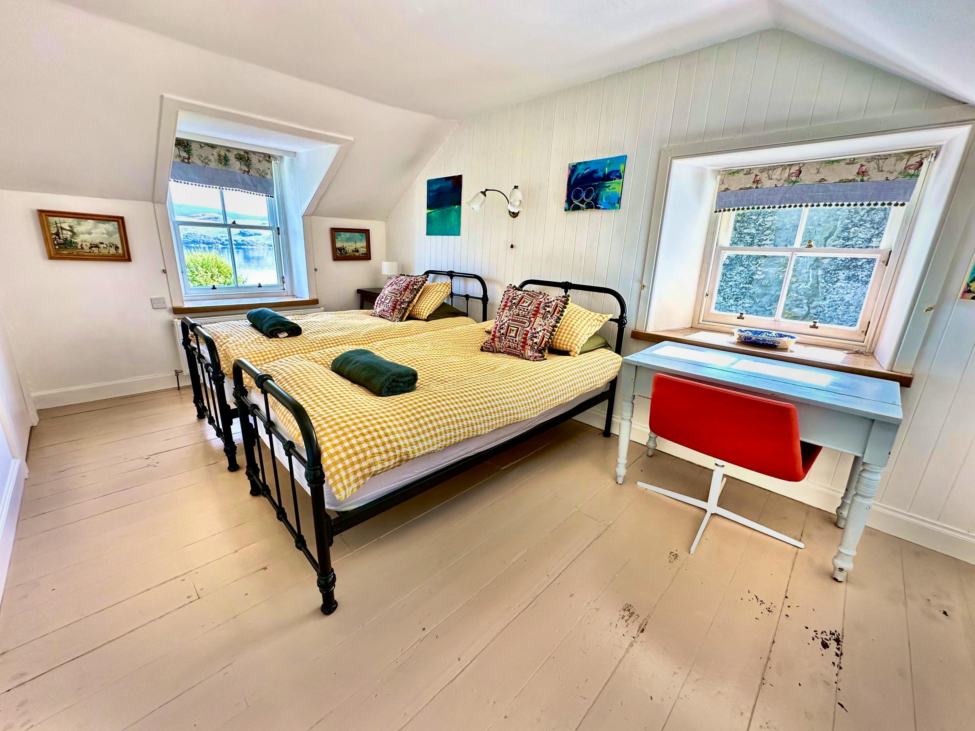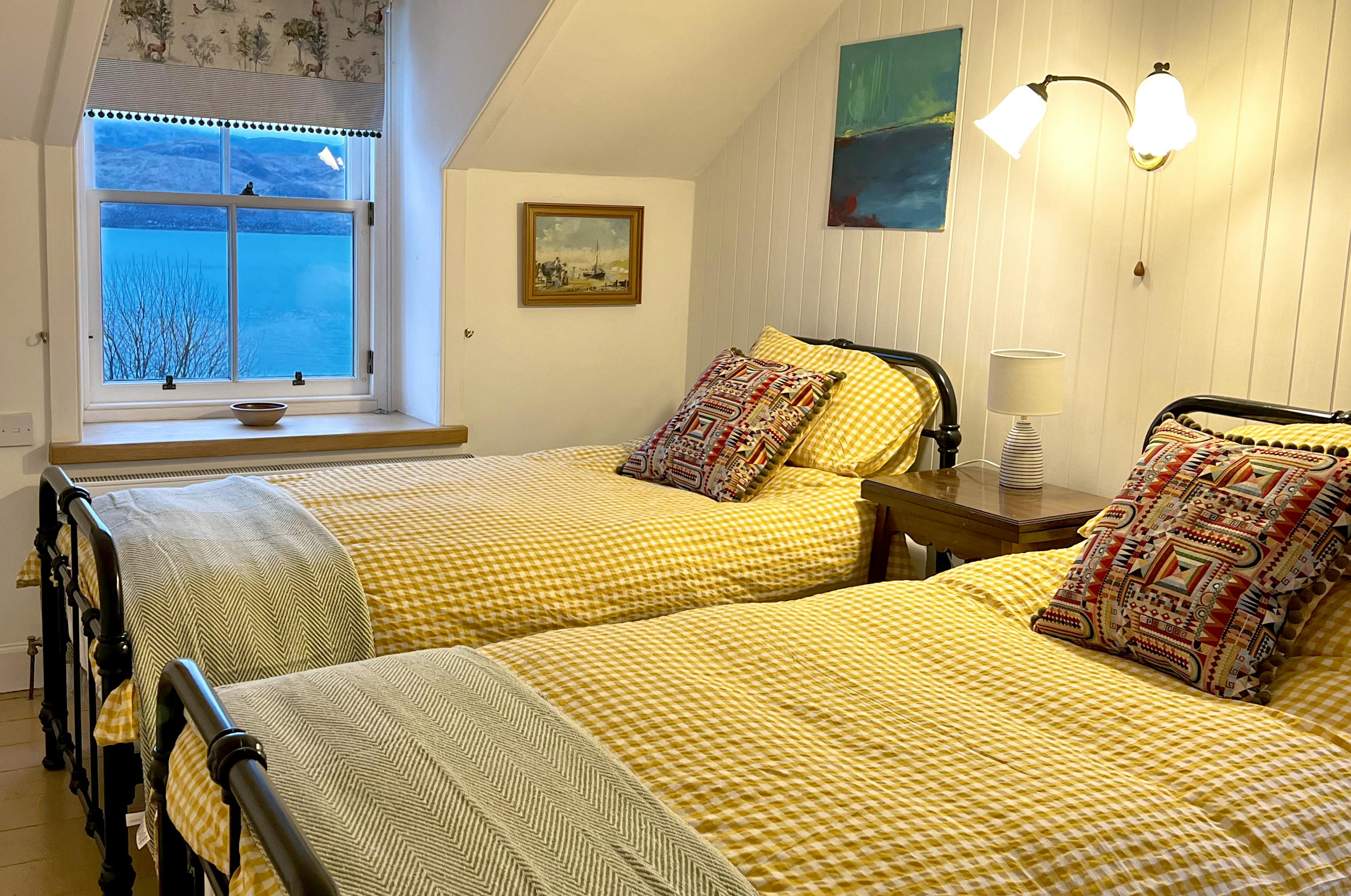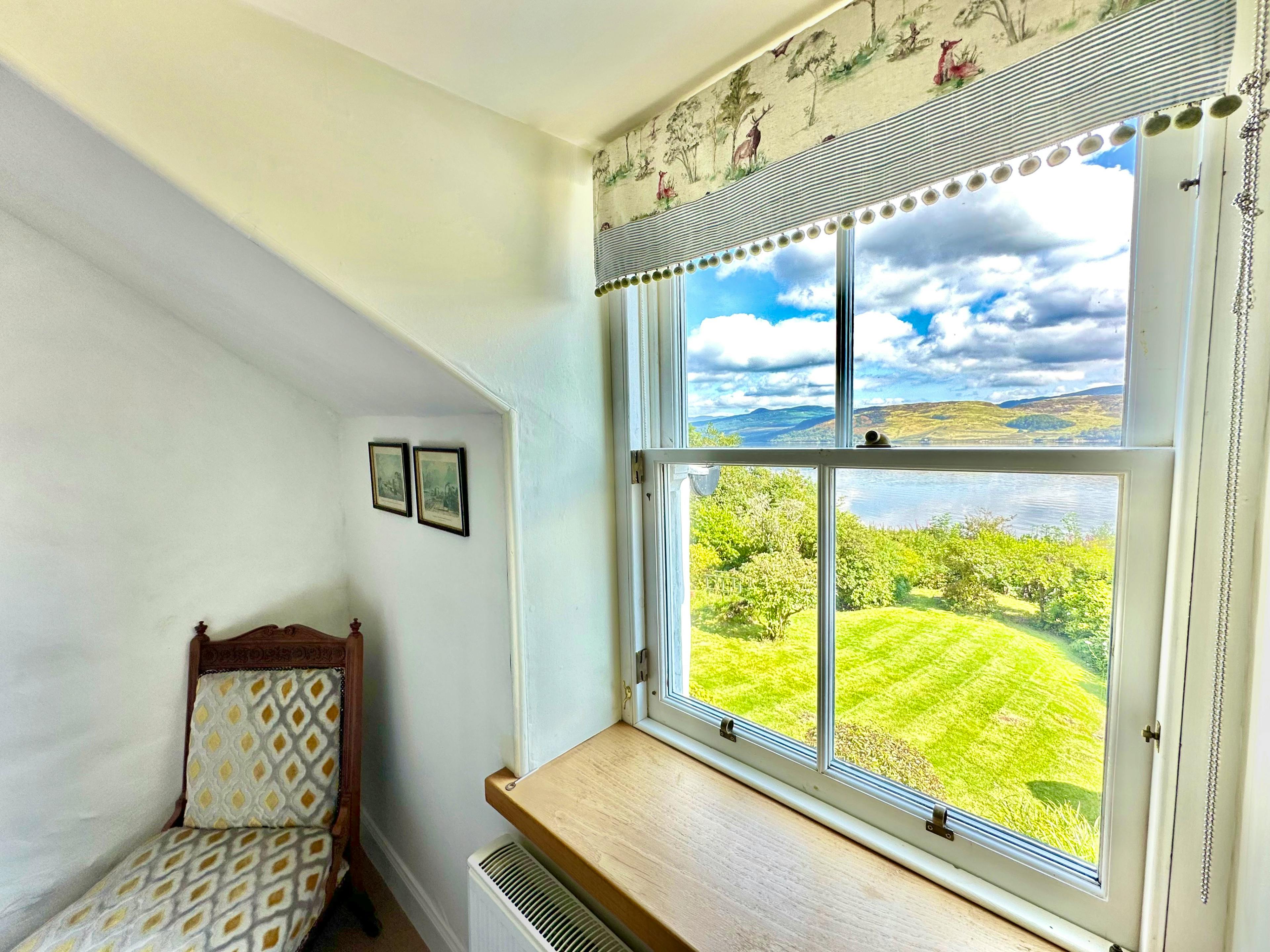 Three upstairs bedrooms with loch views, including two king size rooms and a twin, plus a roll top bath for indulgent soaks.