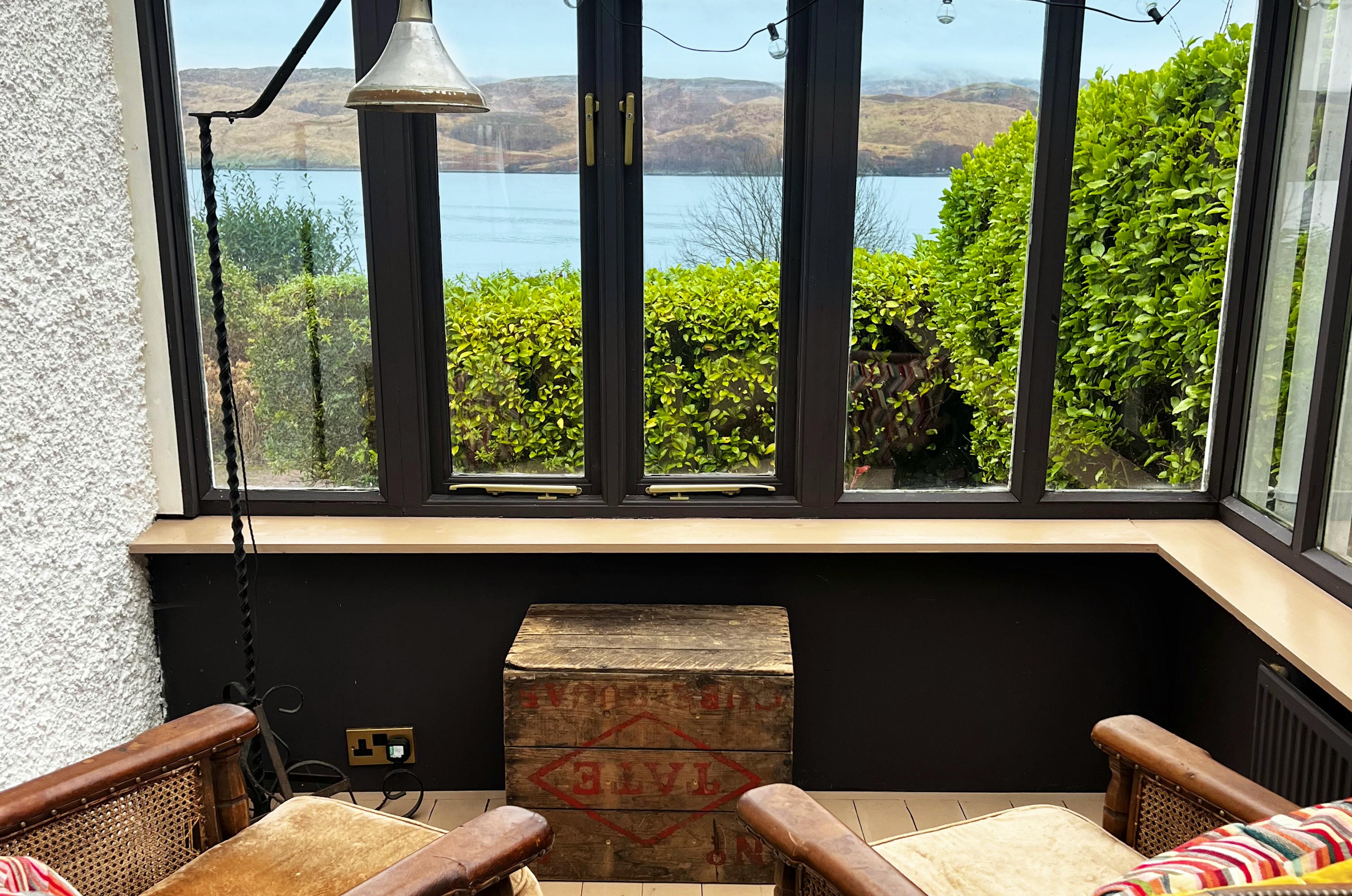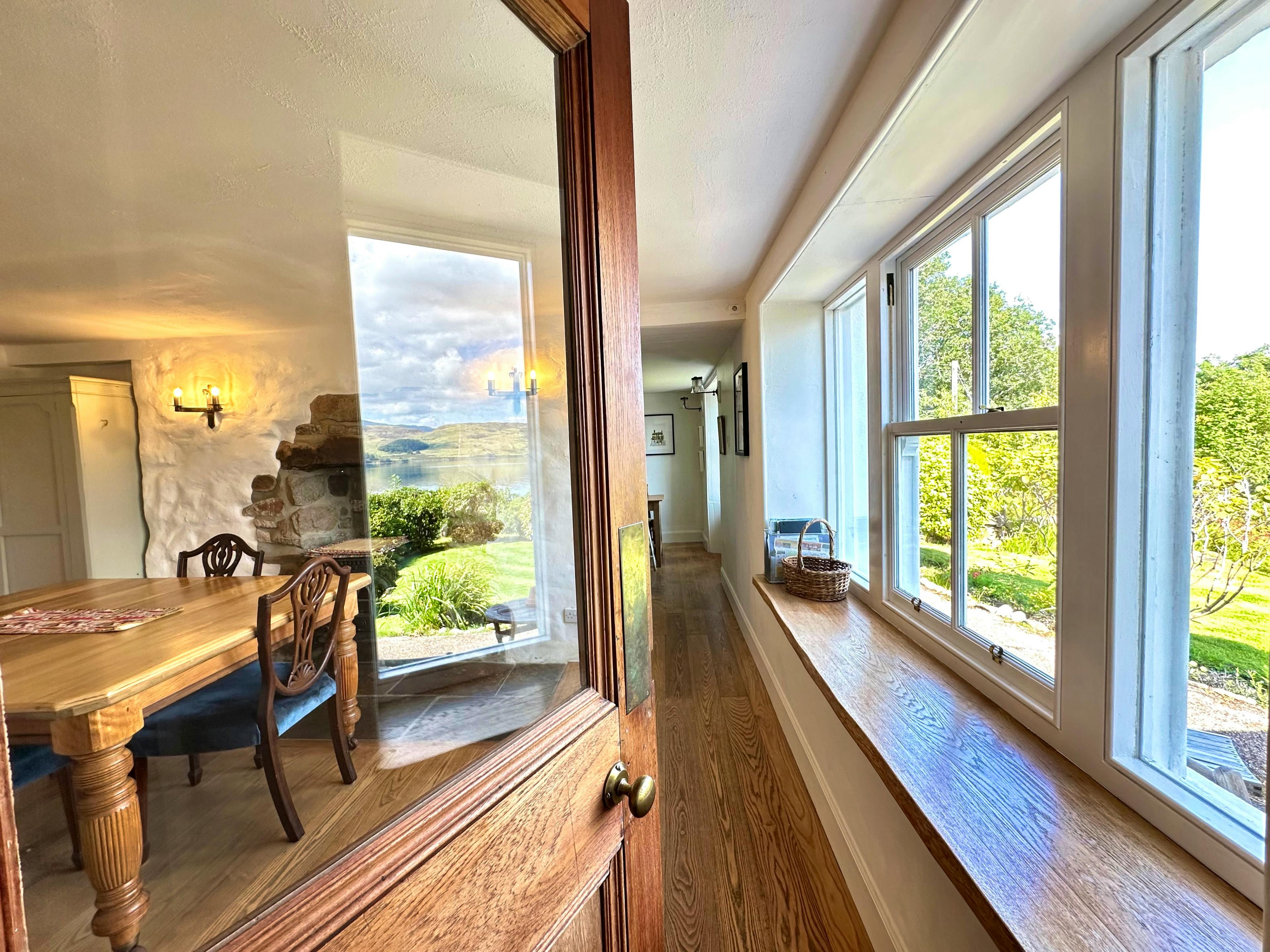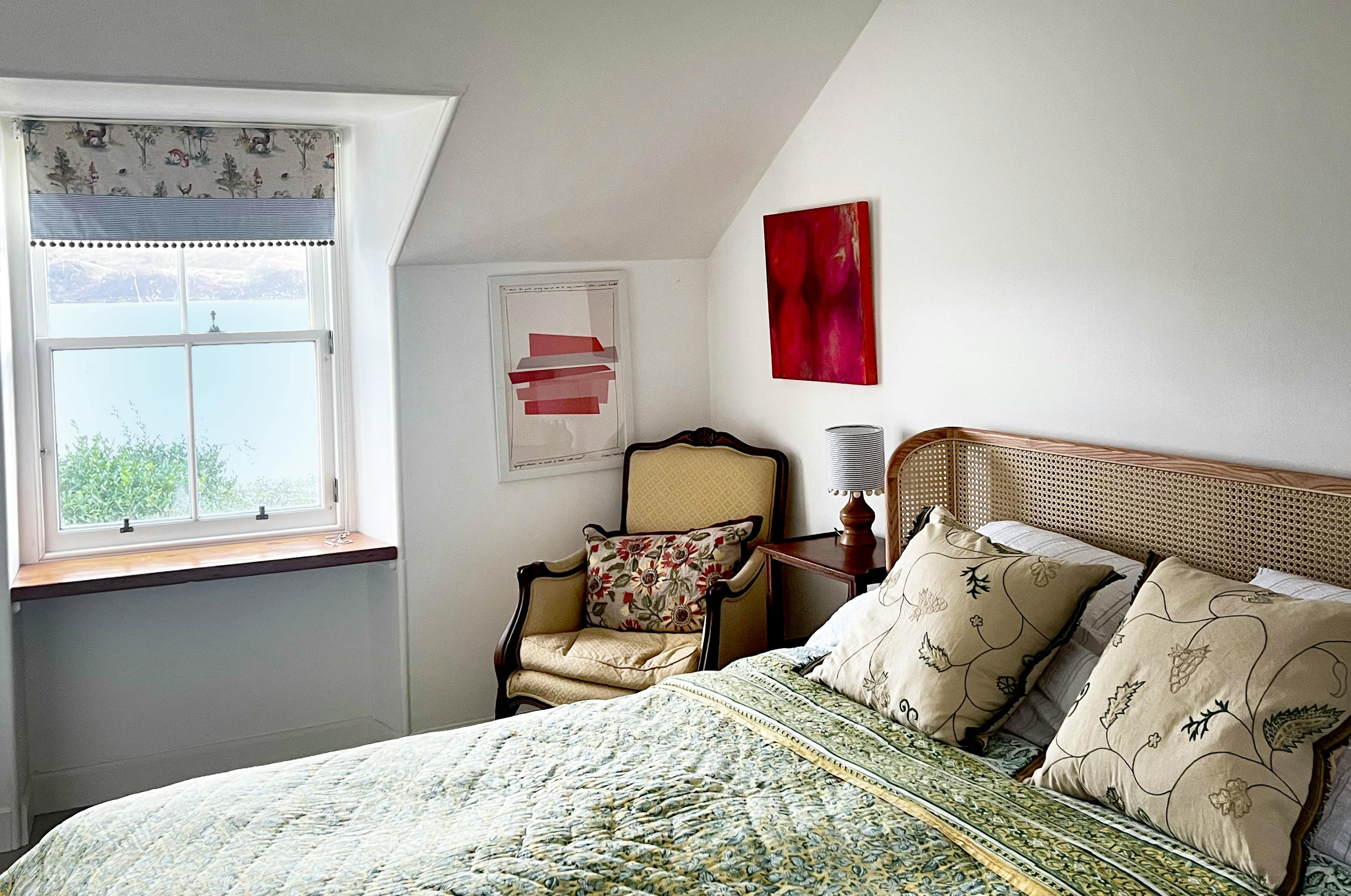 A detached former schoolhouse set in around an acre, with uninterrupted views across Loch Fyne and space to truly switch off.