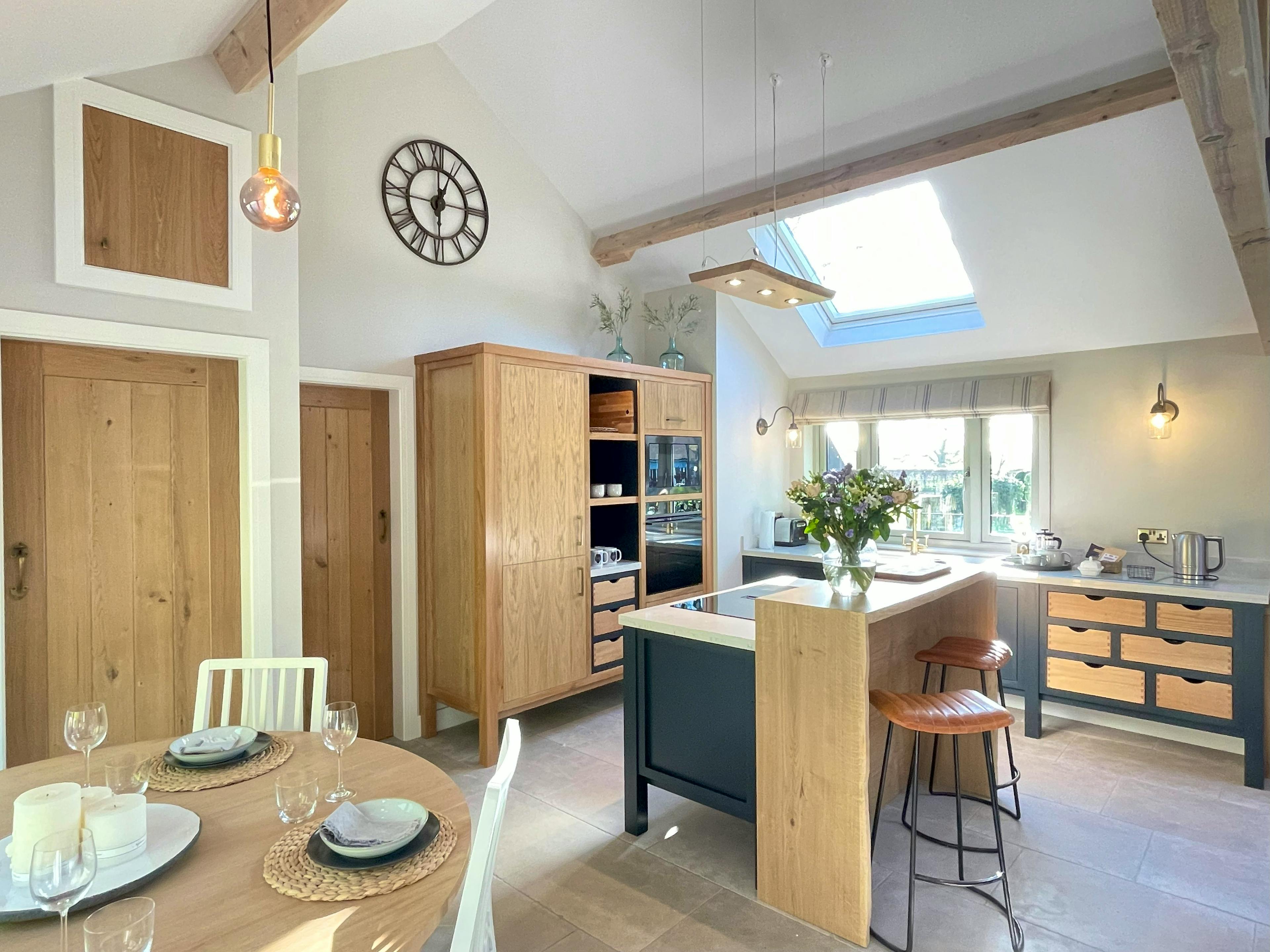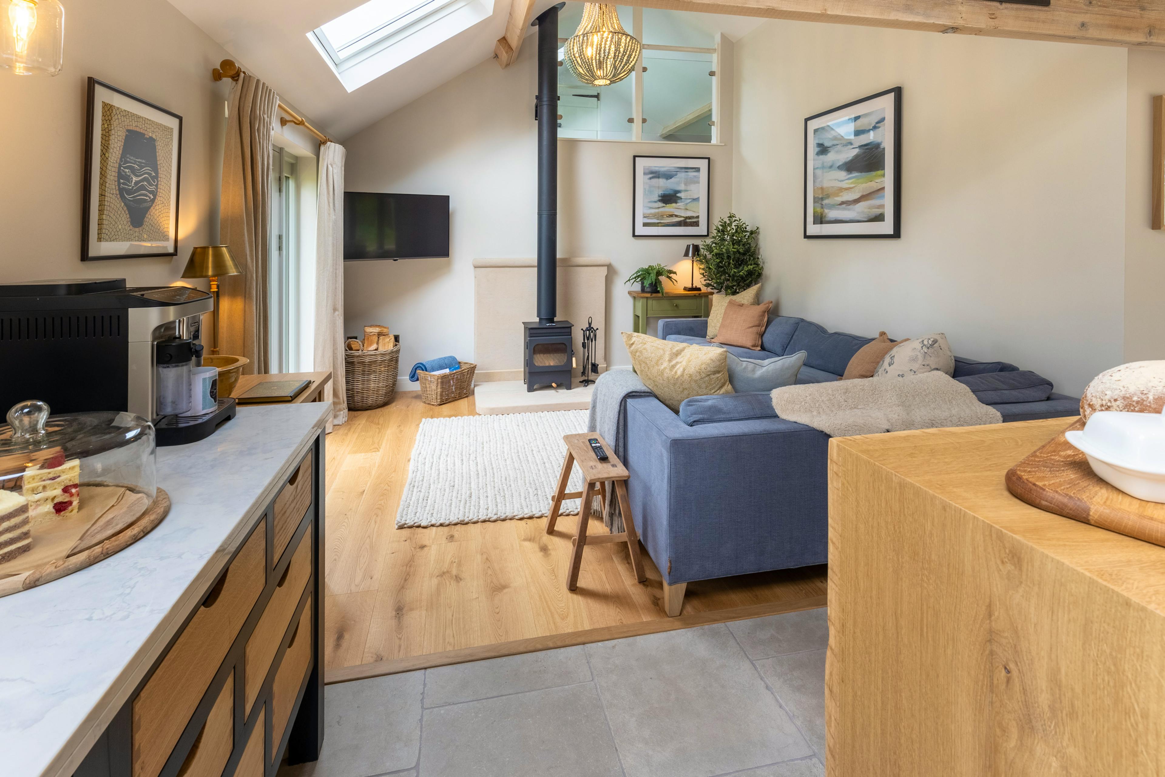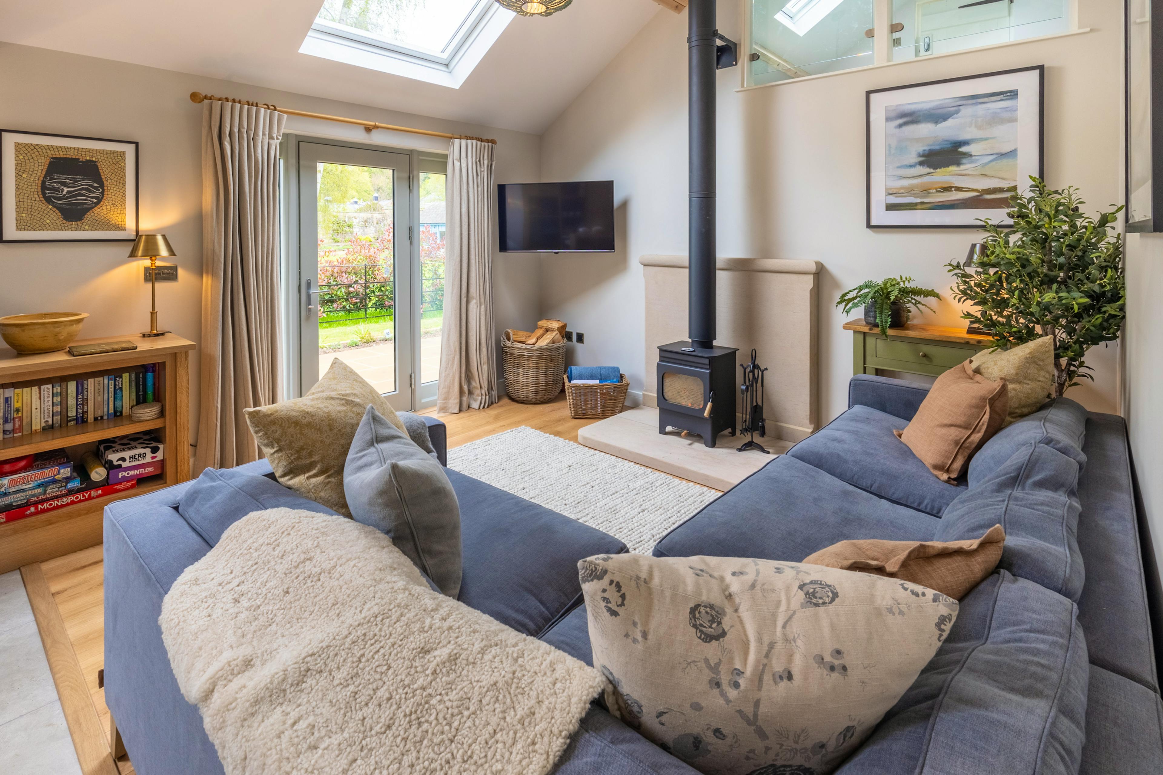 Light the log burner and get cosy on the L-shaped sofa in front of the smart TV.
