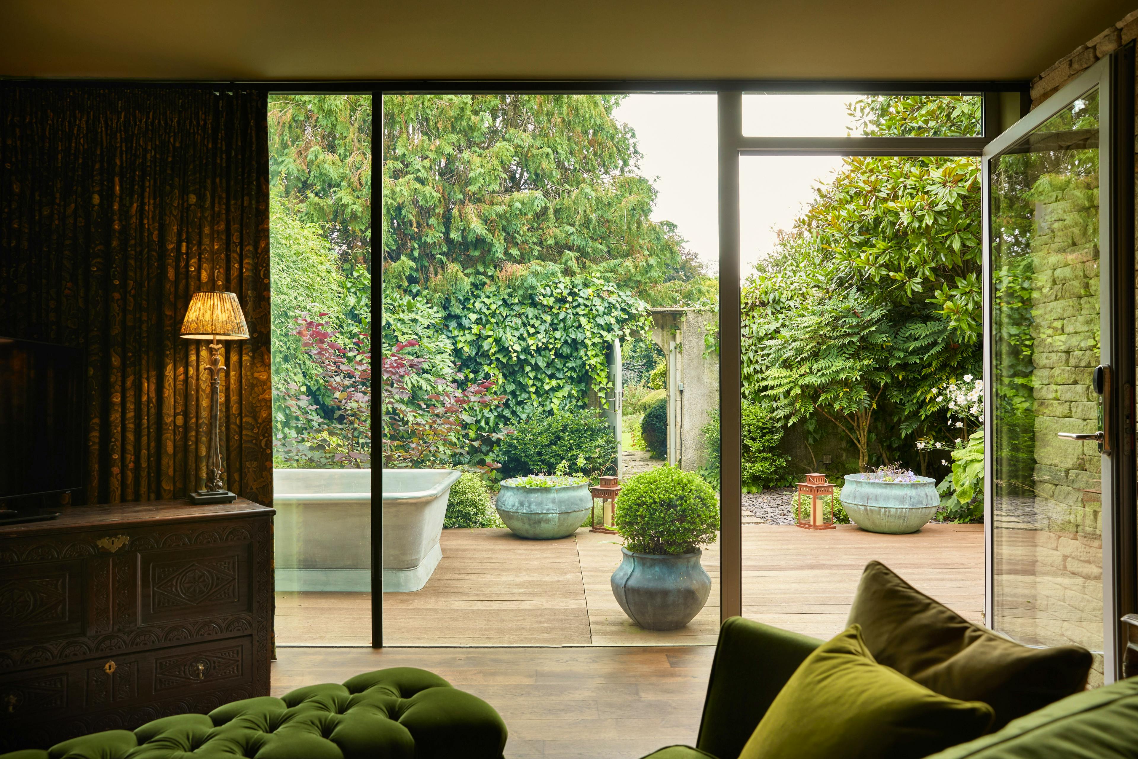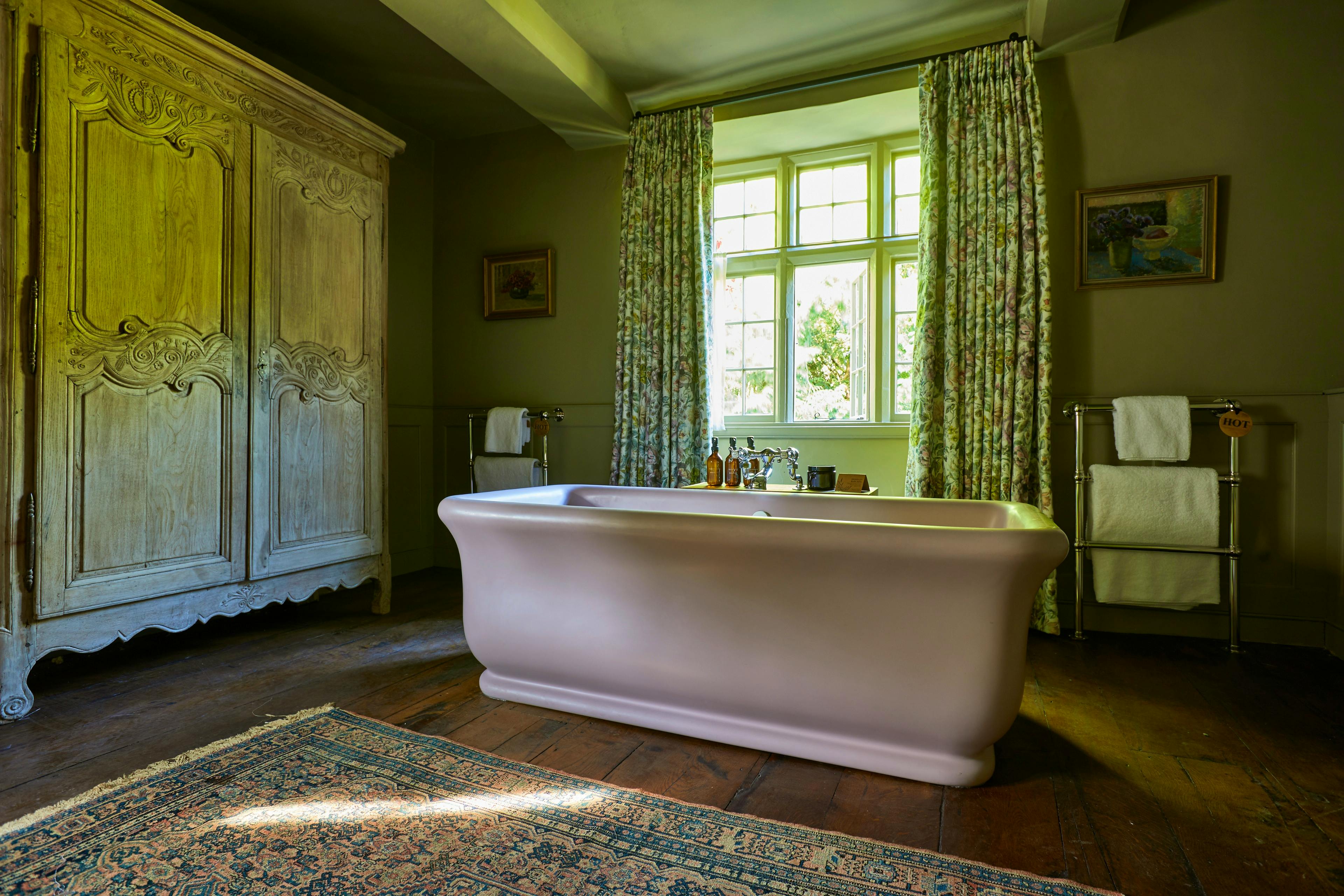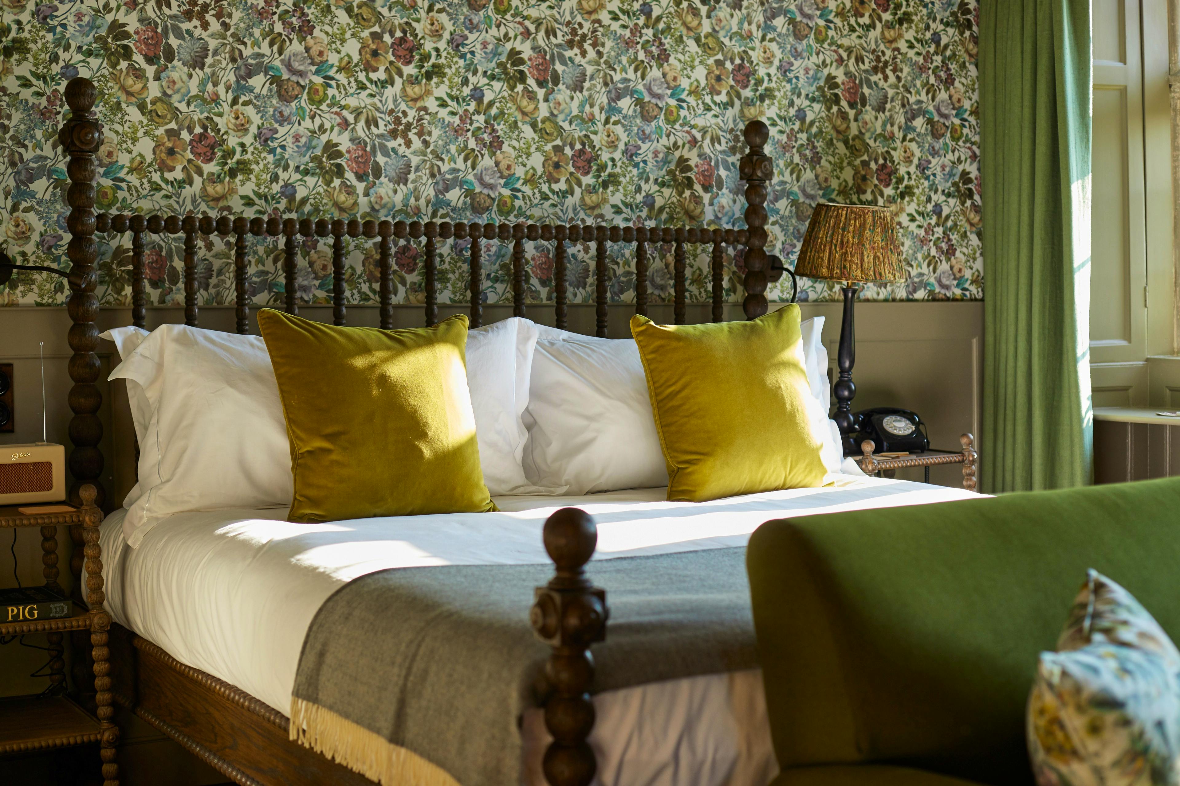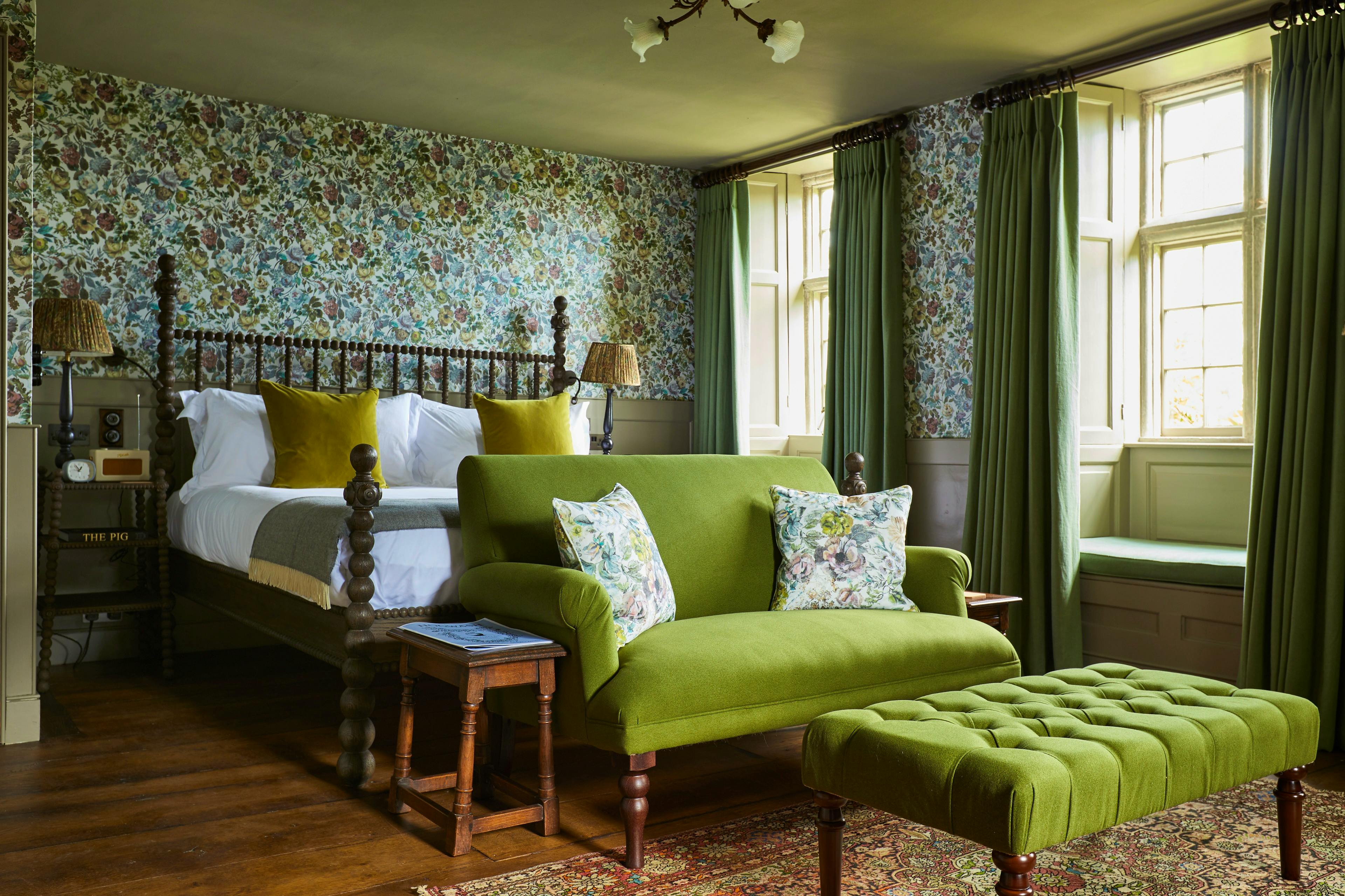 Rooms feature roll-top baths, reclaimed materials, private terraces and countryside views – all wrapped in soft florals, rich textures and THE PIG’s unmistakable cosy elegance.