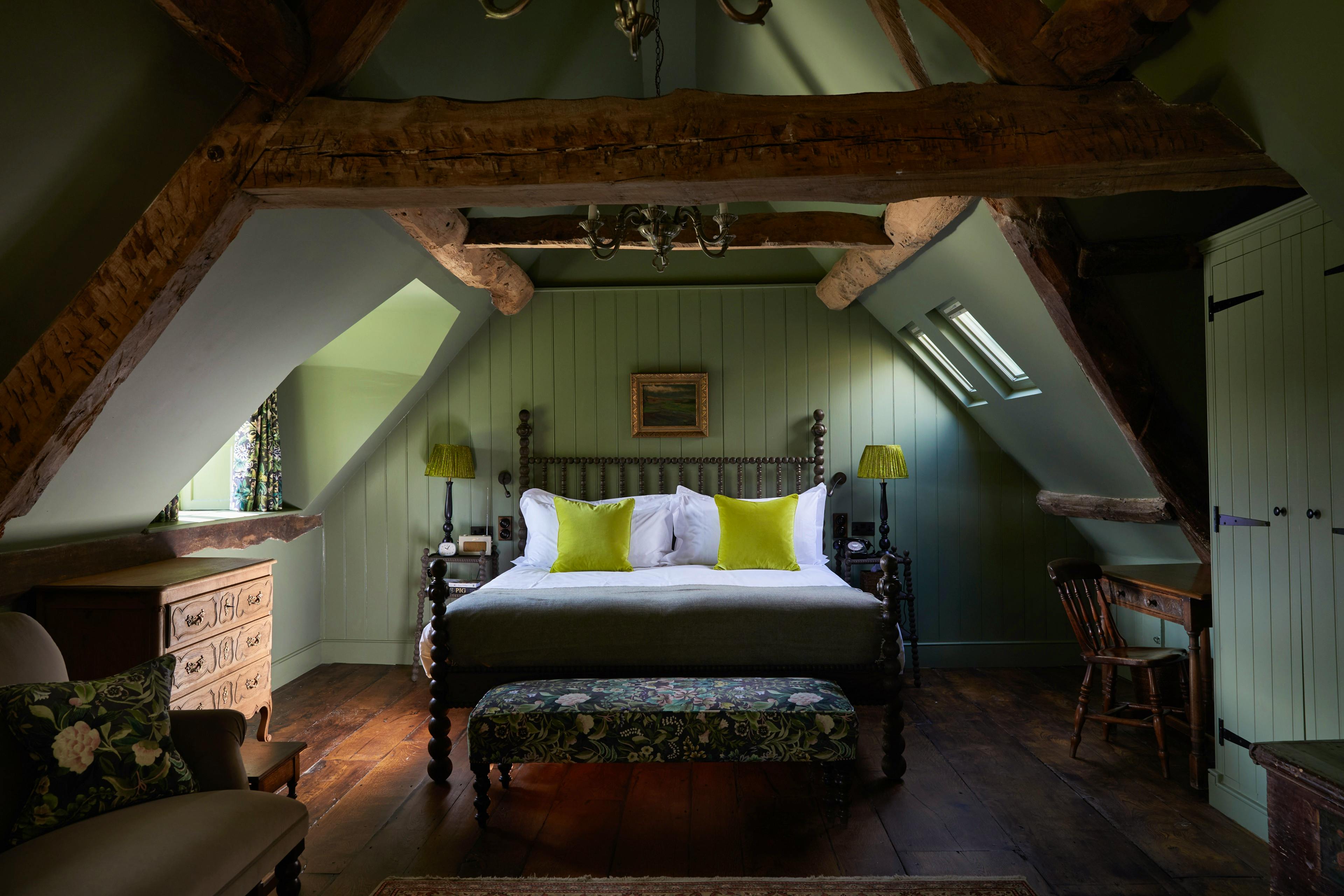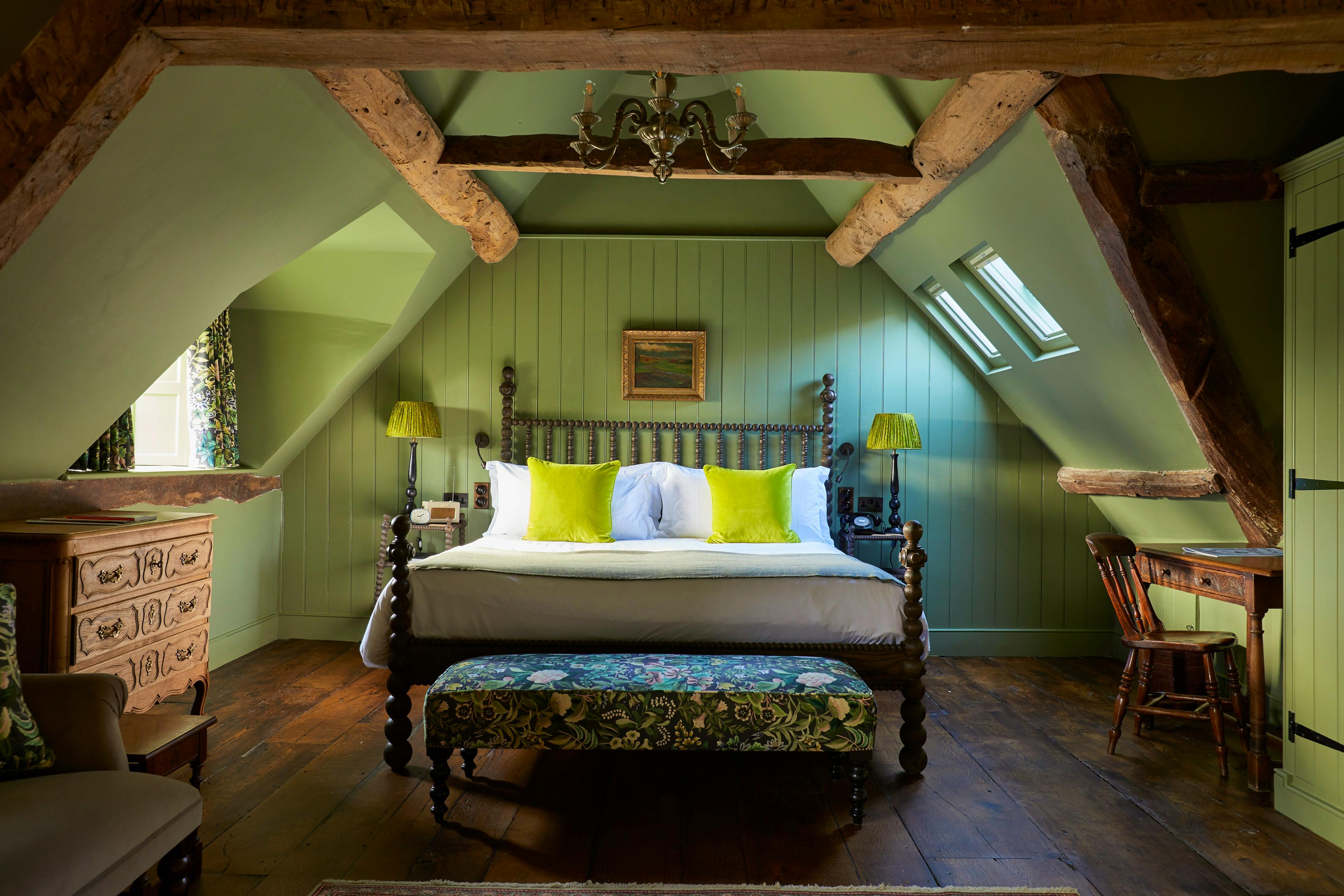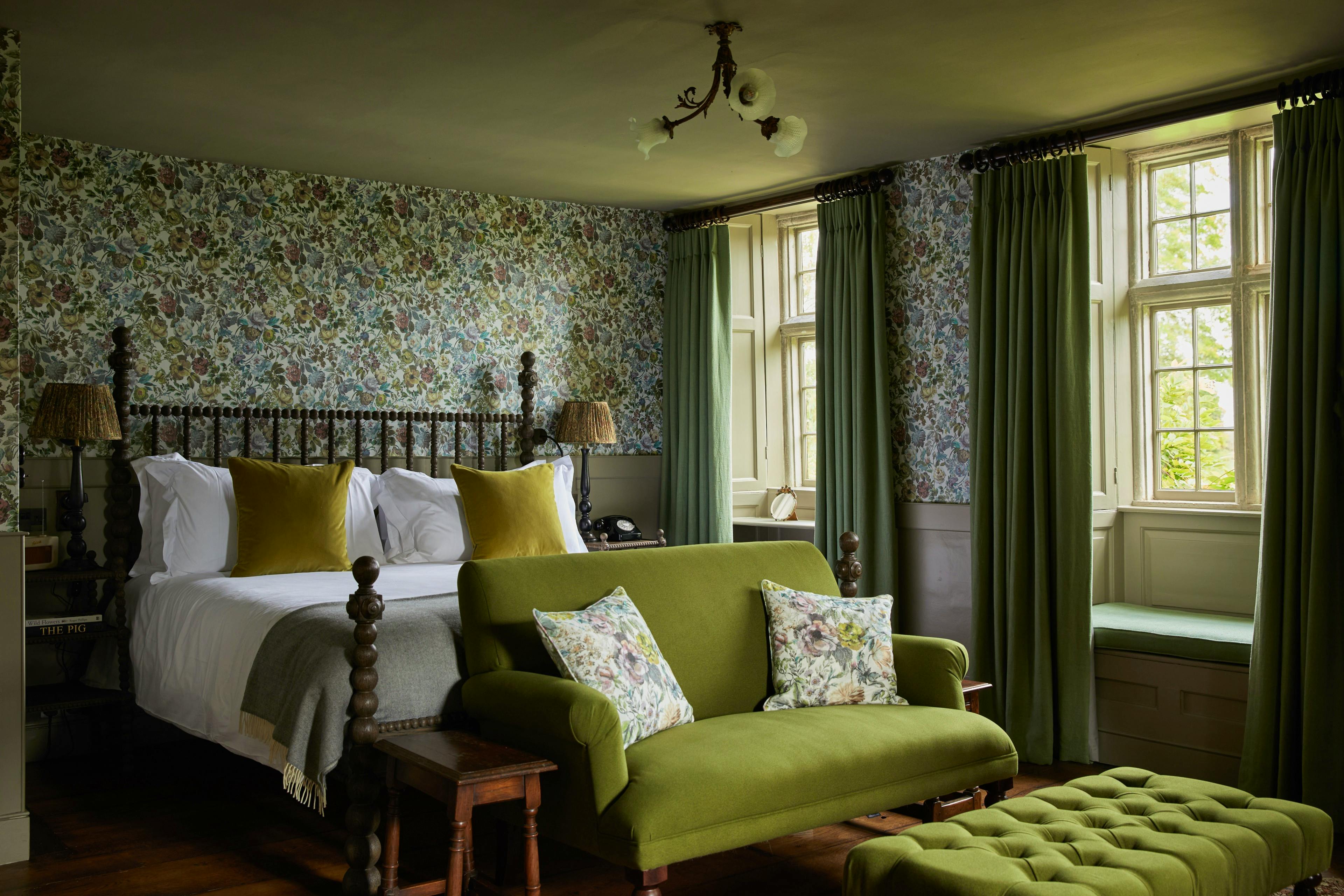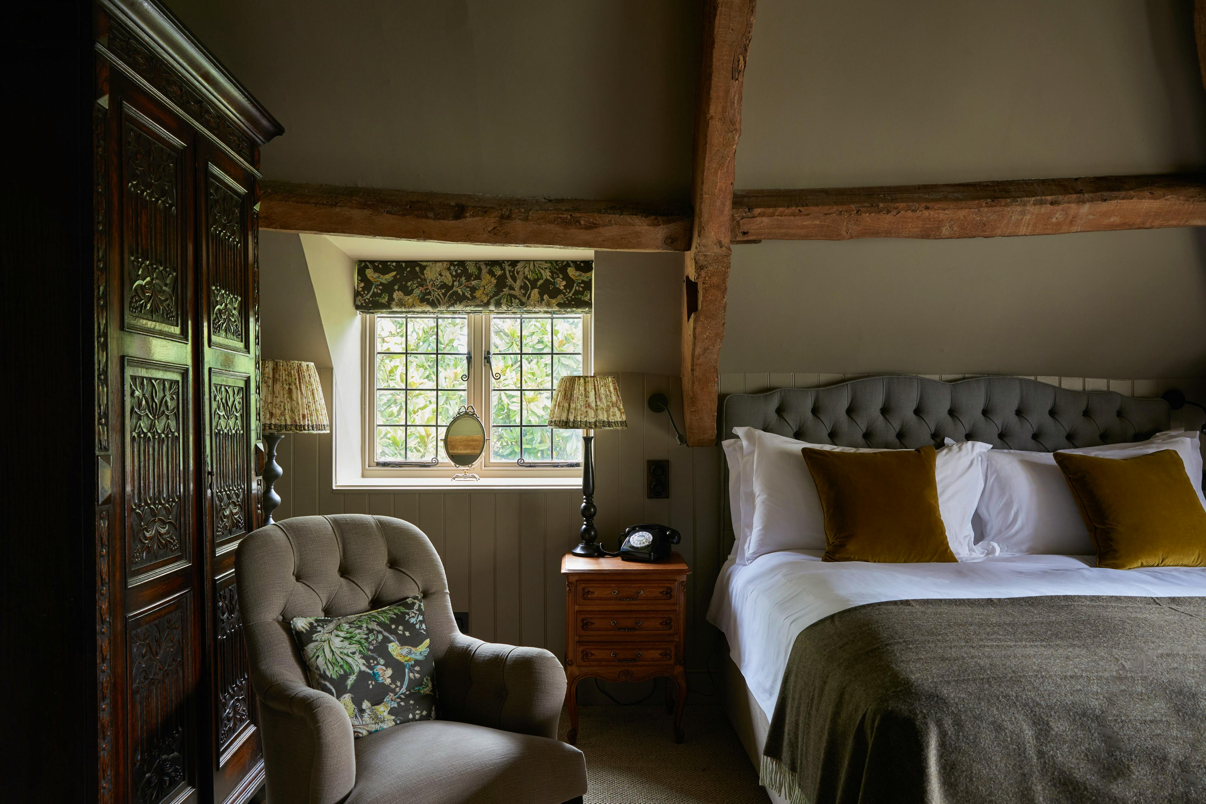 Spacious and character-filled bedrooms are spread across the honey-stone manor, the Stableyard and secluded garden spots, many with views of the Rosemary Verey-designed Arts and Crafts gardens.
