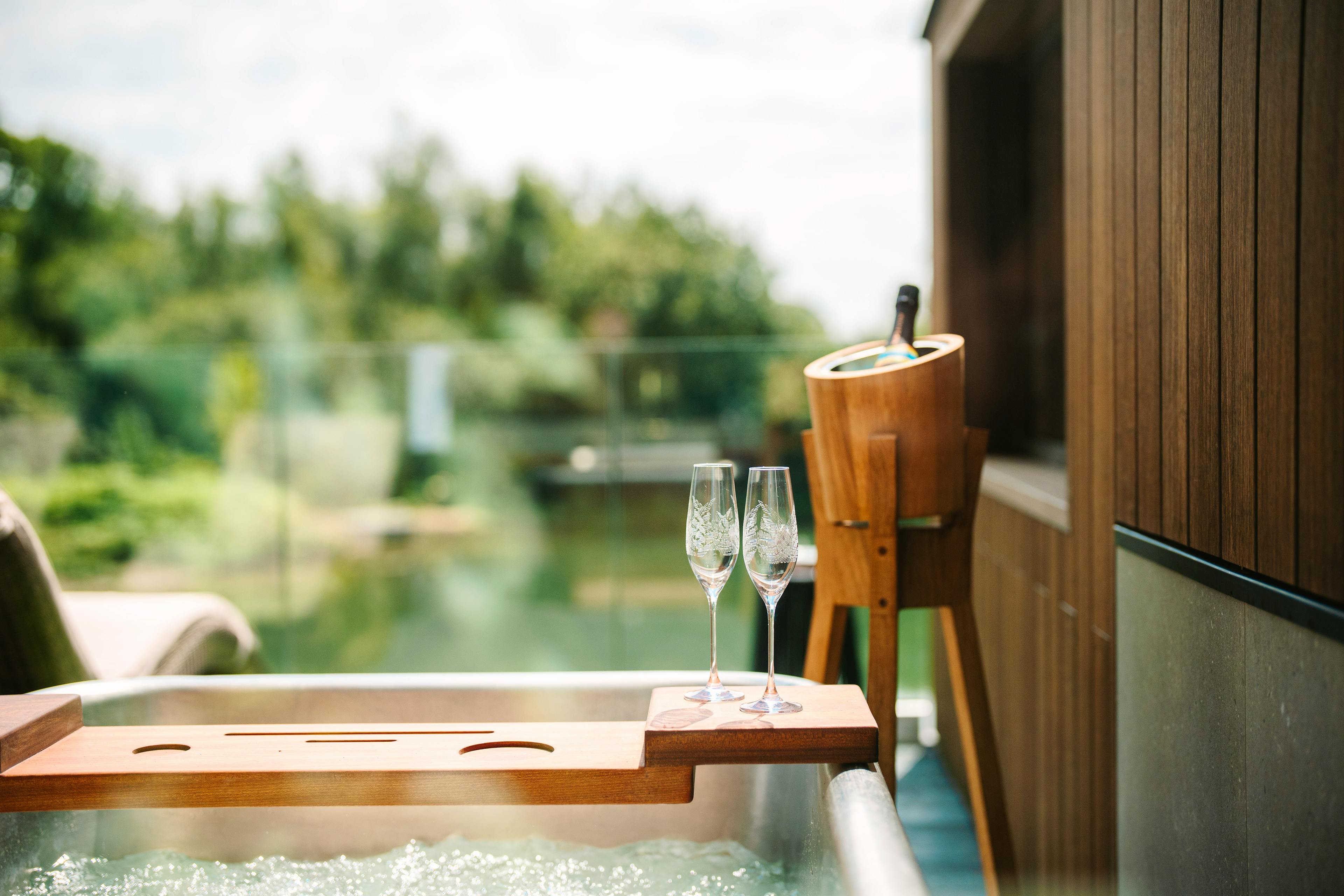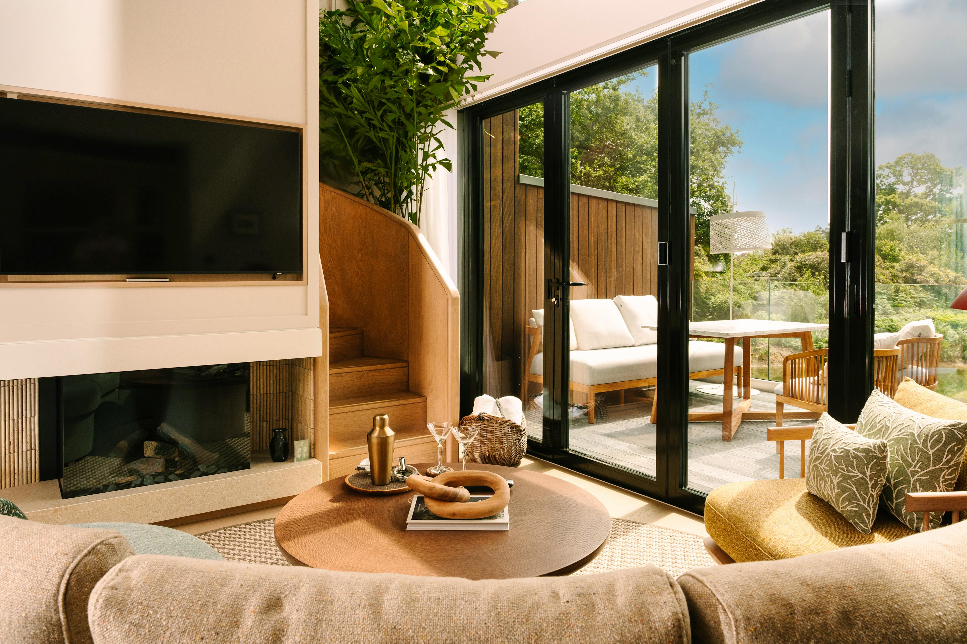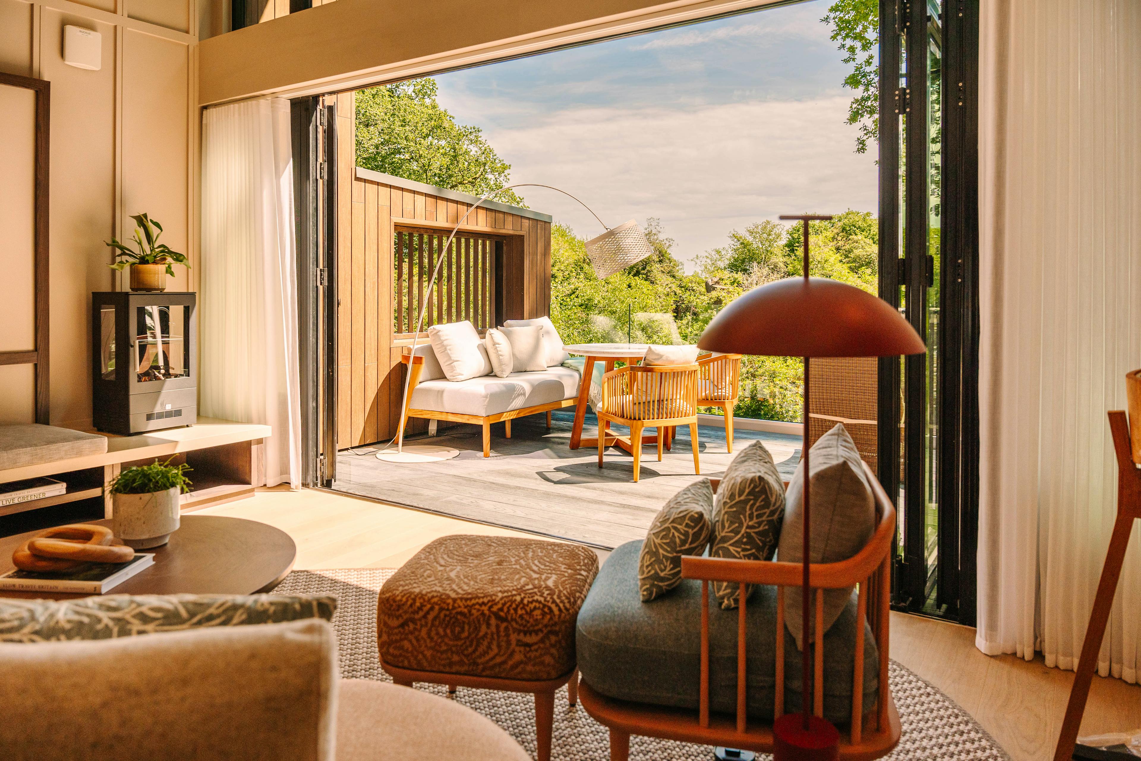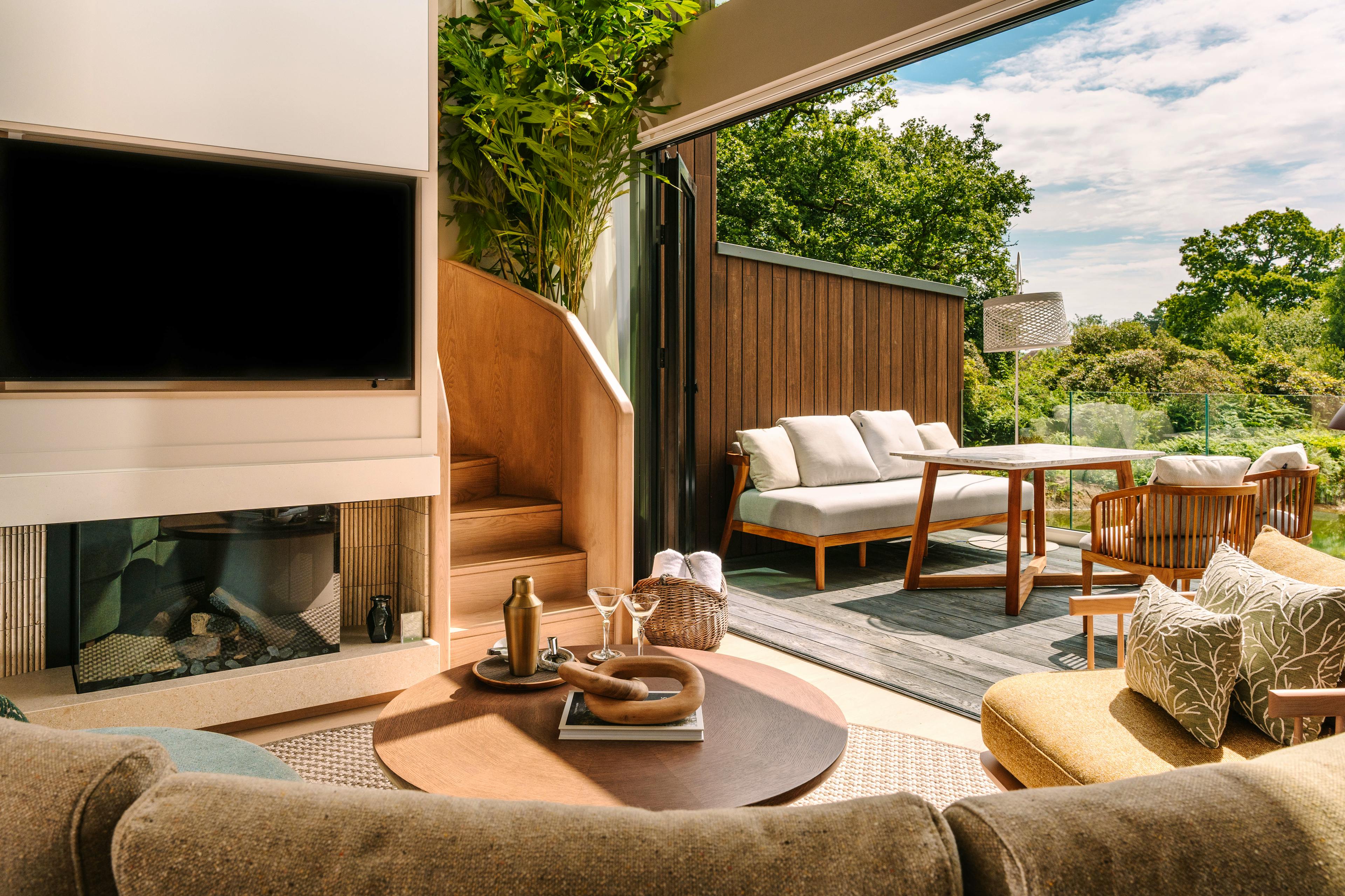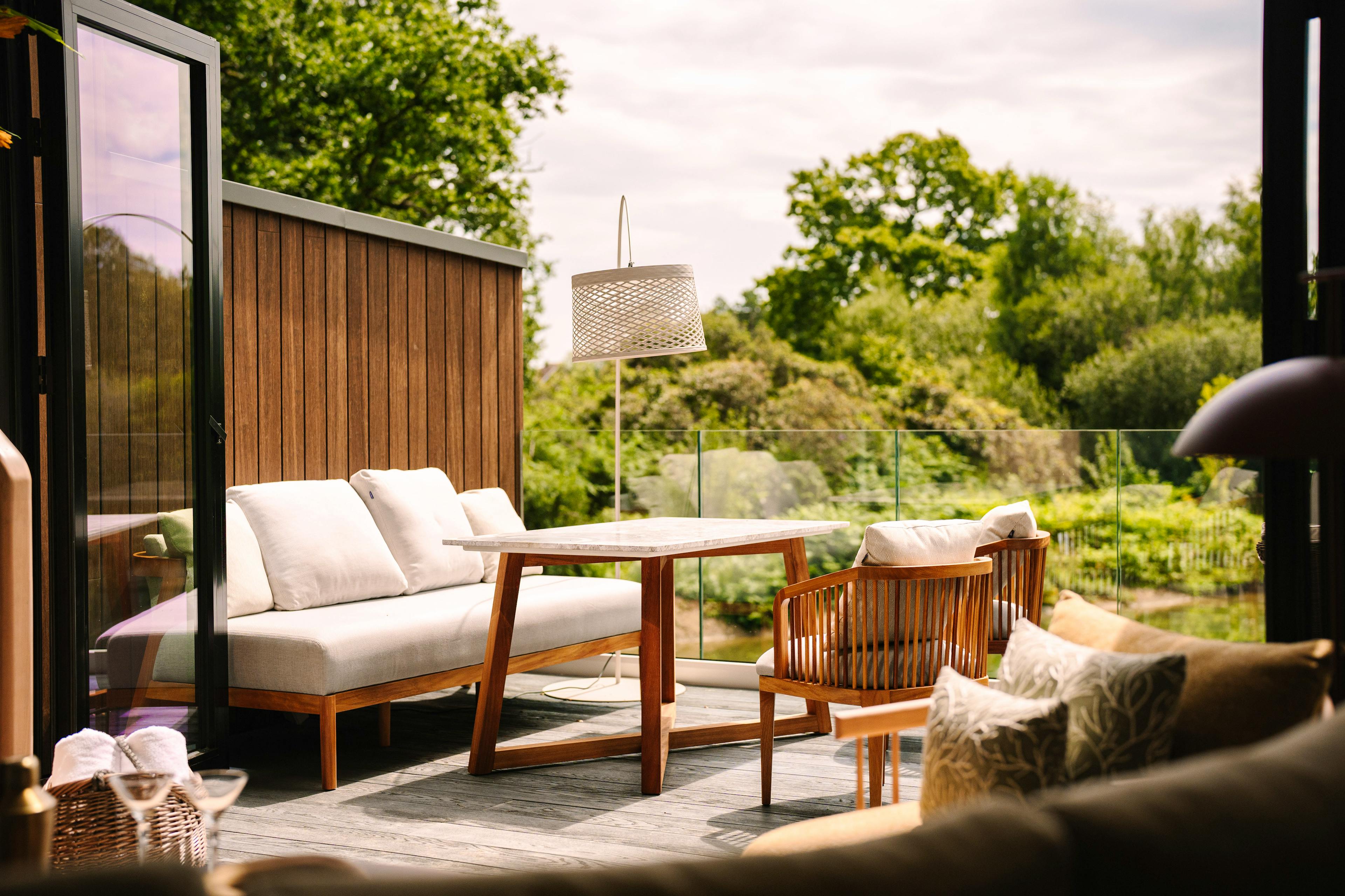 A collection of luxurious, modern lodges on the edge of a lake in West Sussex with outdoor bath tubs, infra red saunas, modern amenities and amazing views.