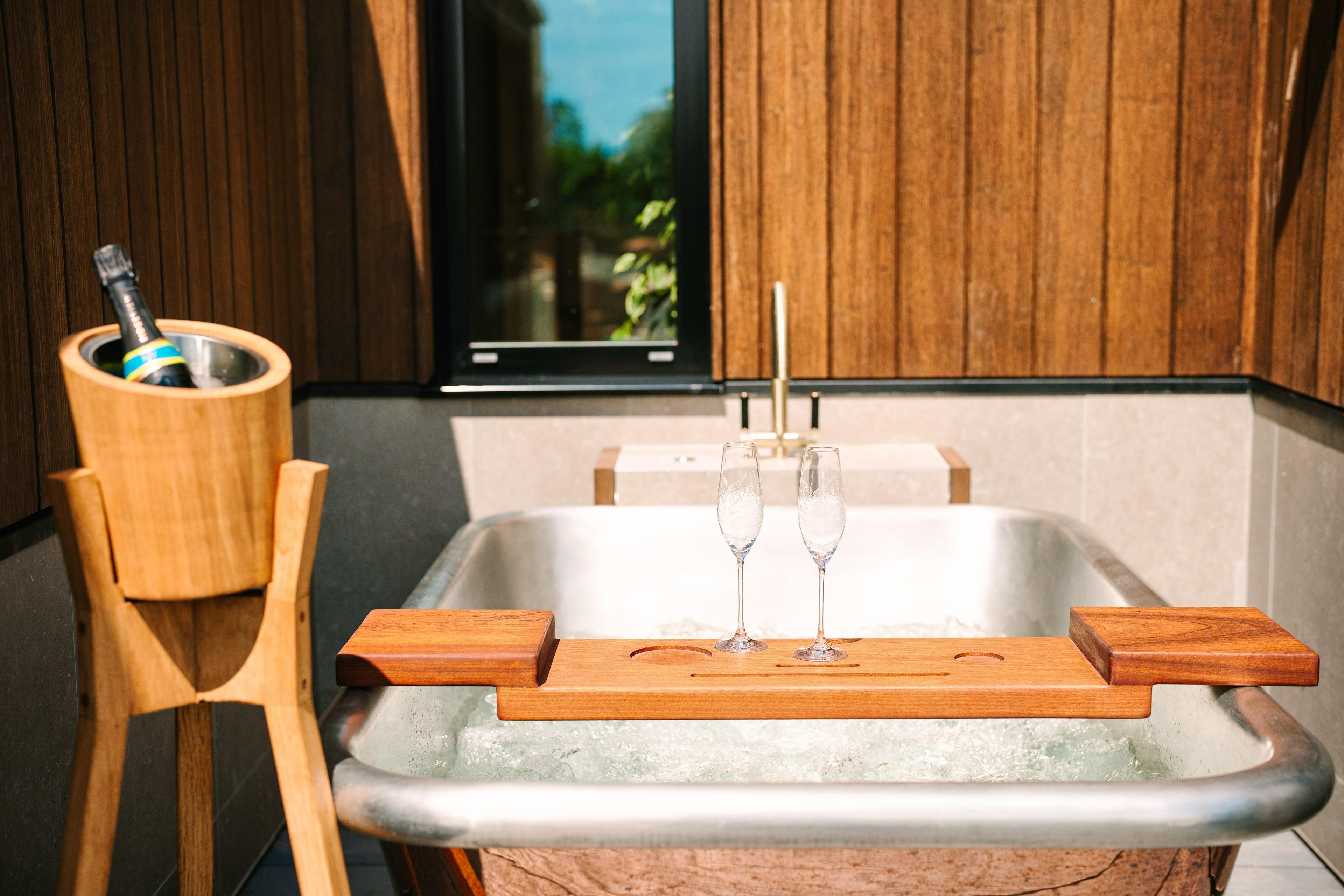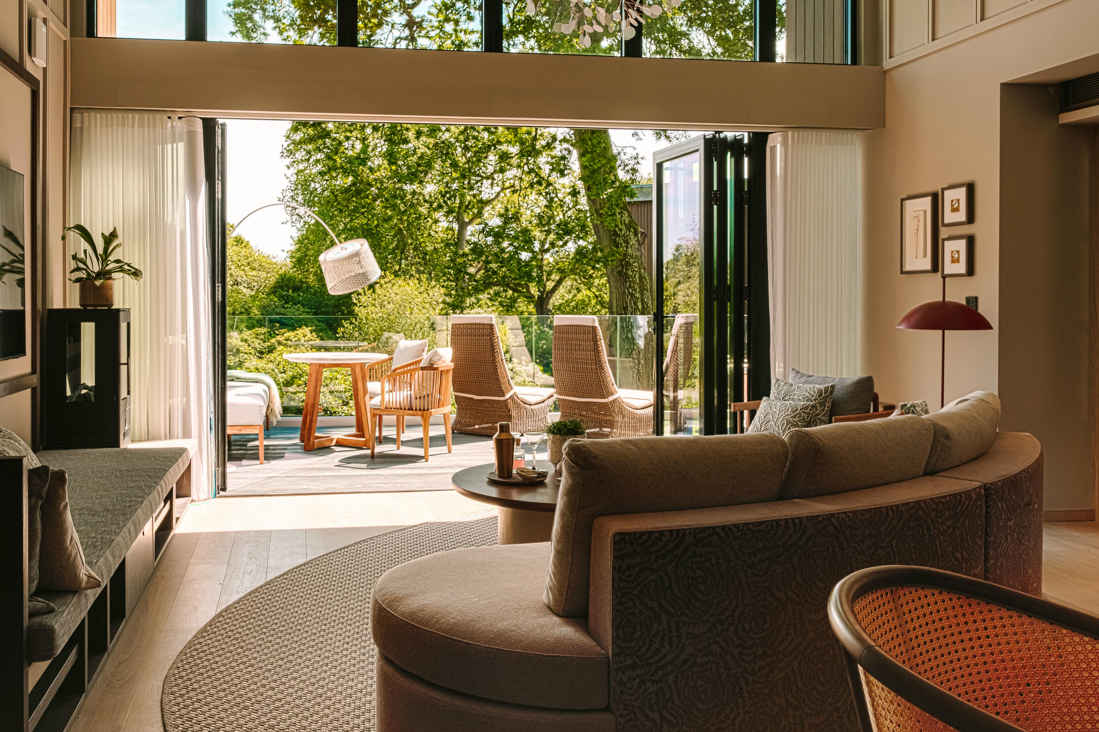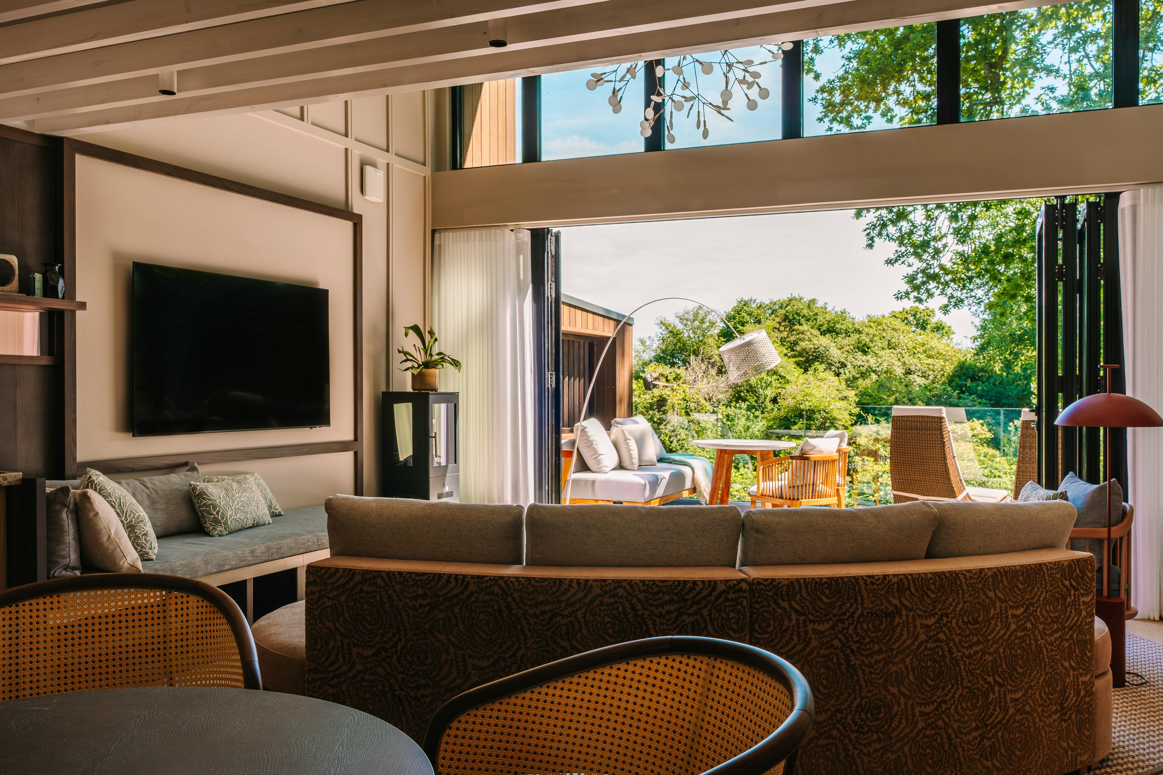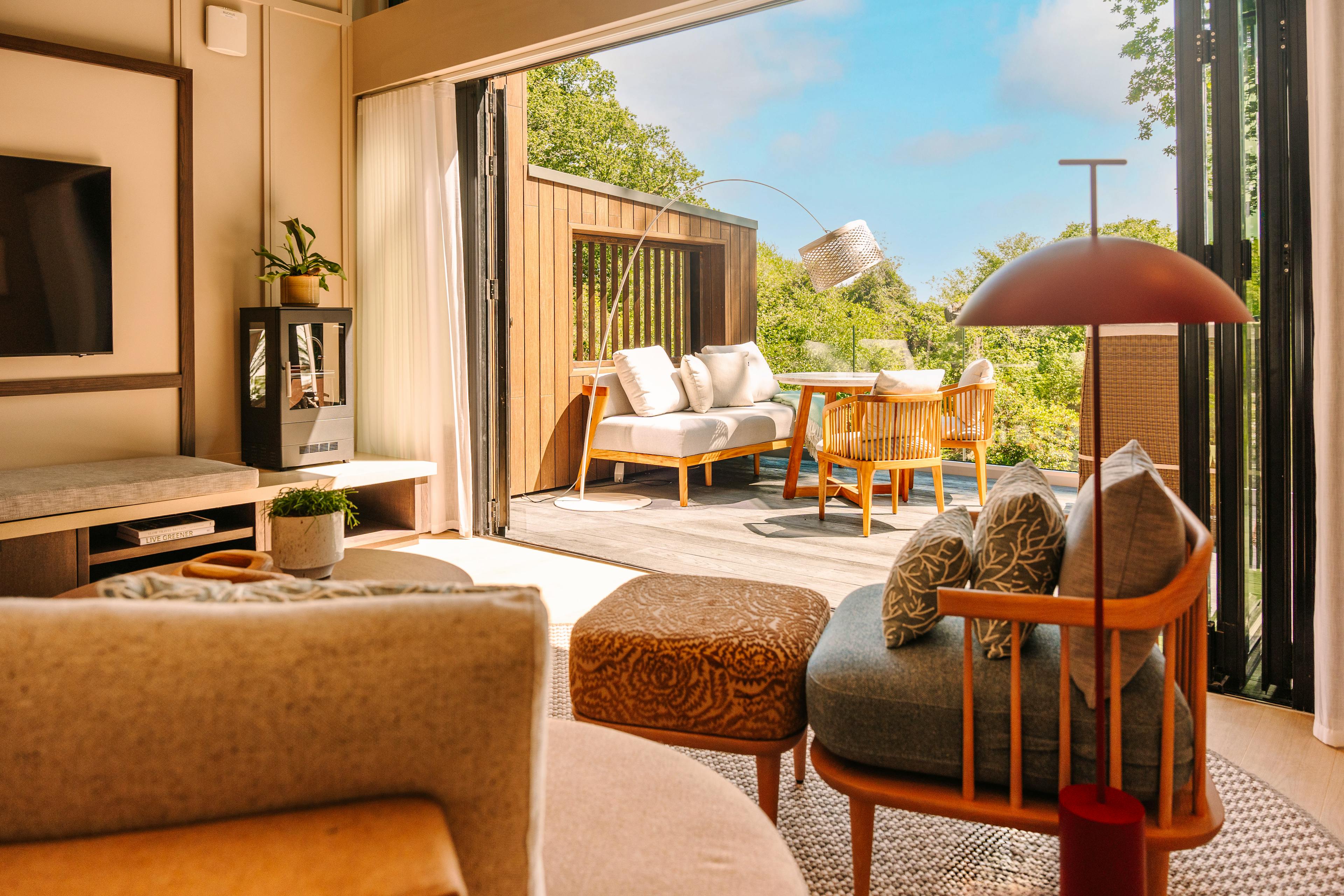 A collection of luxurious, modern lodges on the edge of a lake in West Sussex with outdoor bath tubs, infra red saunas, modern amenities and amazing views.
