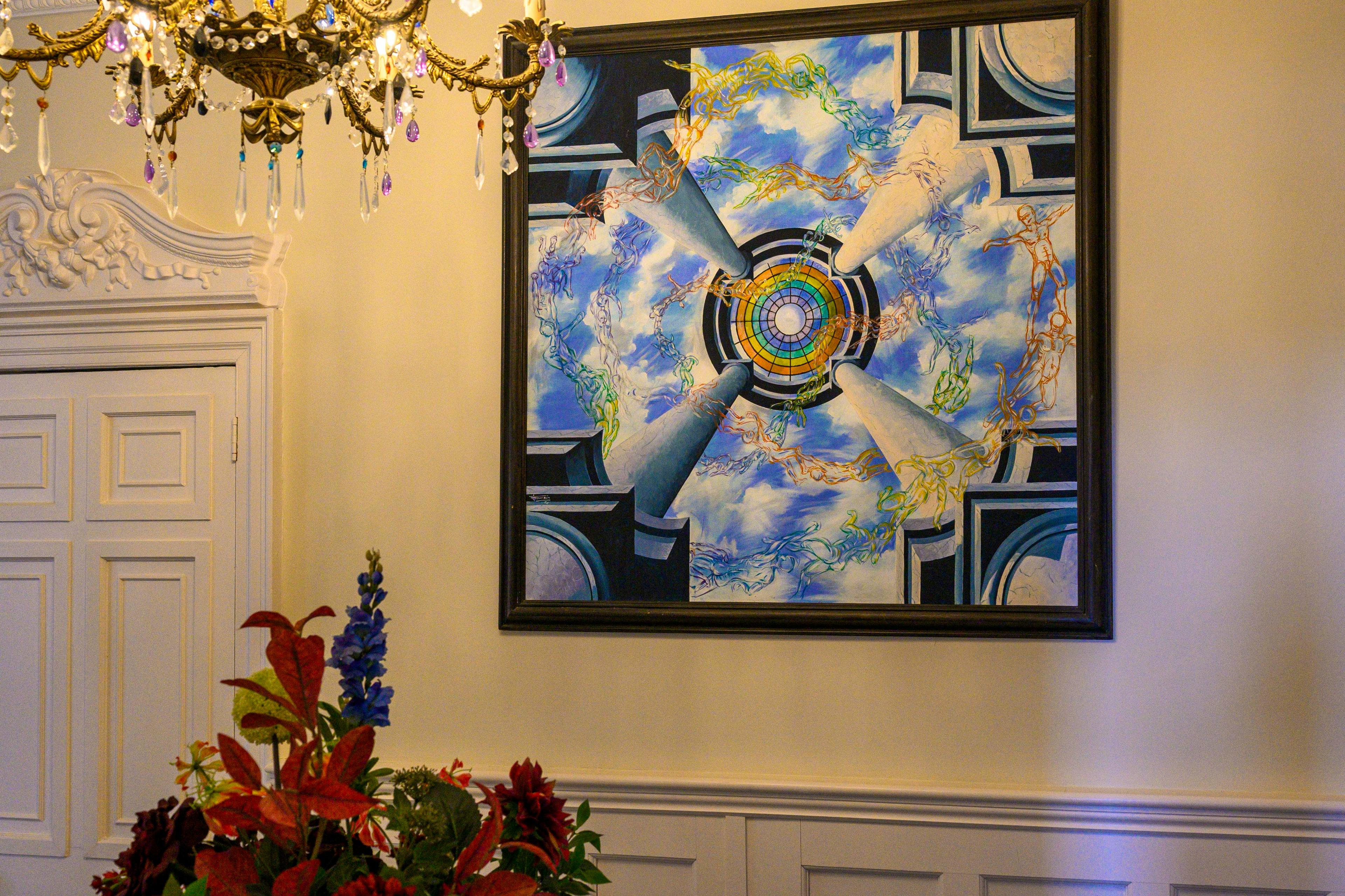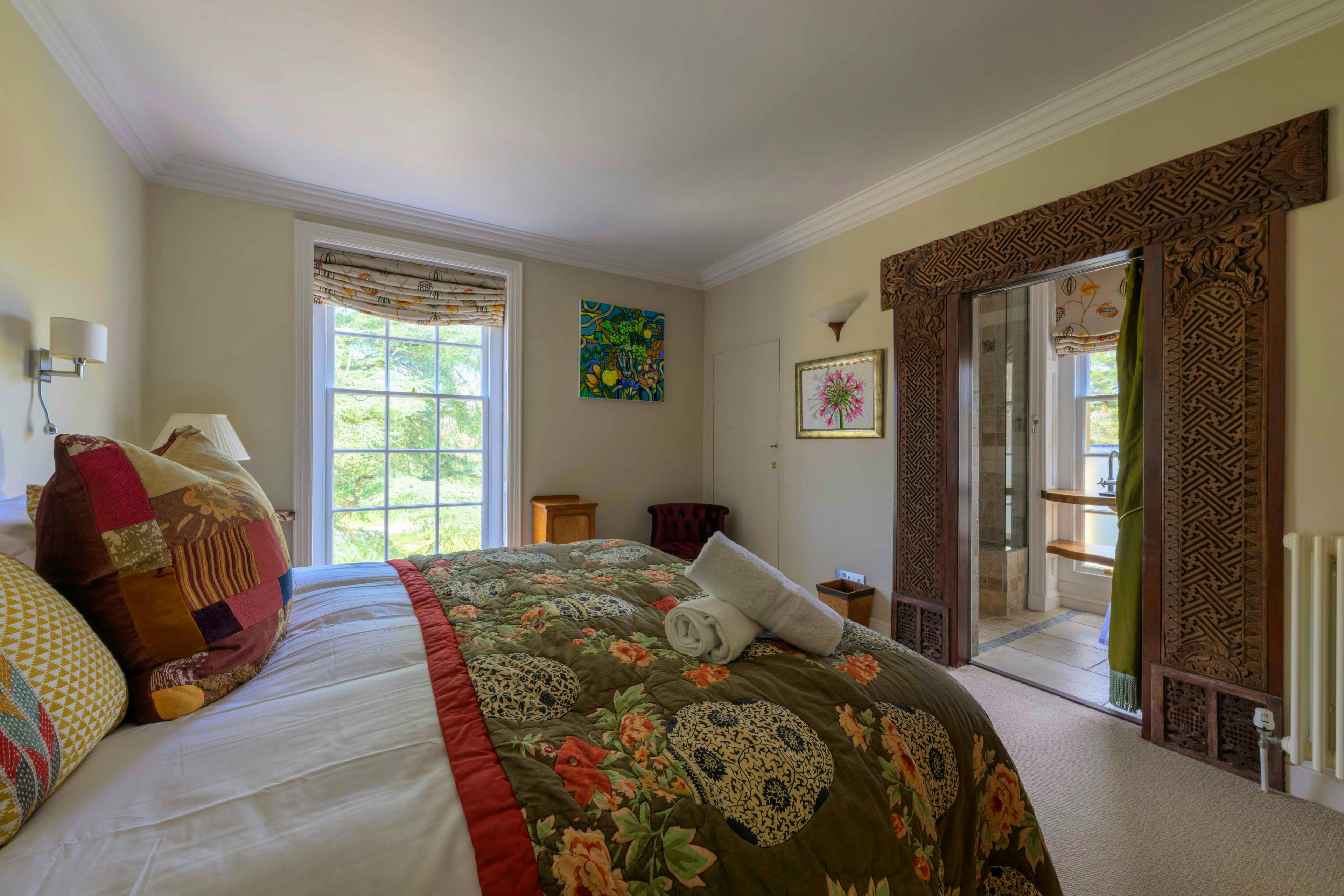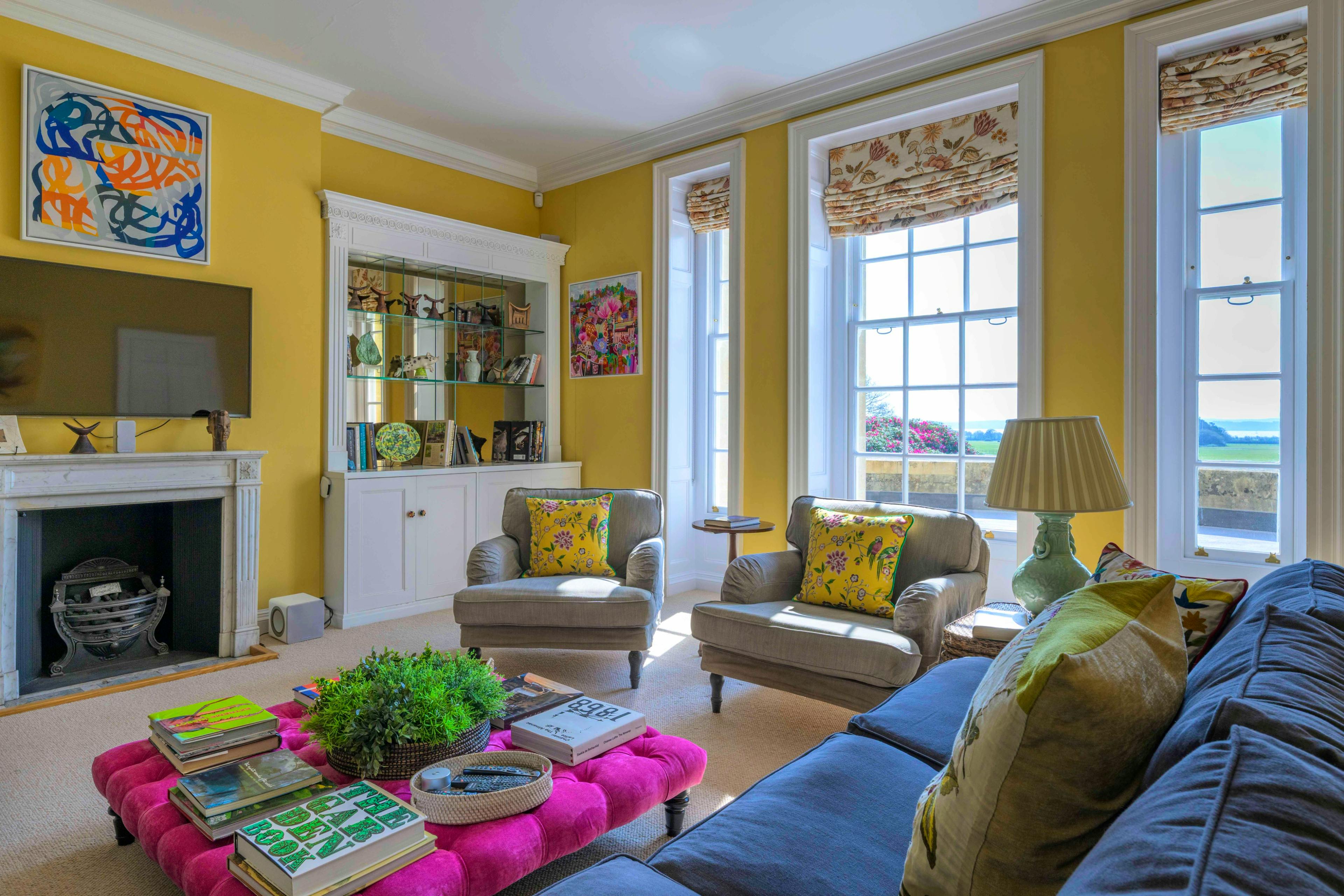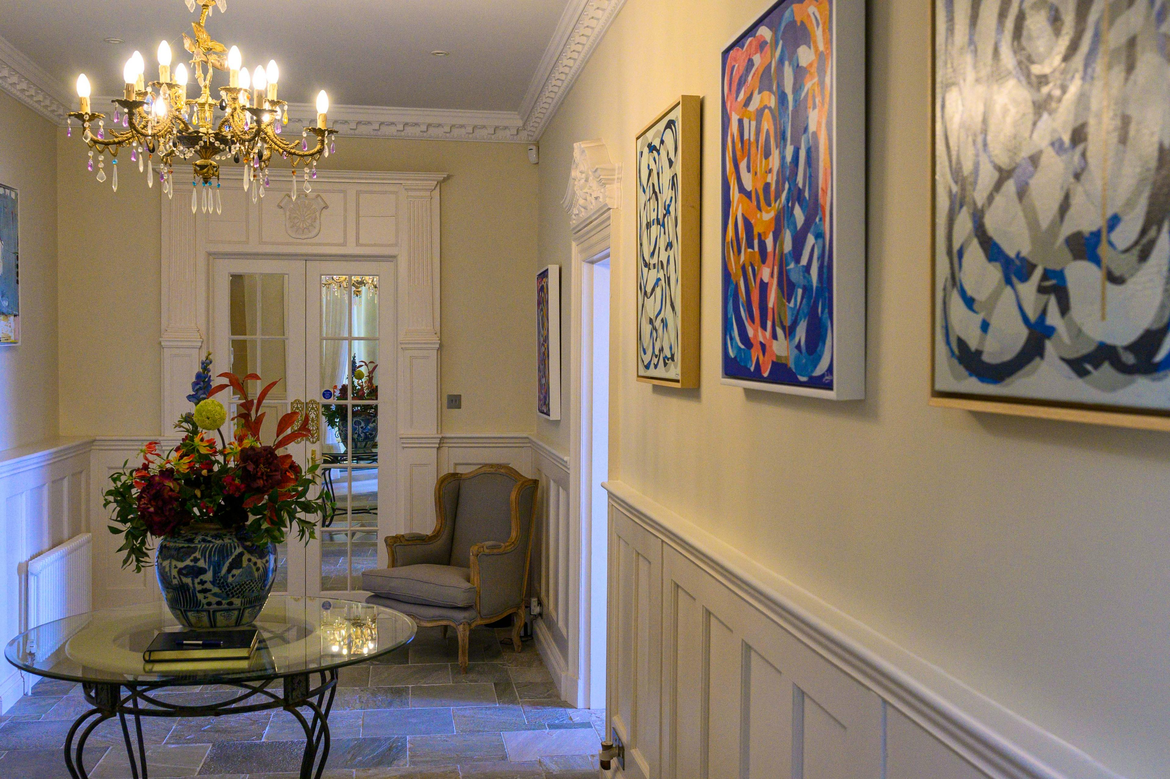 Bold, artsy interiors filled with original artwork by the owners, blending classic country house grandeur with creative flair.