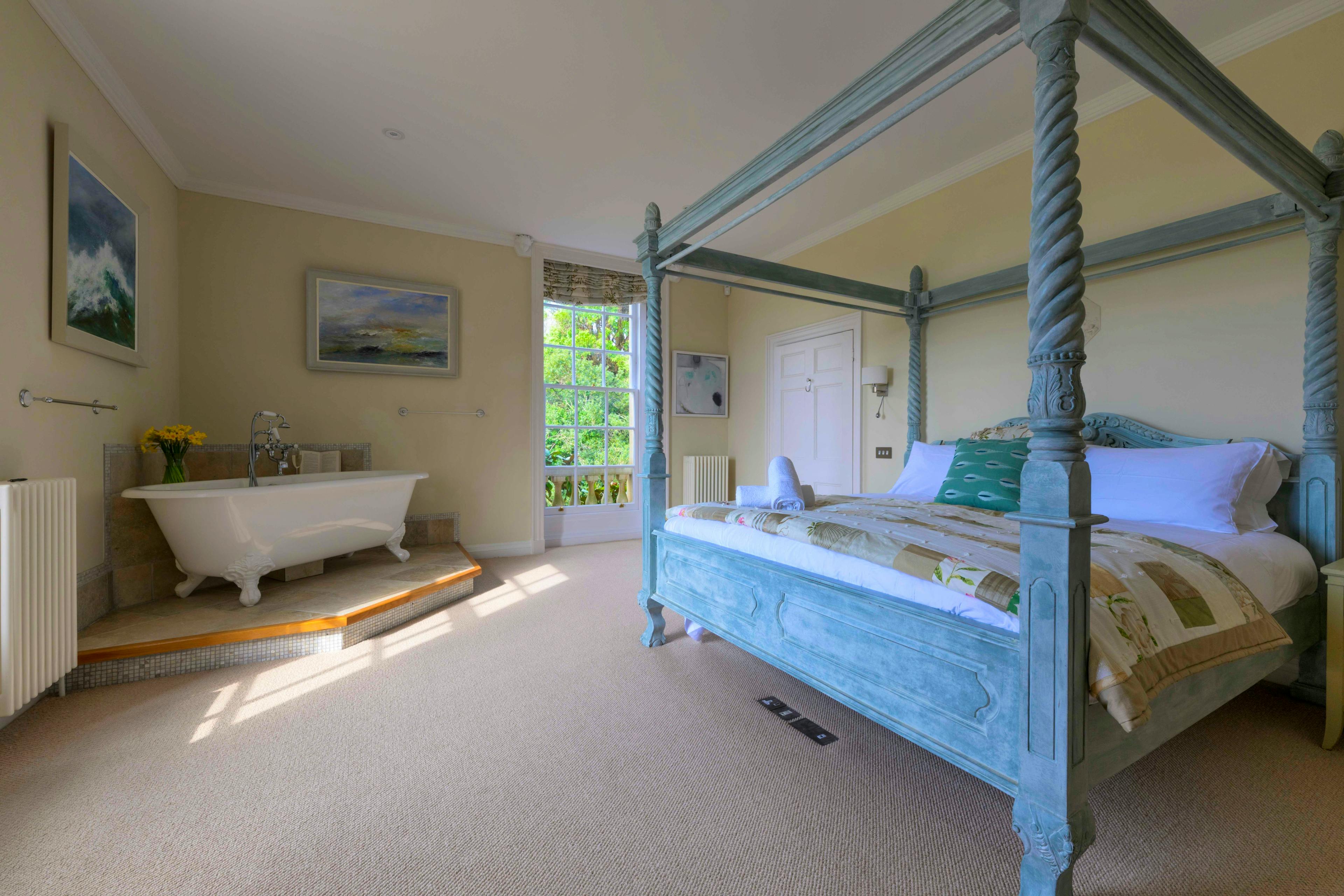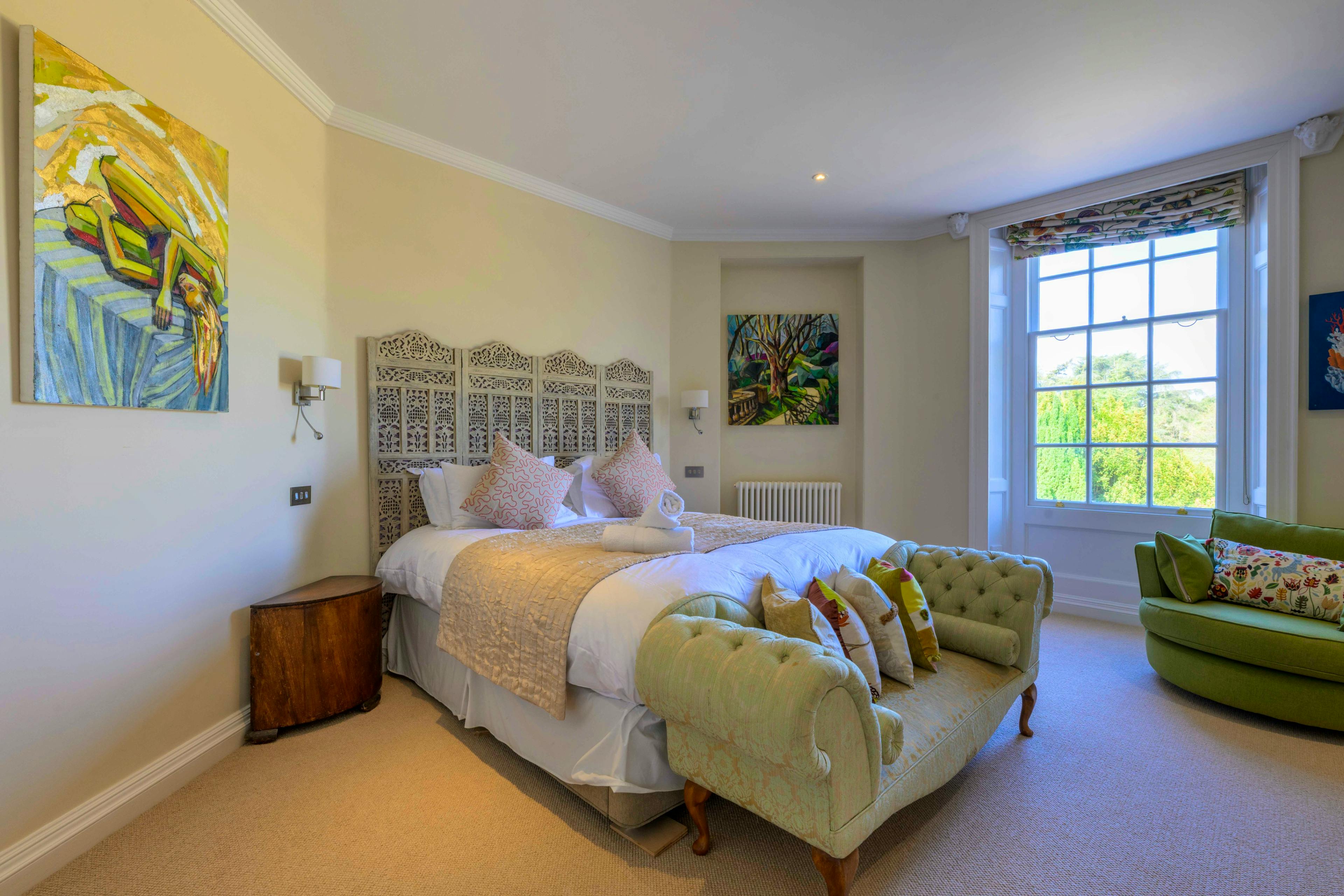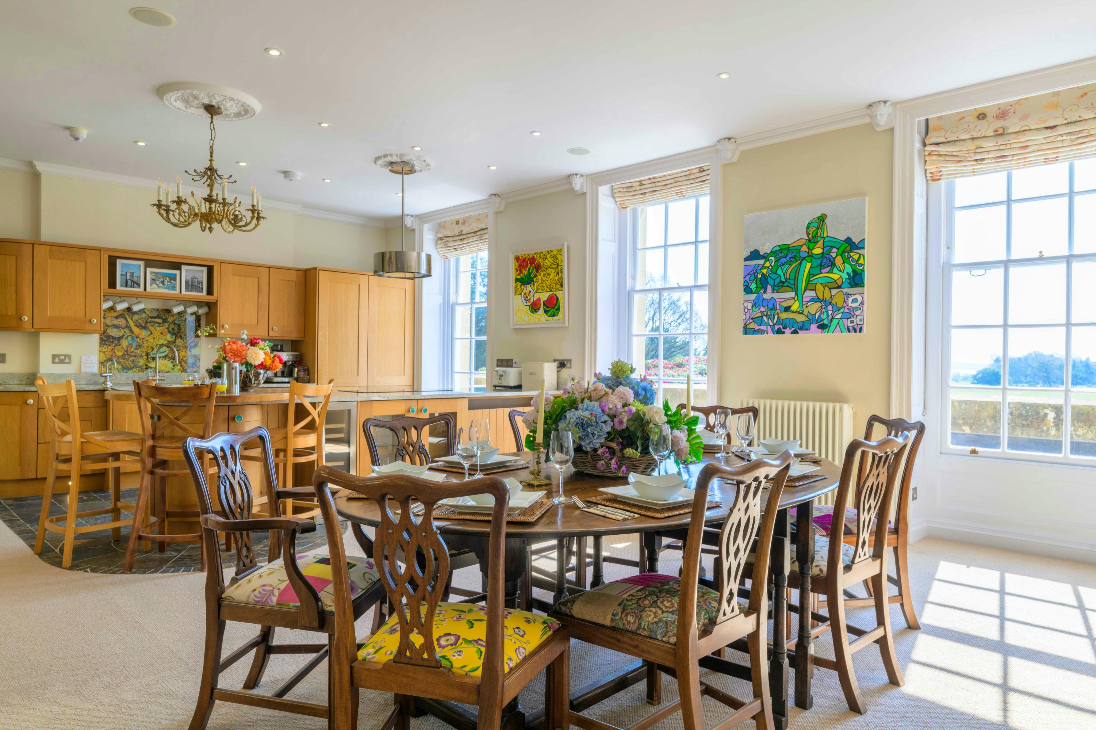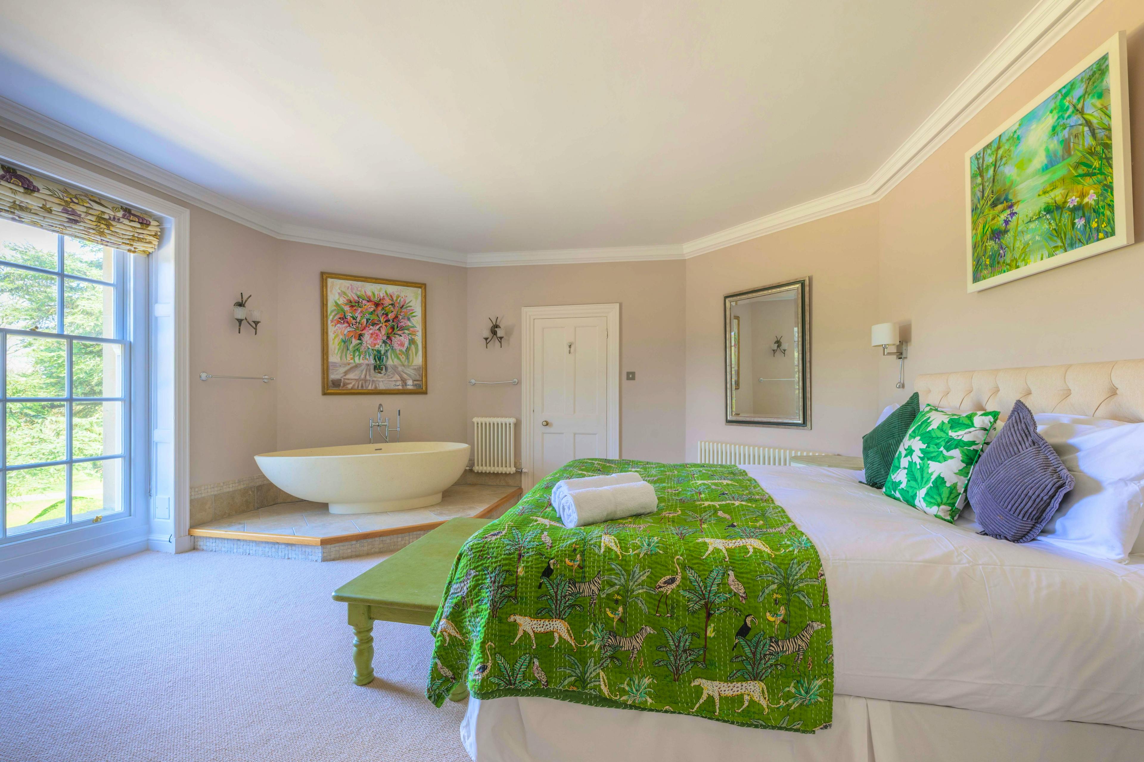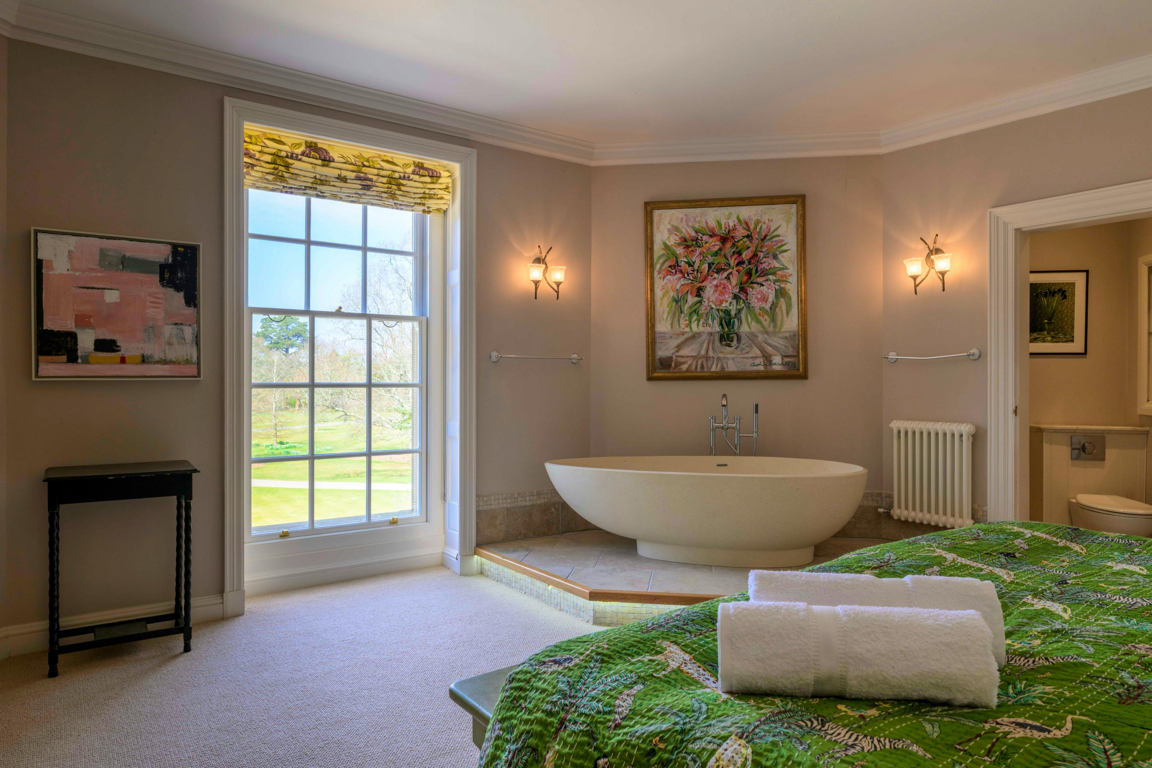 Calling all garden lovers, architecture aficionados and anyone who dreams of staying somewhere genuinely out of the ordinary. The Rotunda is a one-of-a-kind holiday apartment set within Exbury House, right at the heart of the world-famous Exbury Gardens. With over 200 acres of woodland gardens on your doorstep and unlimited access throughout your stay, this is a place that feels utterly special from the moment you arrive. Exbury House itself is a showstopper, remodelled in the early 20th century by Lionel de Rothschild and approached via a sweeping gravel driveway. Inside, The Rotunda sits on the first floor and is arranged around an extraordinary circular, glass-topped promenade. Columns, arches and a soaring domed ceiling flood the space with natural light by day, while subtle lighting transforms it into something truly magical by night. Rooms radiate outwards from this central space, creating an apartment that feels both grand and delightfully unconventional. The interiors are bold, creative and full of personality. Artwork by owners and artists Caroline and Nicholas de Rothschild adorns almost every wall, blending beautifully with classic country house features such as high ceilings, fireplaces, panelling and ornate cornicing. The result is a space that feels elegant yet playful, formal yet inviting. There’s a generous lounge for relaxed evenings together, complete with deep sofas, vibrant cushions and big windows framing views across parkland and the Solent beyond. The vast open-plan kitchen-dining room is made for sociable stays, with a bespoke country house kitchen, oversized island and an oval dining table seating eight for long, laughter-filled meals. Even the utility room and cloakroom are spacious, stylish and blessed with garden views. Four indulgent bedrooms complete the picture, each beautifully styled and wonderfully spacious. Super king size beds, luxe bathrooms and far-reaching views ensure deeply restful nights, whether you’re staying with friends or extended family. From spring rhododendrons to fiery autumn colour, The Rotunda offers a stay that changes with the seasons and never fails to impress. Guests can explore Exbury Gardens at leisure, enjoy the shared outdoor swimming pool in season and make use of the tennis court. Beyond the apartment, the Solent coastline is close by too, with bracing walks and big skies at Lepe Country Park, along with beach picnics and views across to the Isle of Wight. A gentle stroll brings you to The Royal Oak, a much-loved local pub serving hearty food in a relaxed setting, while Beaulieu village, just over five miles away, offers riverside walks, boutique shops, cafés and the much-loved Beaulieu Motor Museum. For waterside charm, head to Buckler’s Hard, once a historic shipbuilding village and now a wonderfully atmospheric spot for wandering, dining and watching boats glide along the river. Whether you’re drawn to gardens, coastline, forest walks or leisurely lunches, this enchanting corner of the New Forest makes it easy to fill your days, or happily do very little at all.