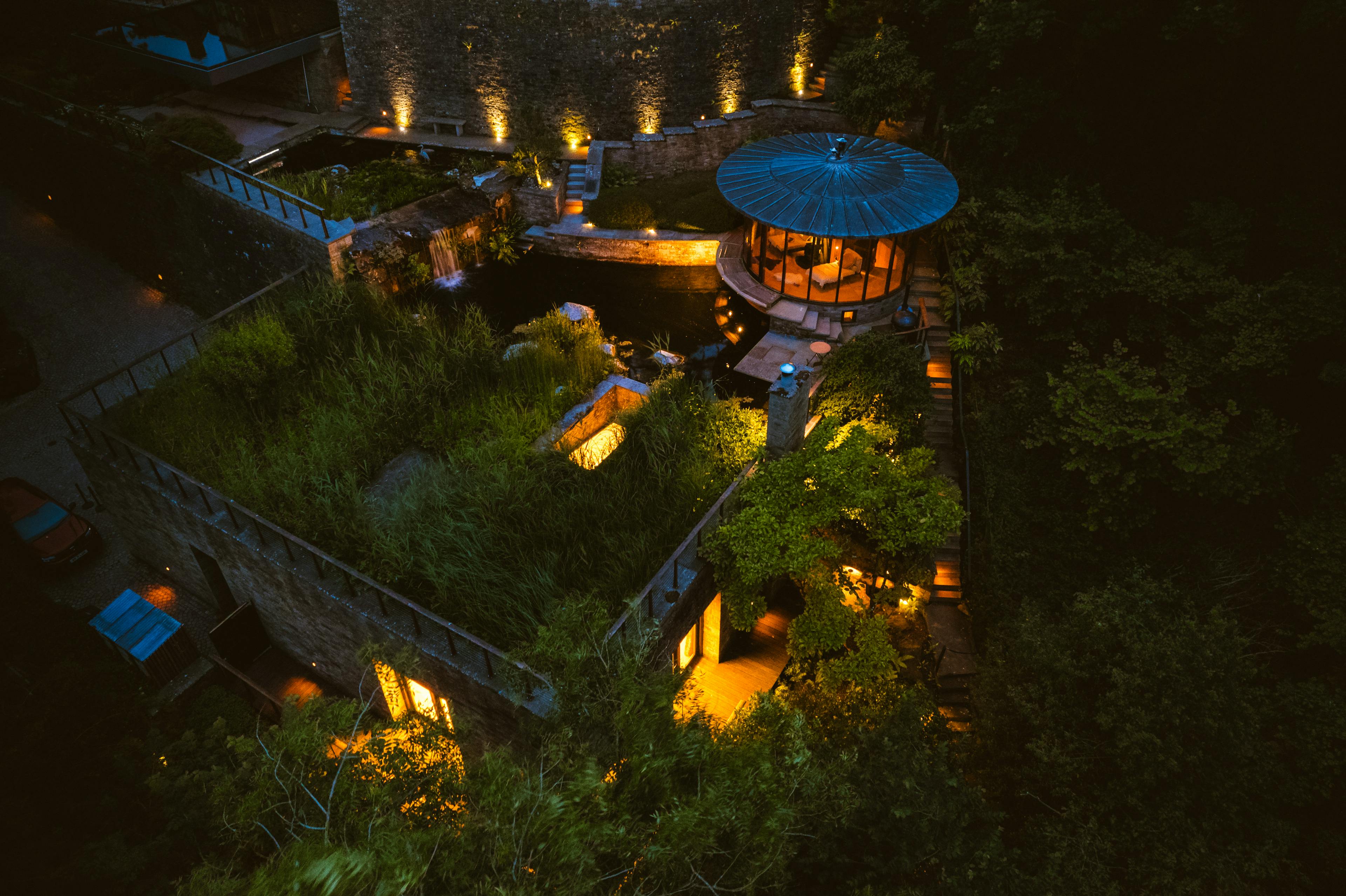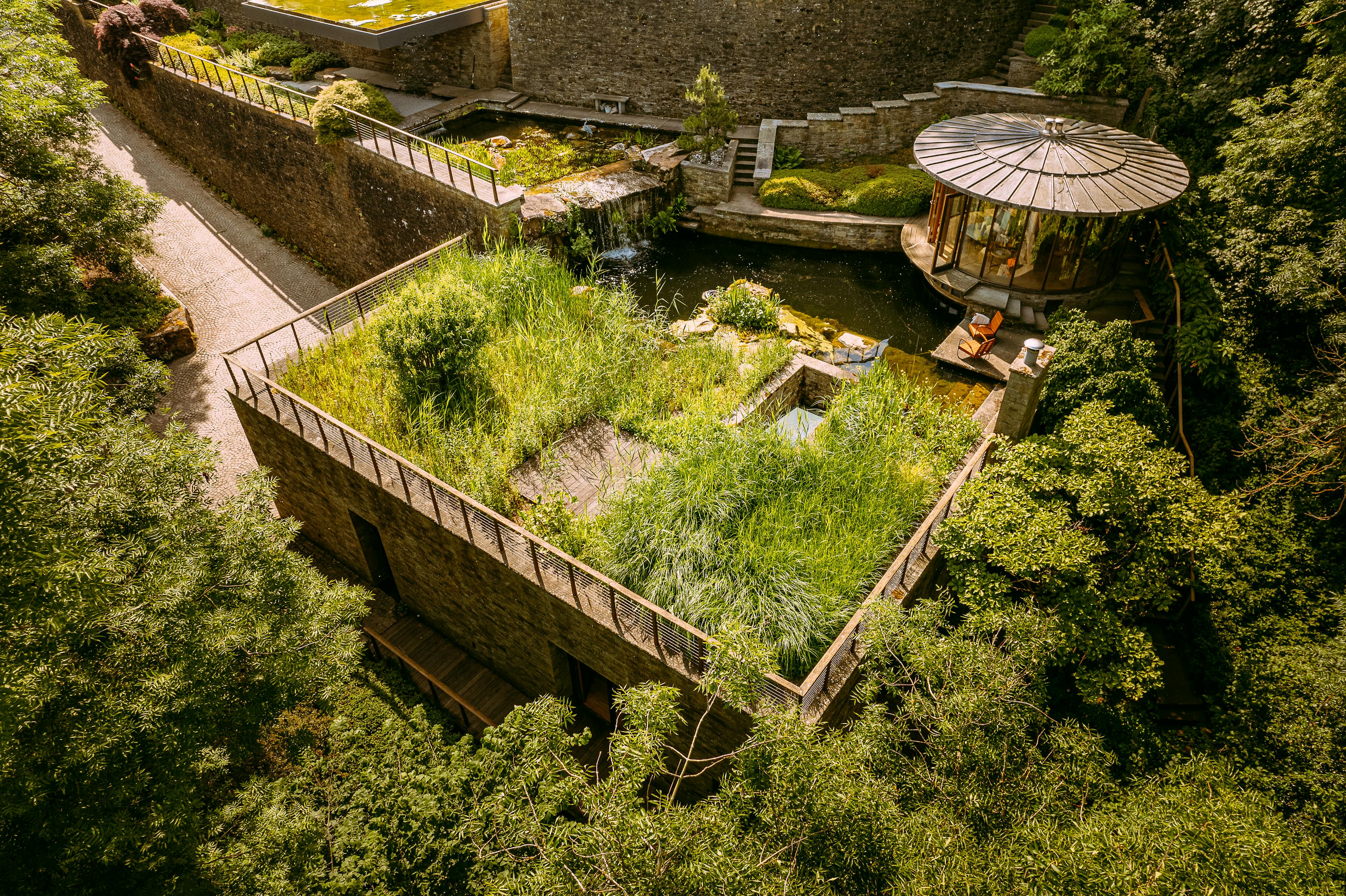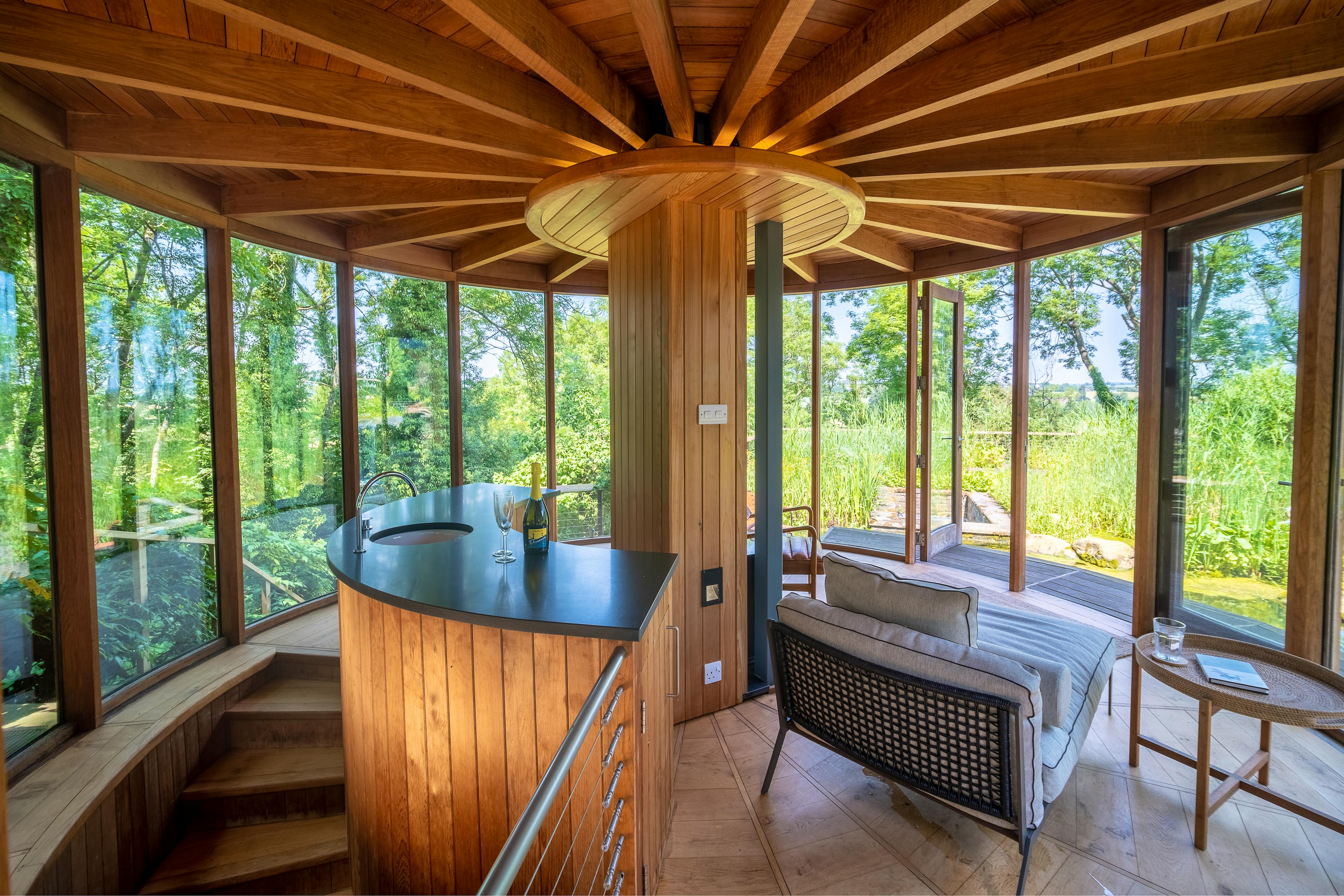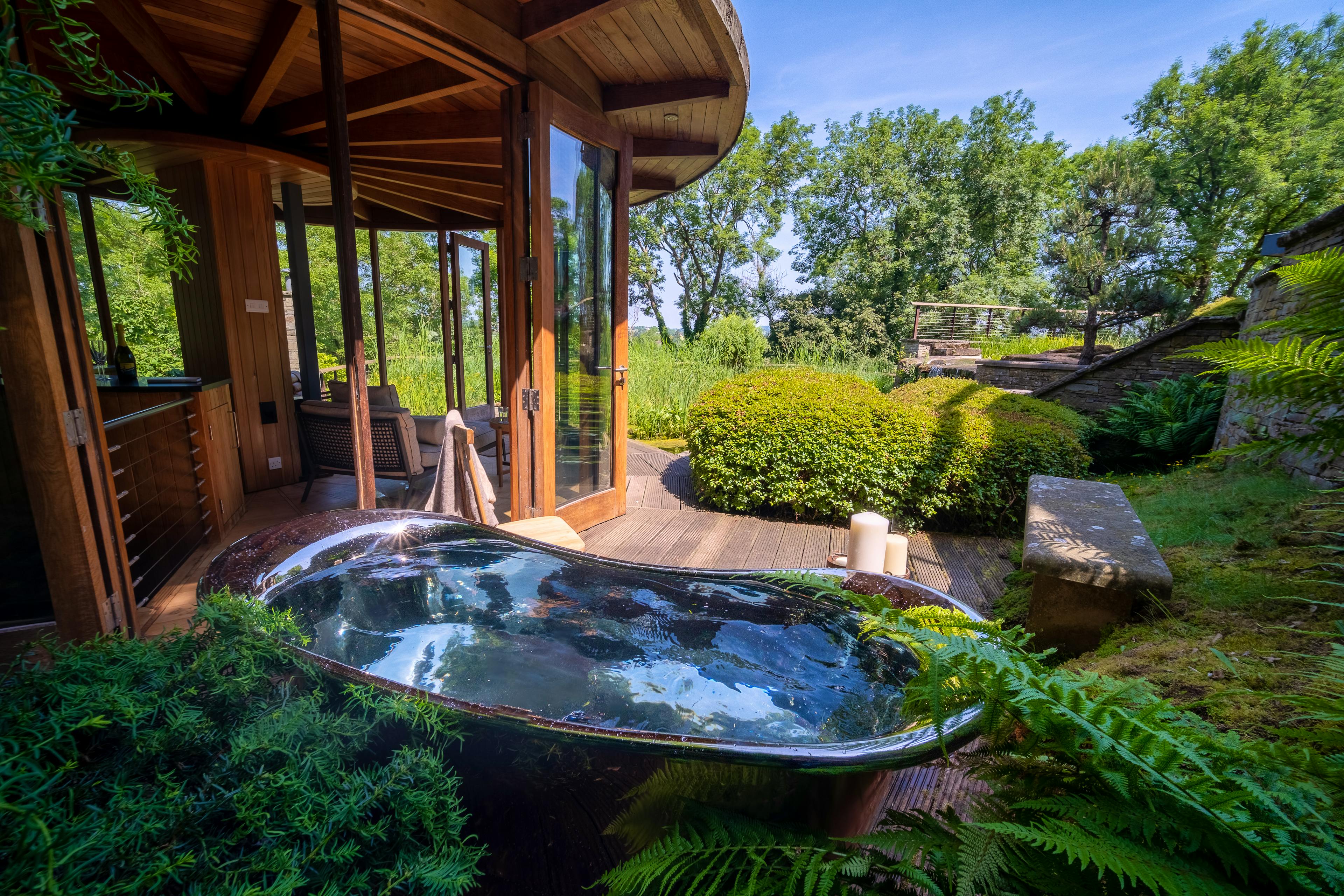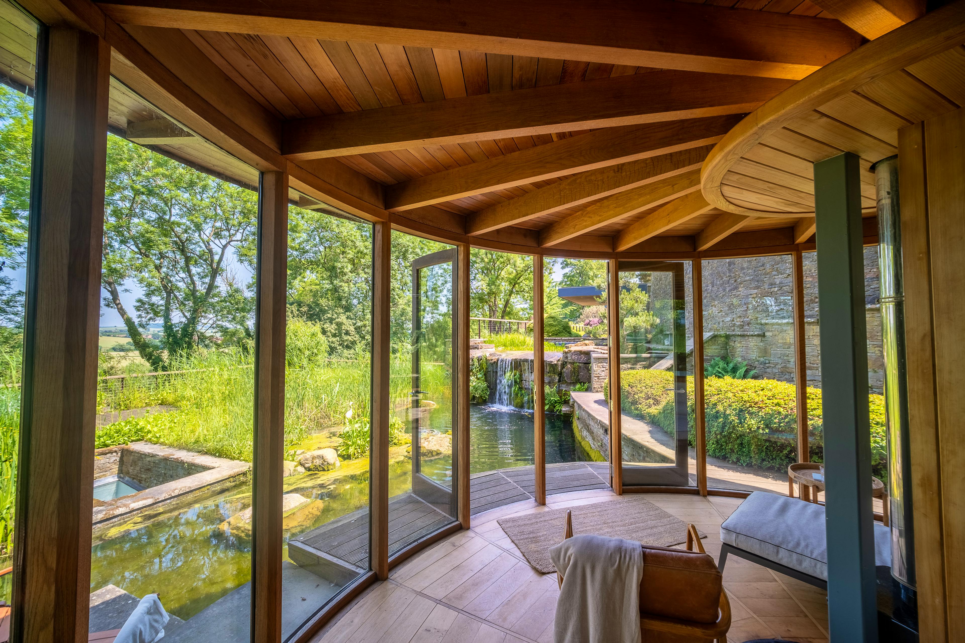 Romantic retreat with a sauna, outdoor bath and a rooftop pond near Ross-on-Wye.
