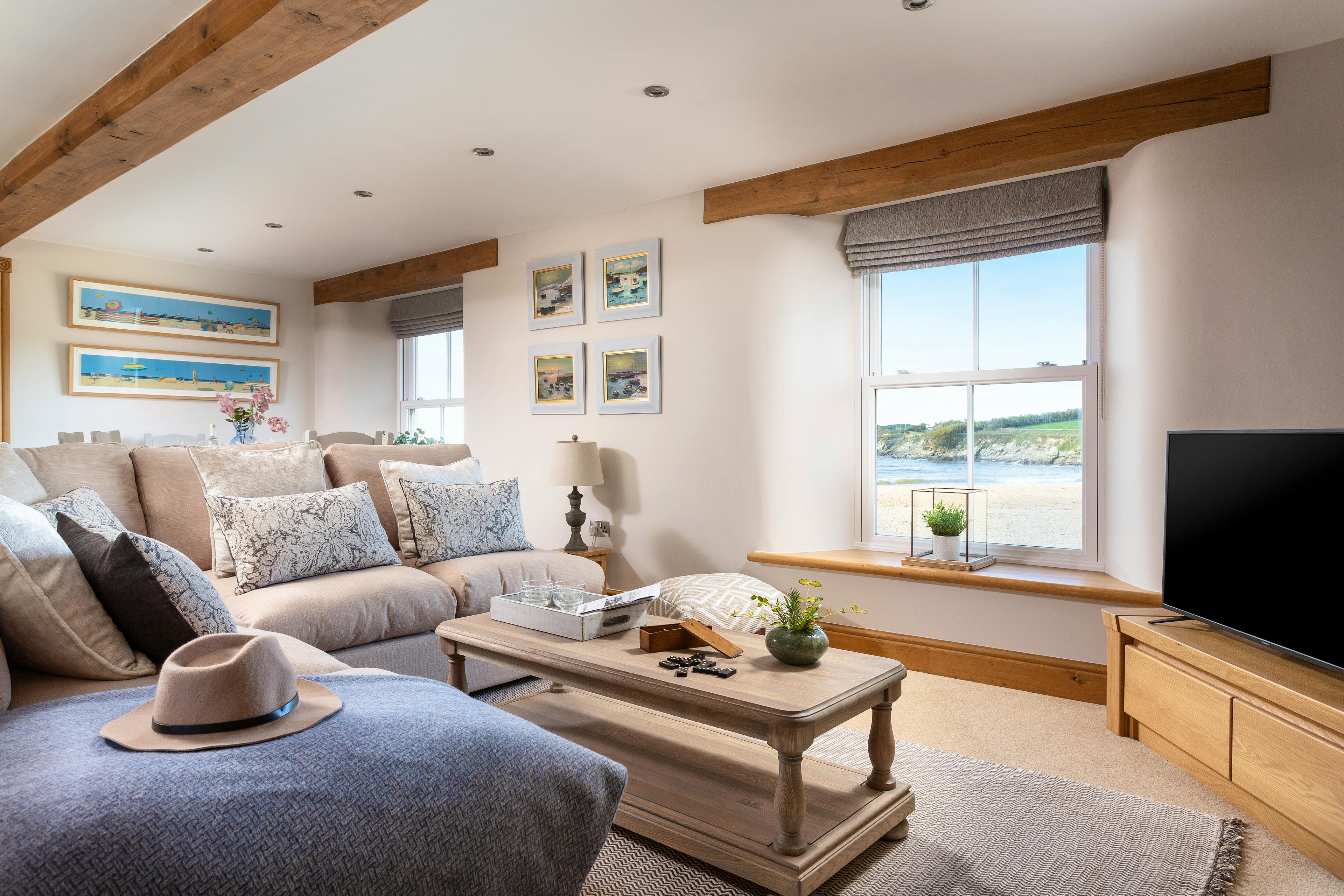 Spacious, light-filled holiday home with direct beach access just north of Newquay in Cornwall, perfect for family holidays to the seaside.