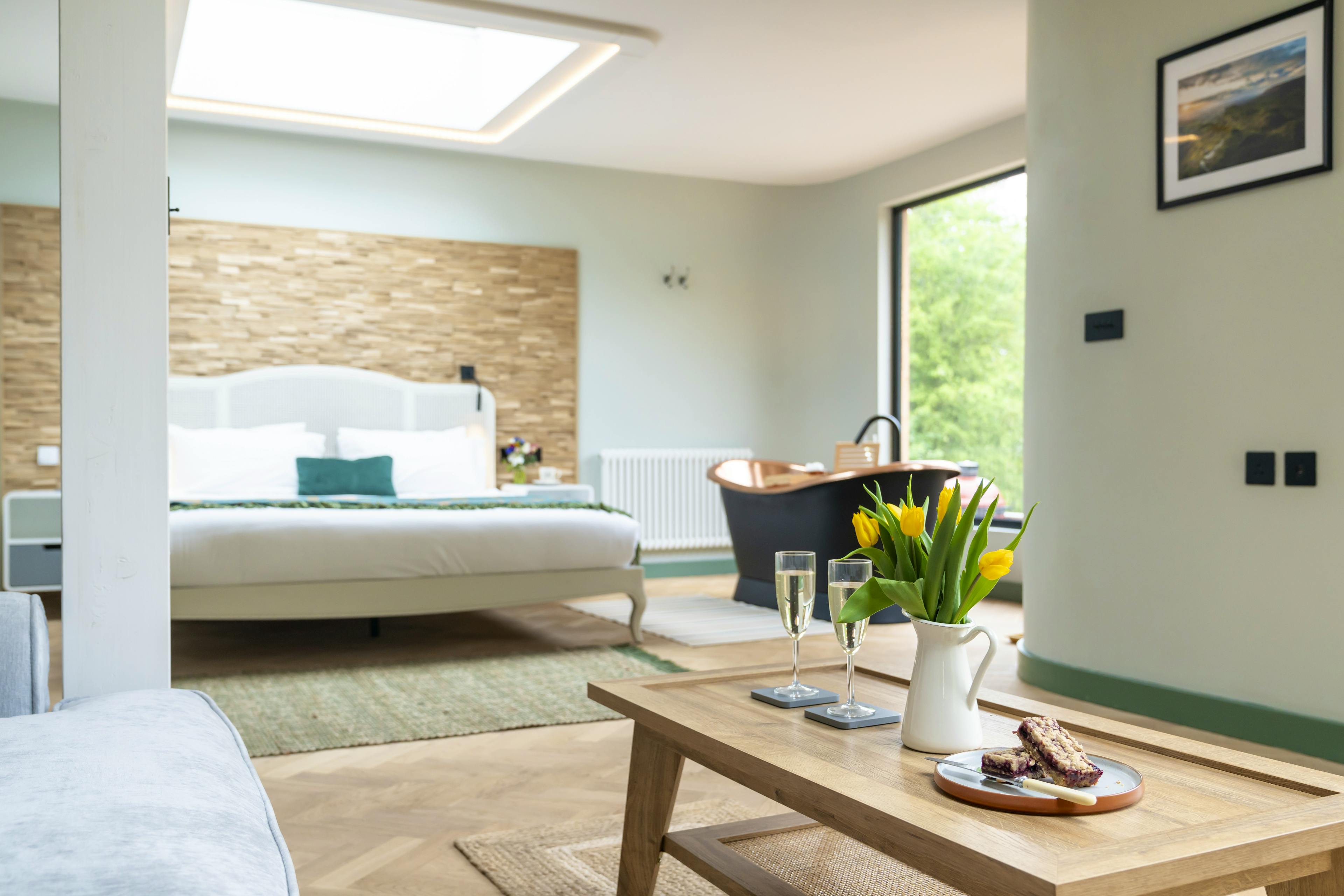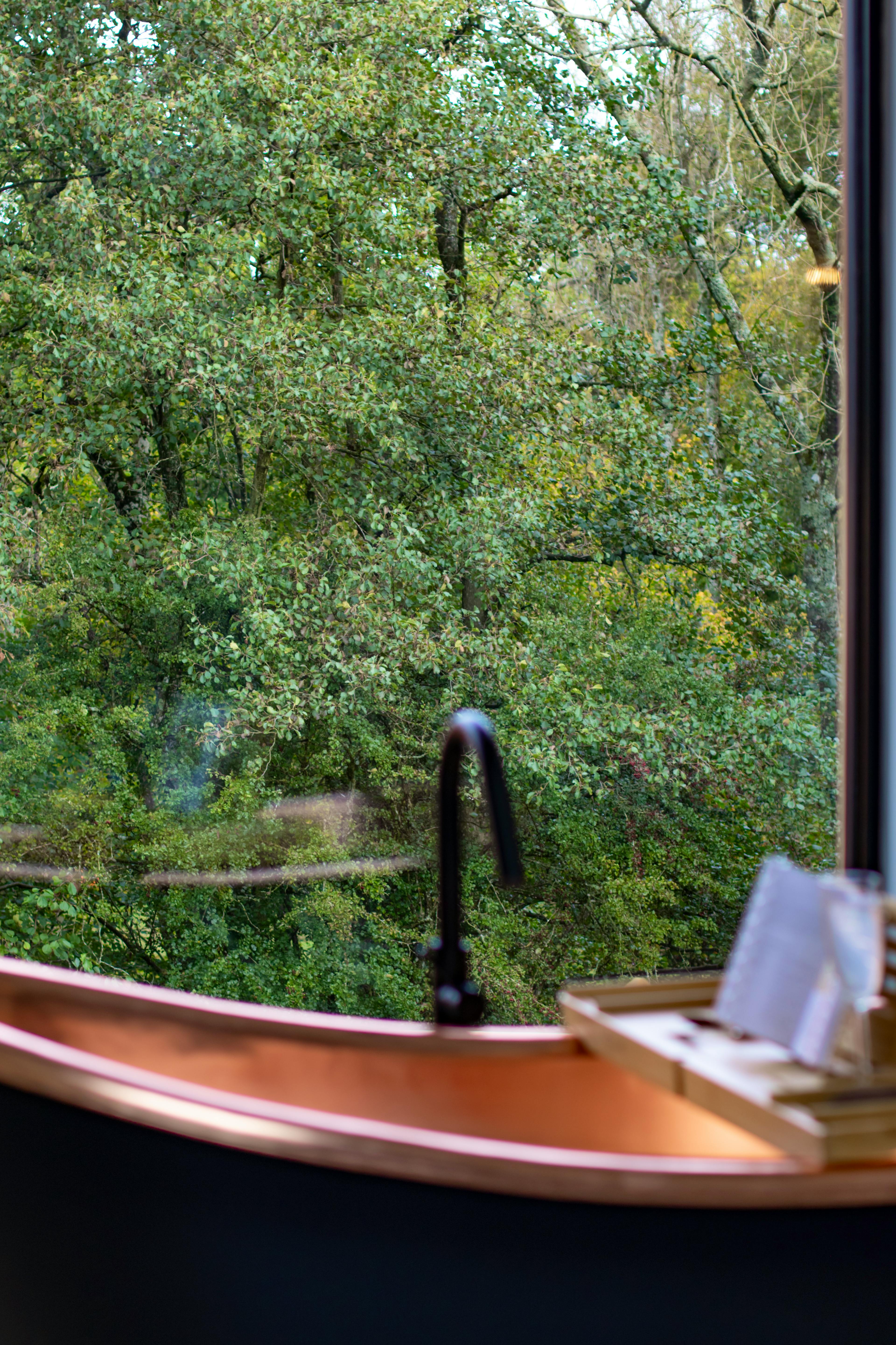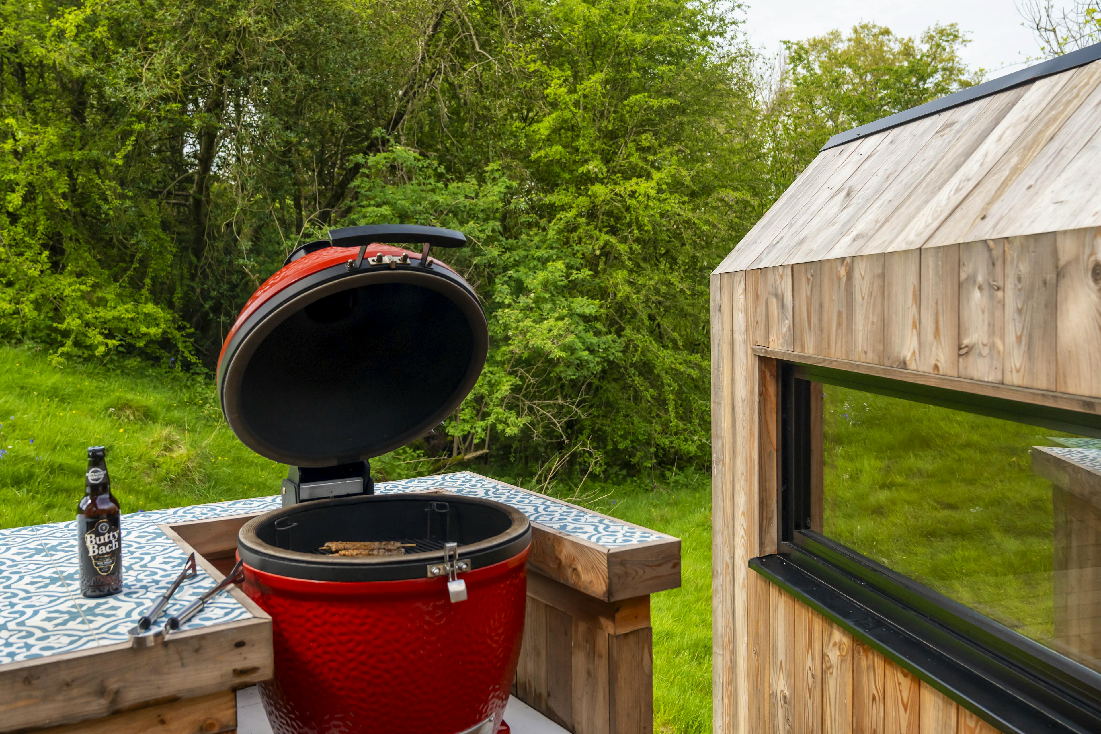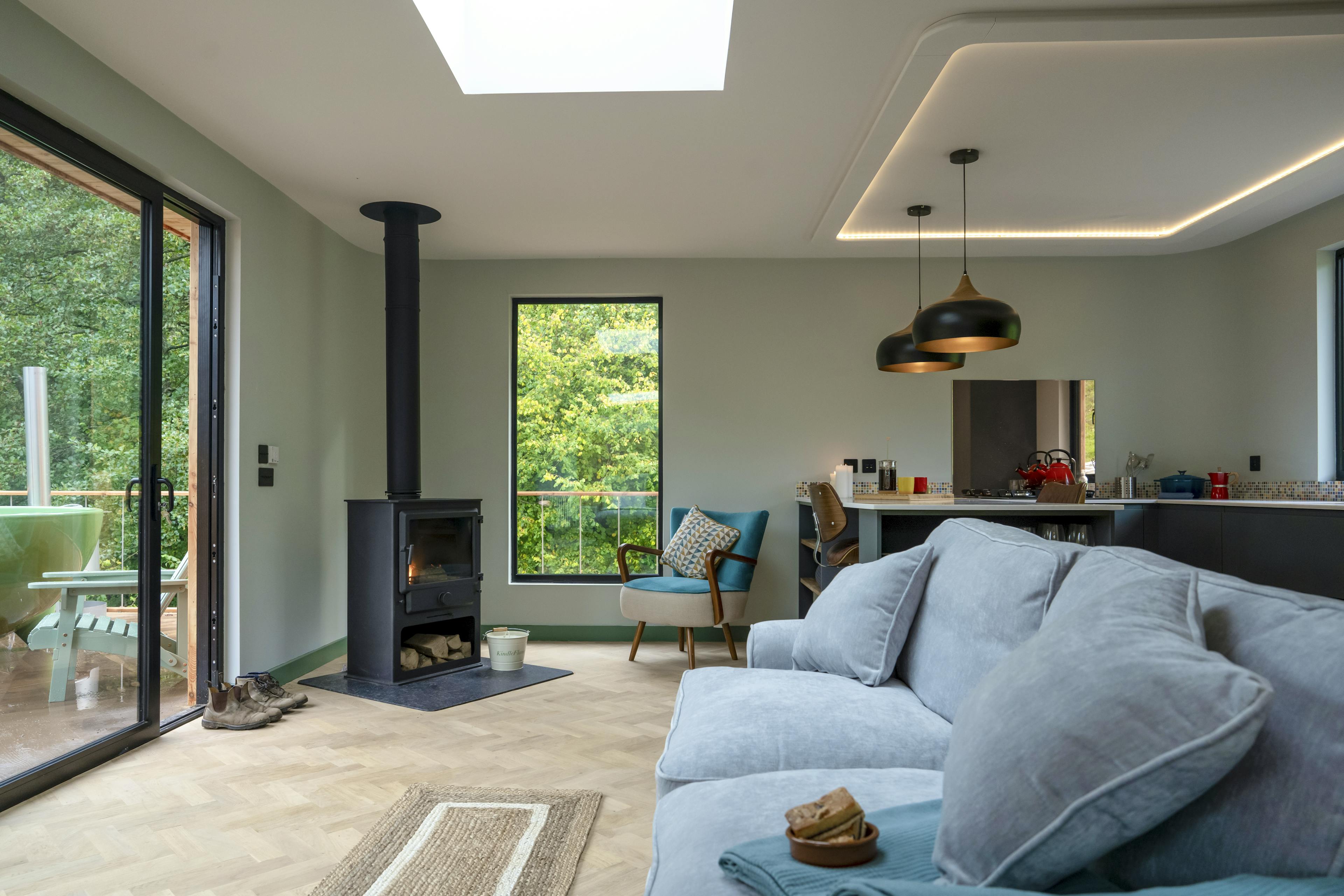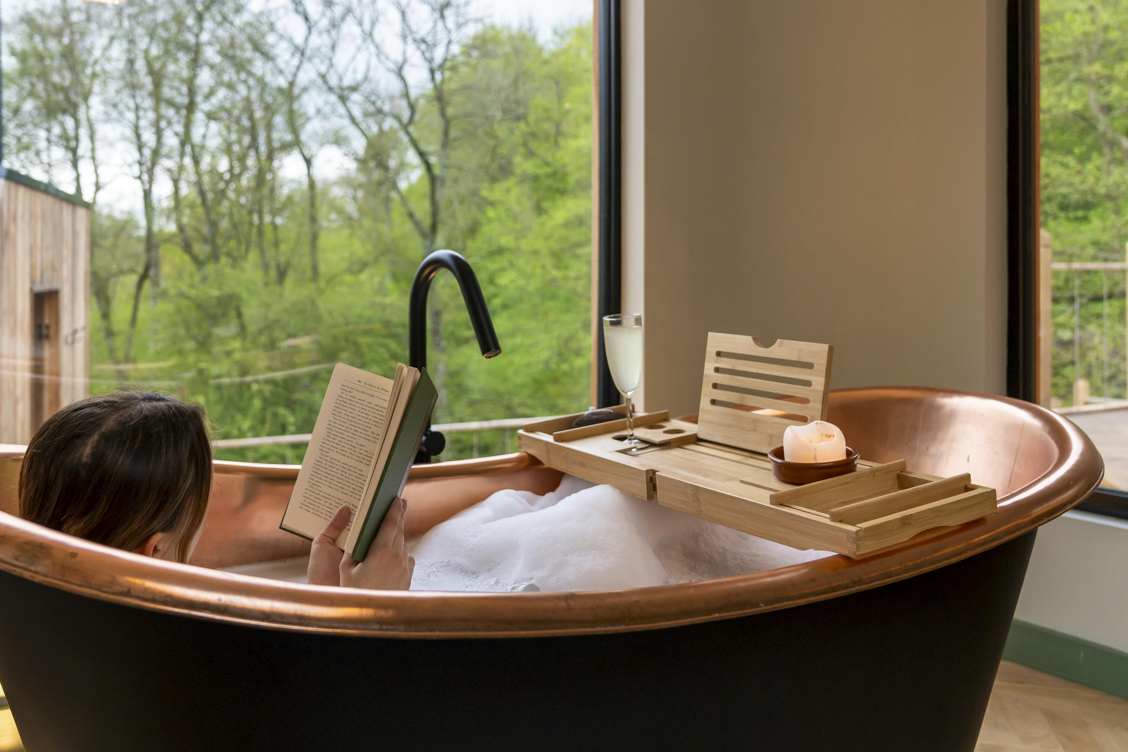 Wonderful, modern, off-grid cabin in the peaceful Herefordshire countryside with hot tub, free-standing bath tub, sauna and incredible views.
