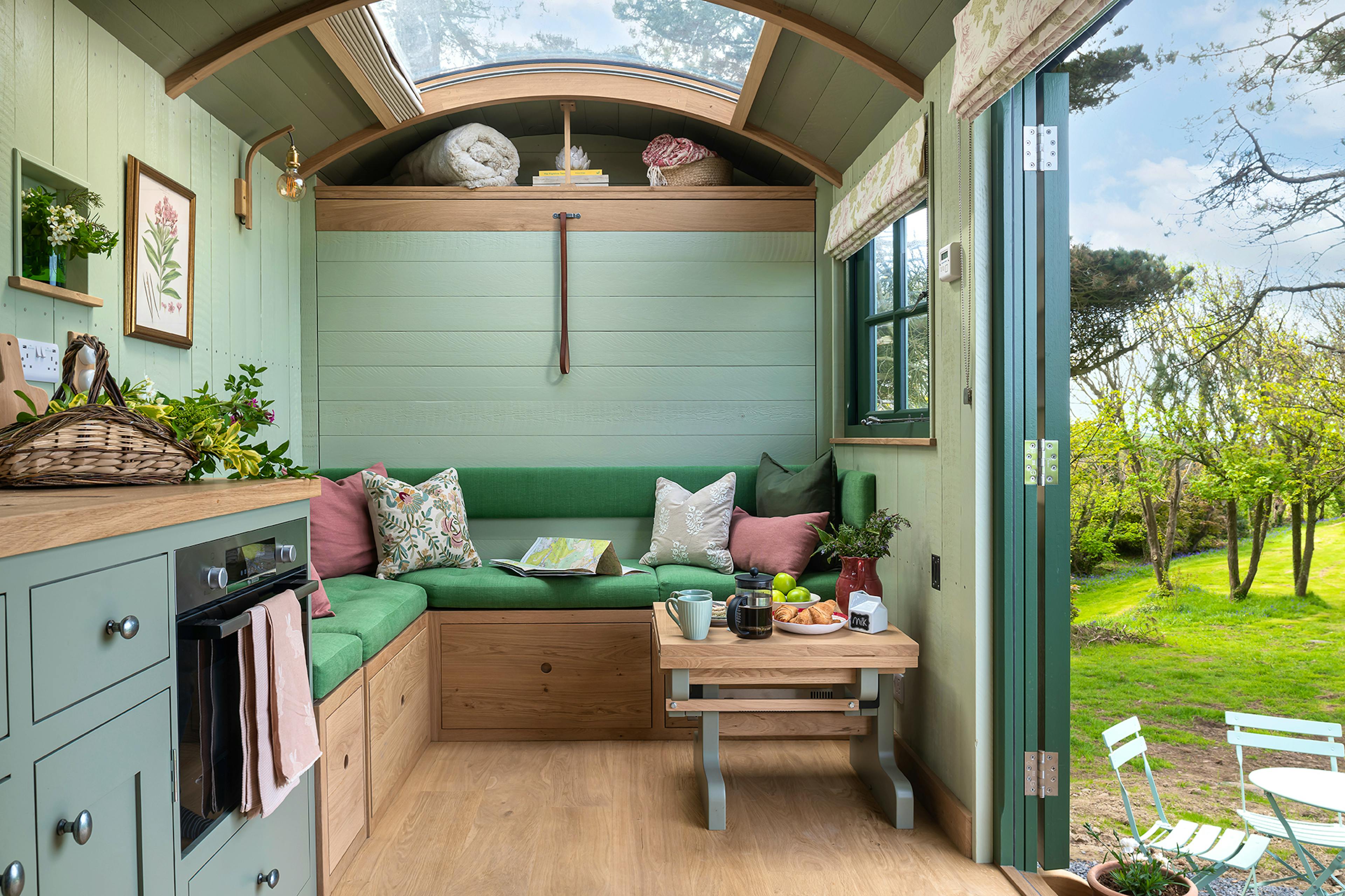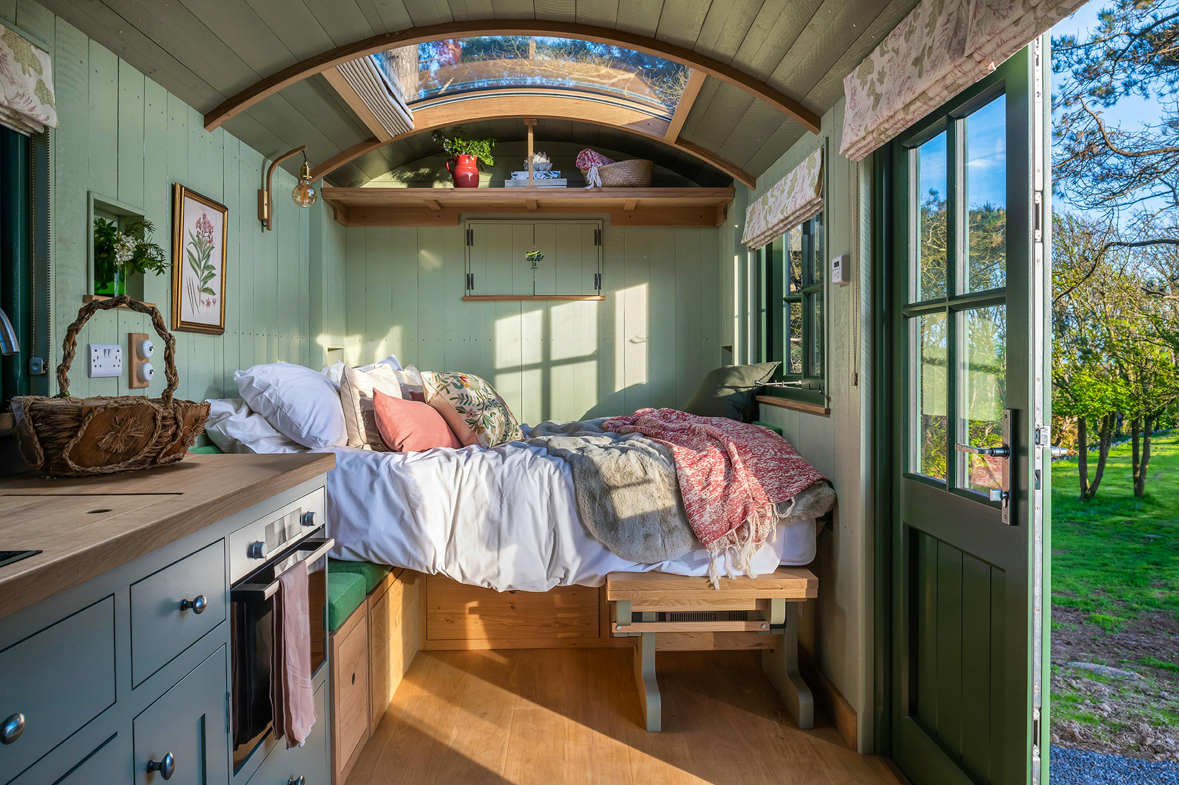 A luxe shepherd’s hut nestled in three acres of glorious countryside.