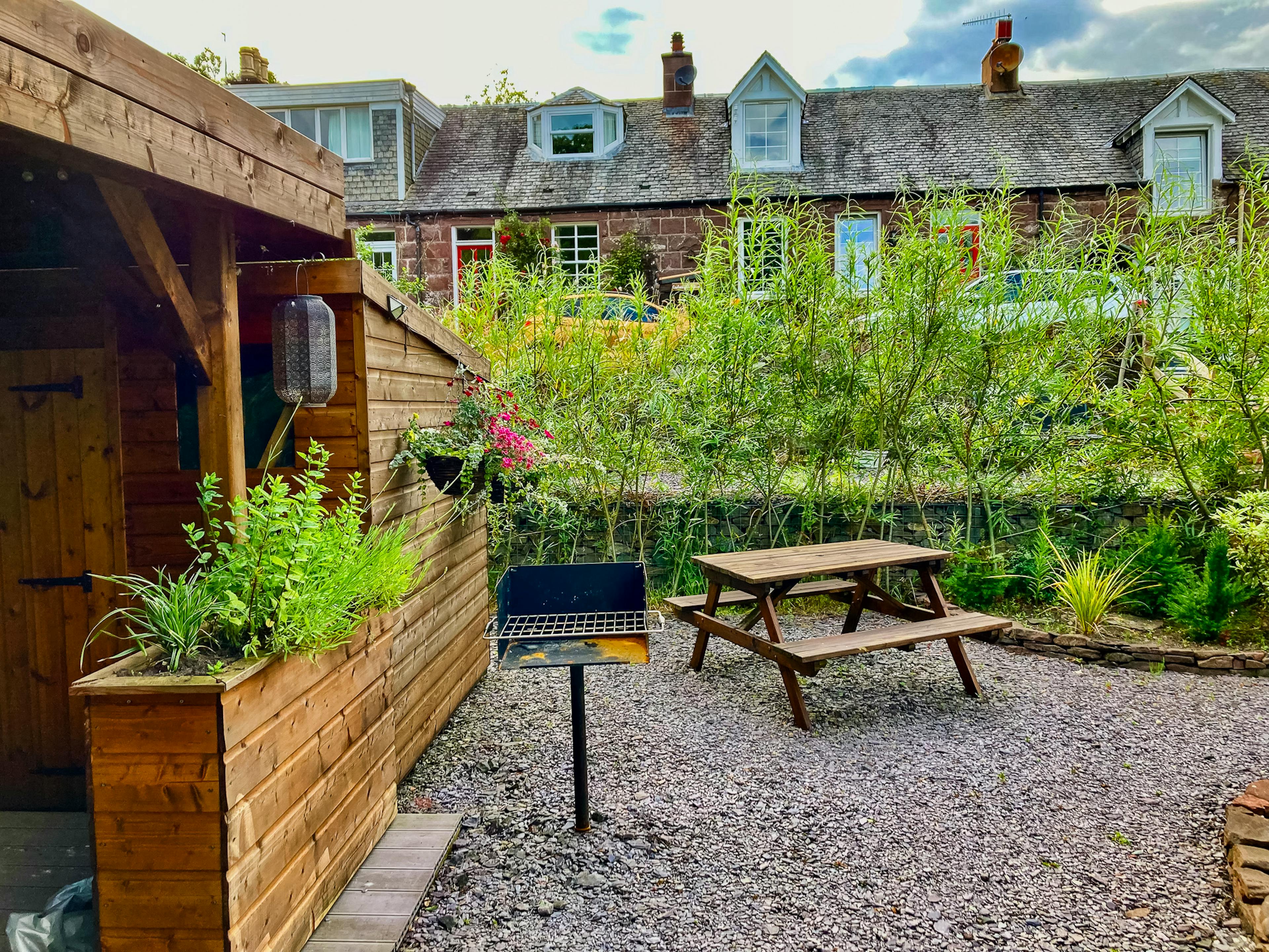 Peaceful riverside stone cottage near Loch Lomond offering a private garden hideaway and cosy fireside living.