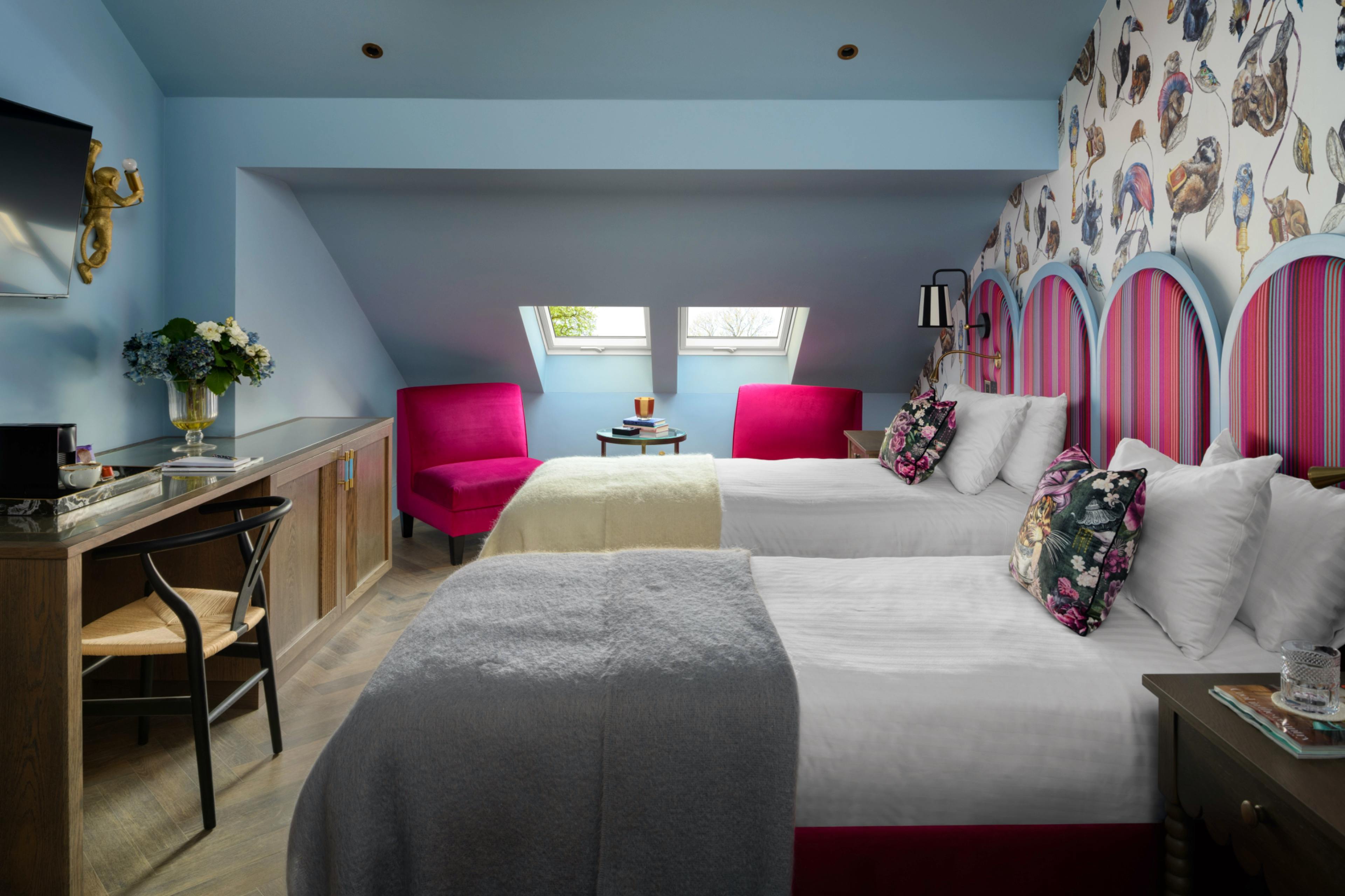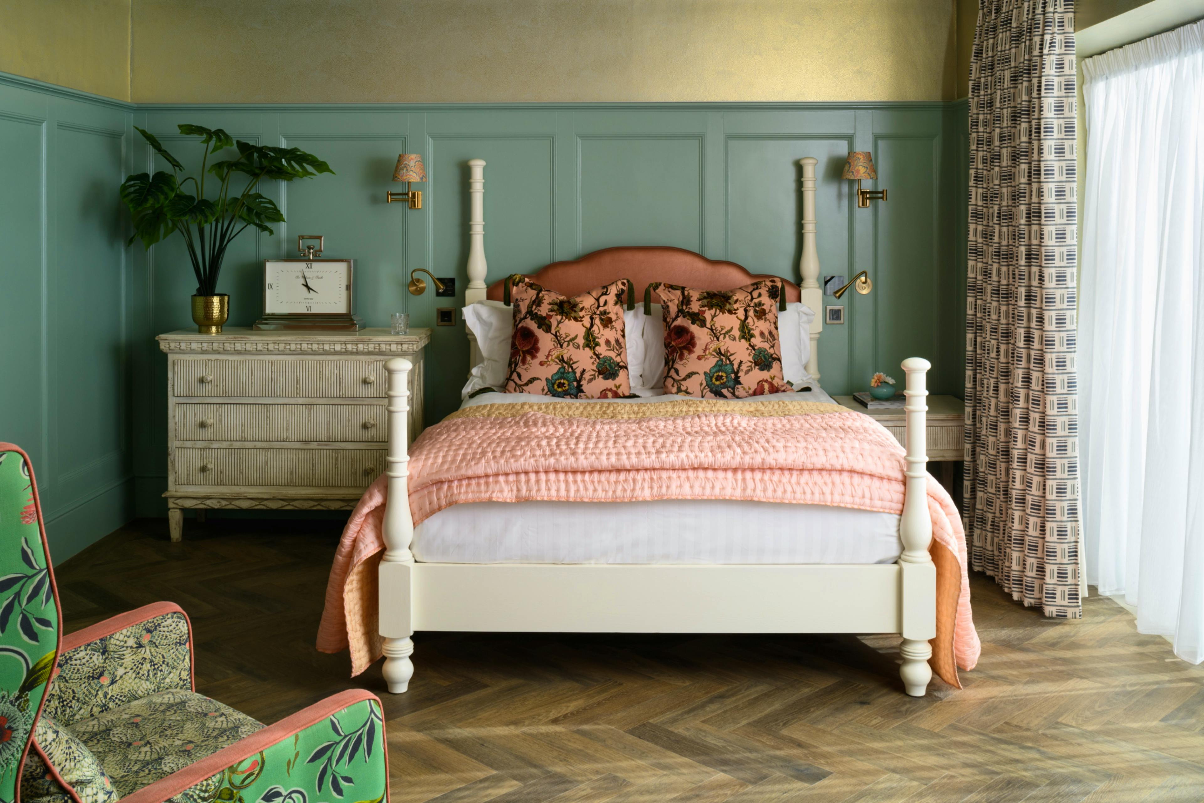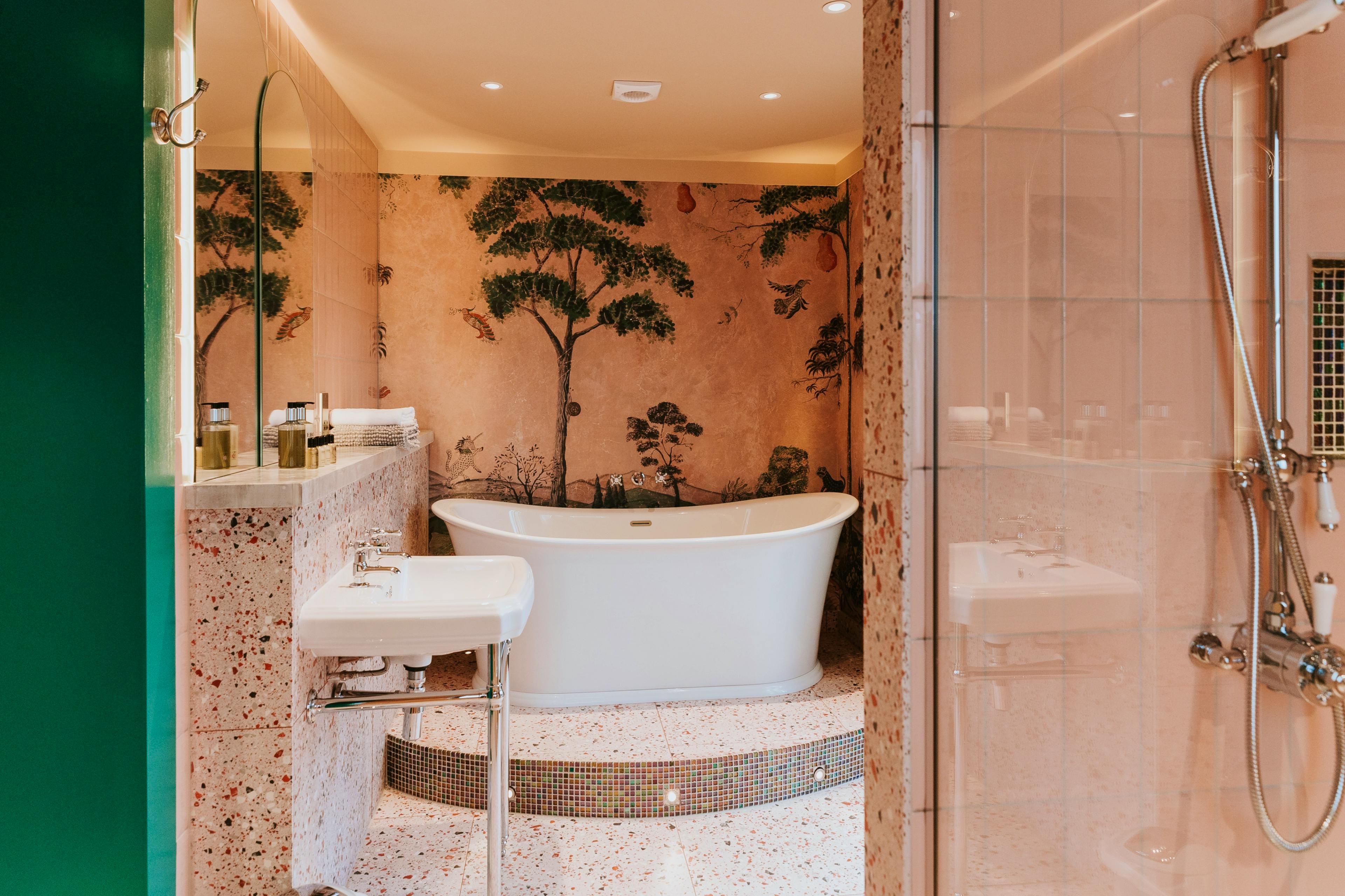Opulent rooms offer with quirky design, comfy furnishings, luxury ensuite bathrooms and features like free-standing copper baths and terrace access.