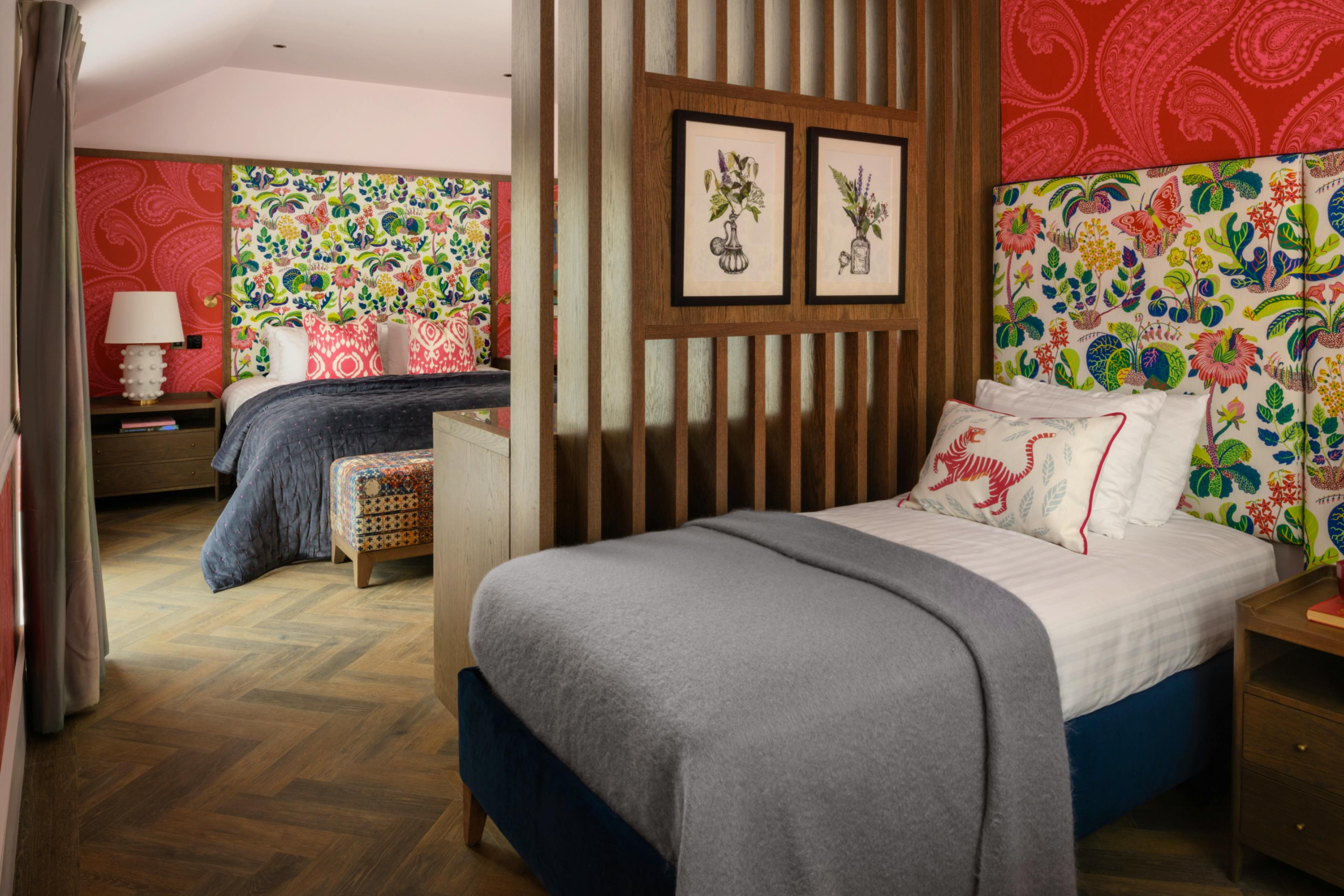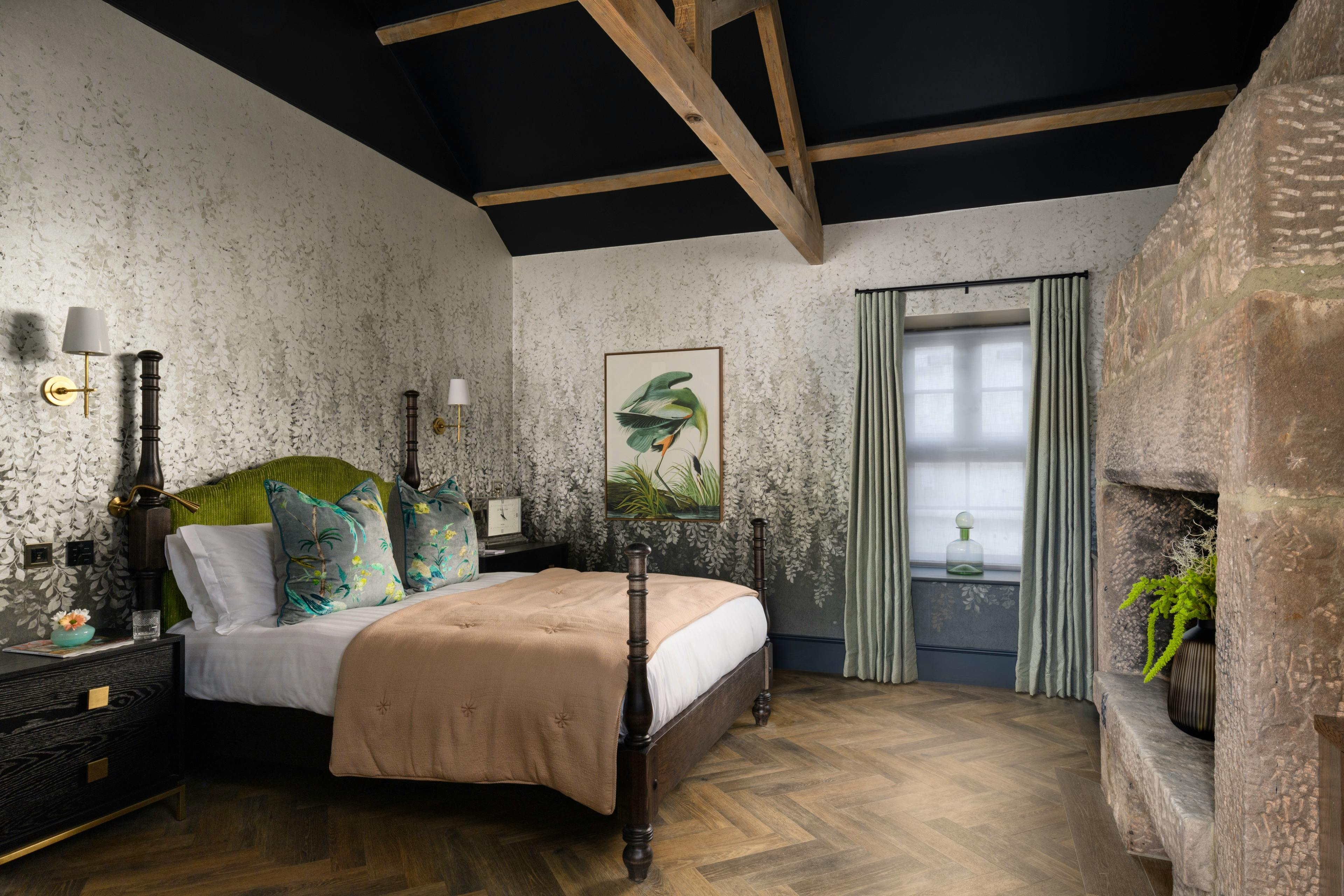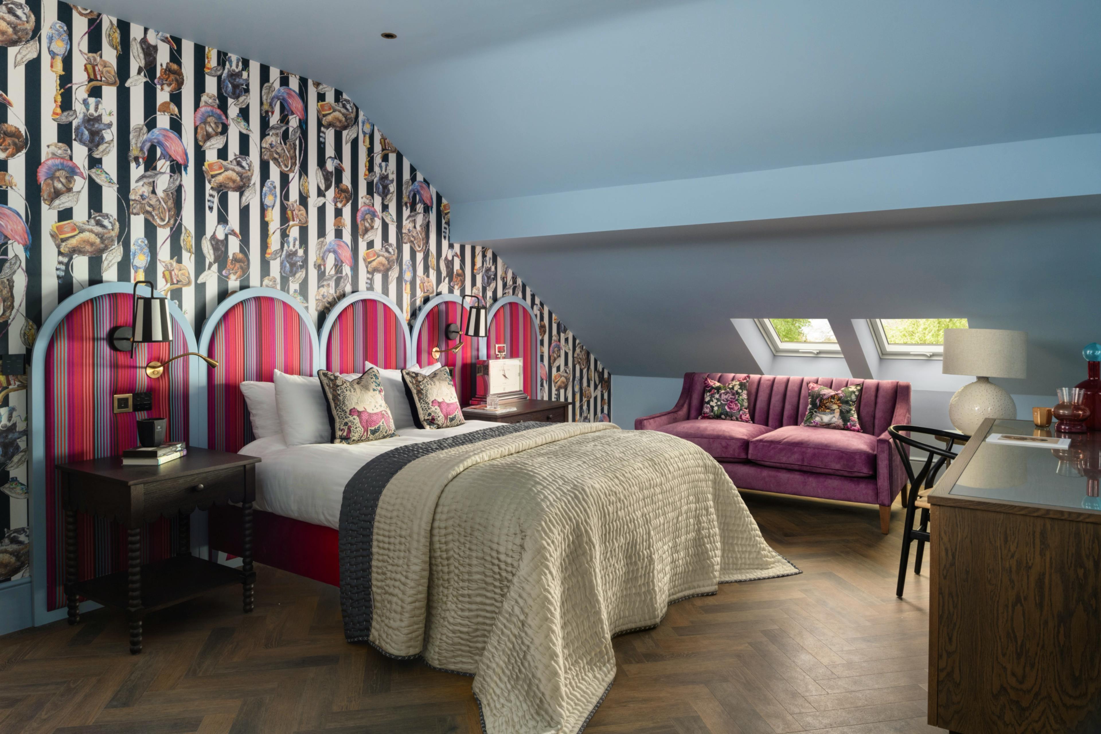 Opulent rooms offer with quirky design, comfy furnishings, luxury ensuite bathrooms and features like free-standing copper baths and terrace access.